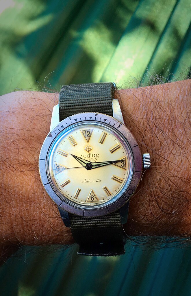 You might notice that the lume in the hands is not the same as on the dial. My hour hand was broken, so I sourced "new" hands and had them relumed.