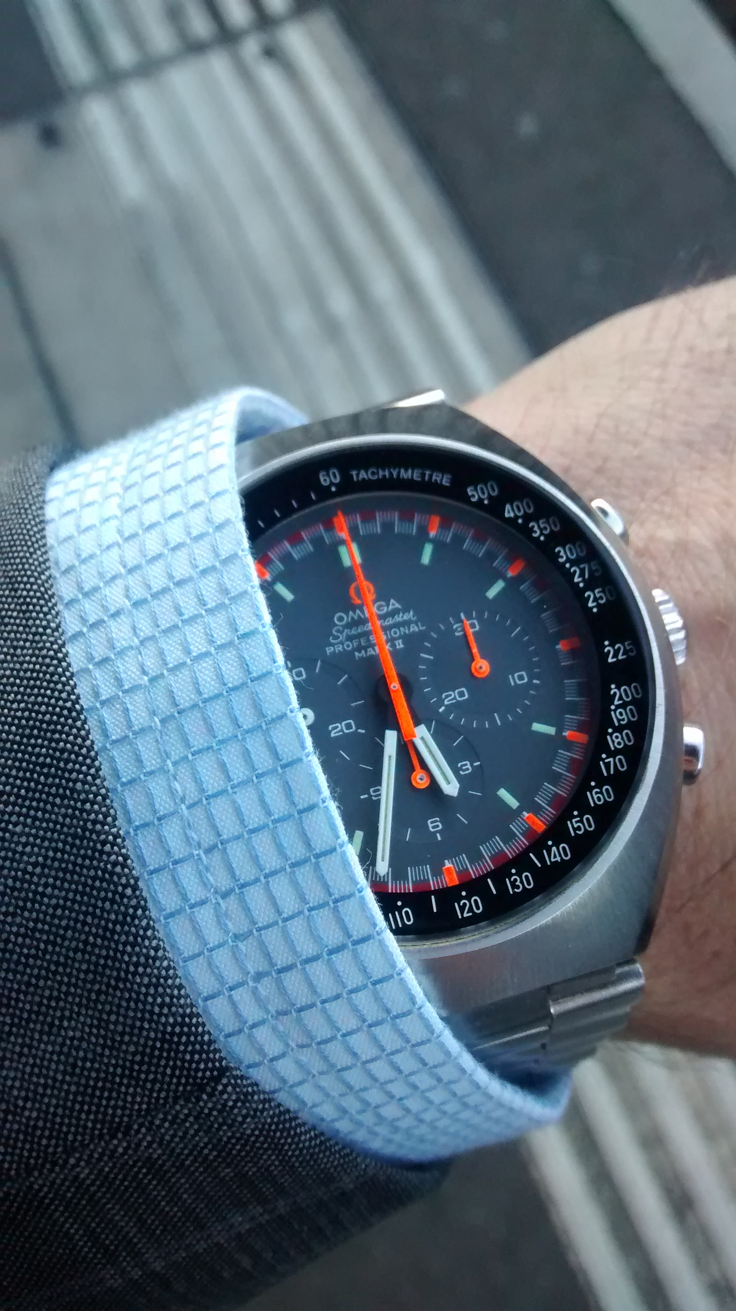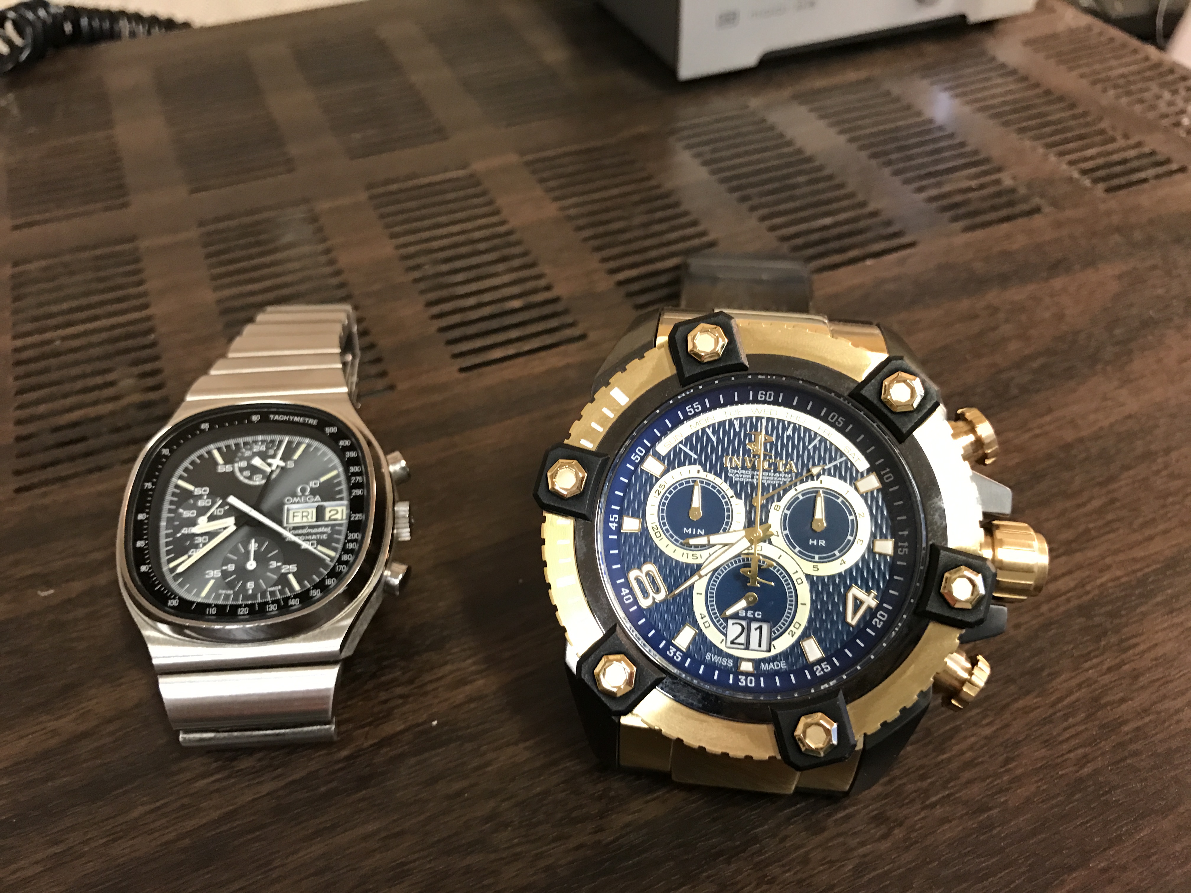 My watch buddy at work came to show me his new purchase that's 65mm edge to edge and weighs 13.3 ounces. My chunky funky TV dial Speedmaster weighs 5.4 ounces.