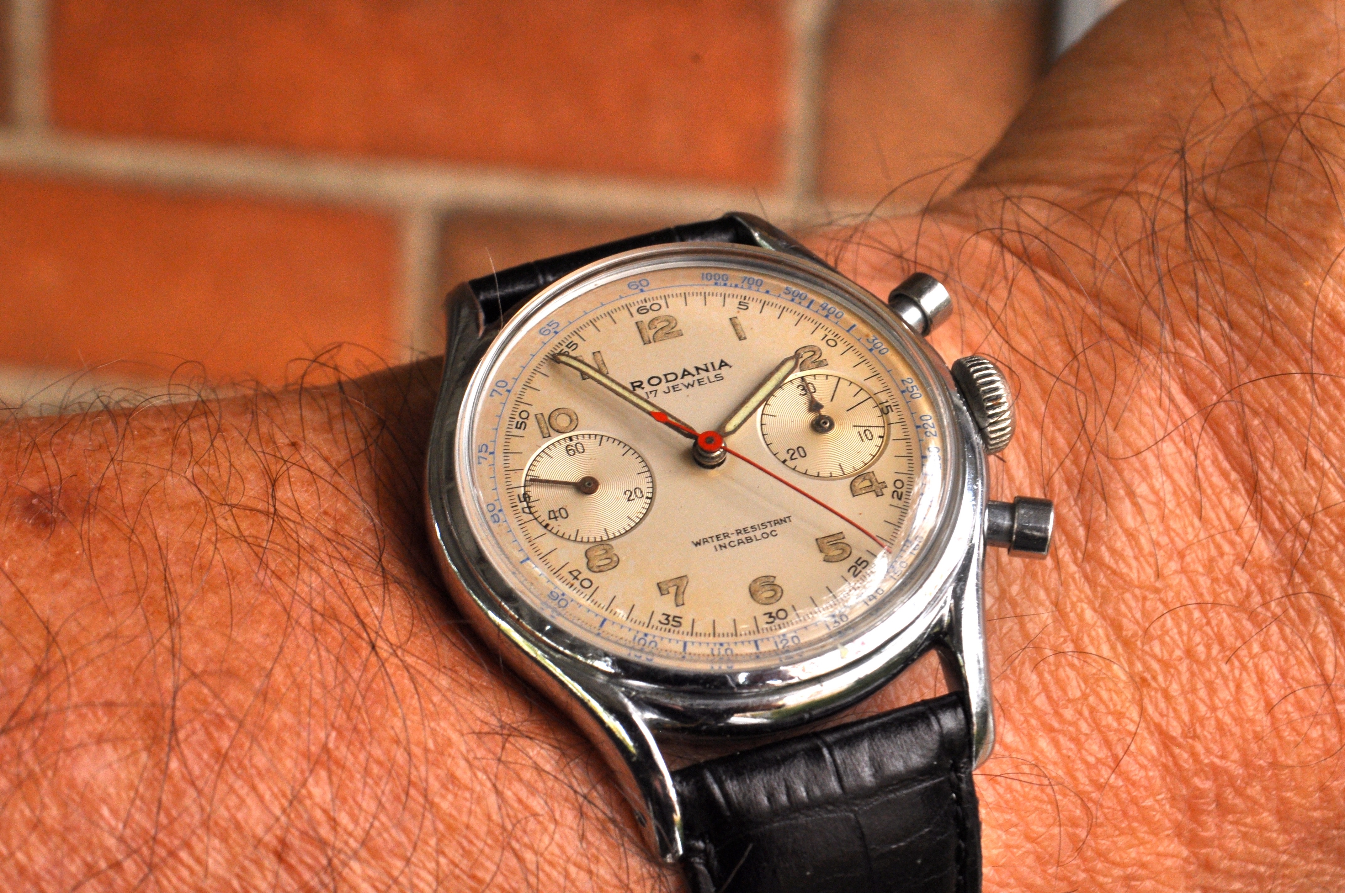 New arrival....To add to my unexpected spread of Rodanias. This very decent Venus 175 dual register Rodania chrono. Fabulous dial that's turned to an irresistible cream colour. Nice size too at 37 mm..