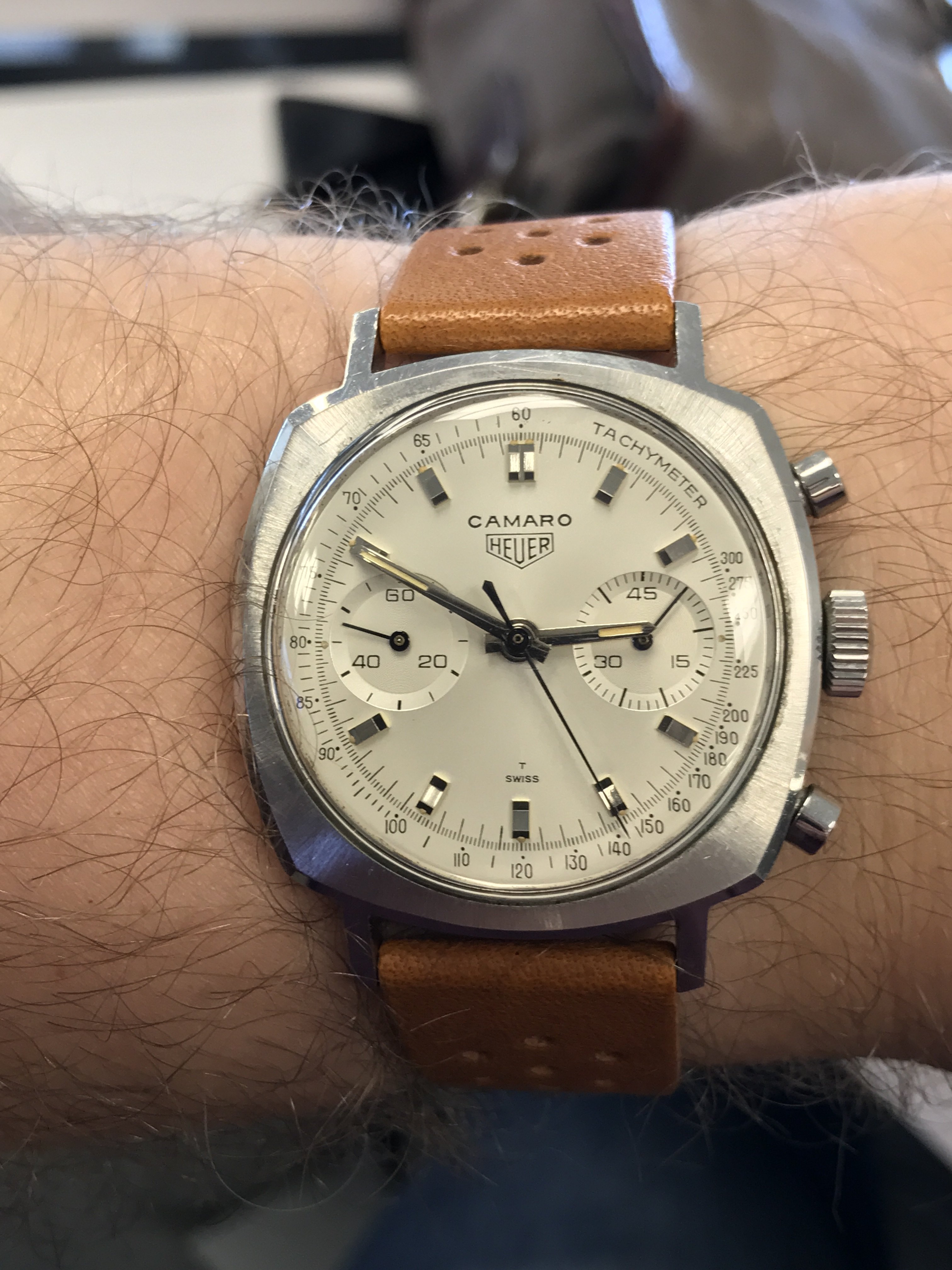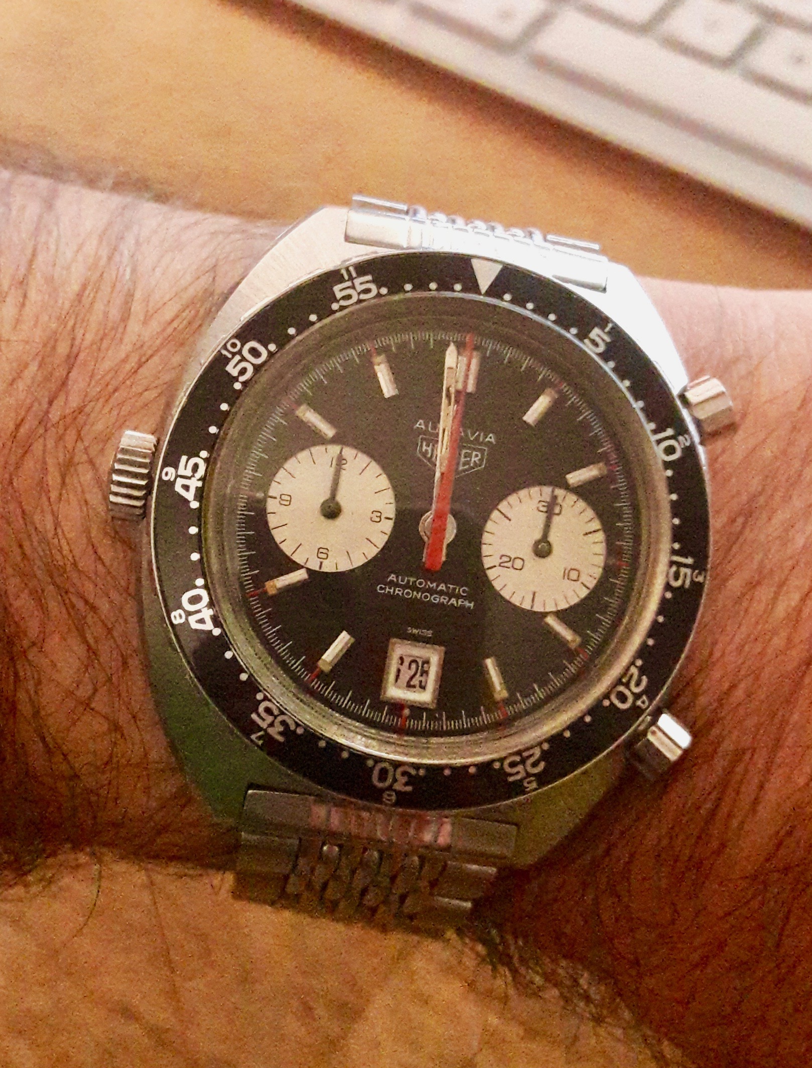 Posts 1,889 Likes 2,285 Kwijibo ·Oct 26, 2016 Heuer too 😉 all original with a nasty crack on the minutes hand.