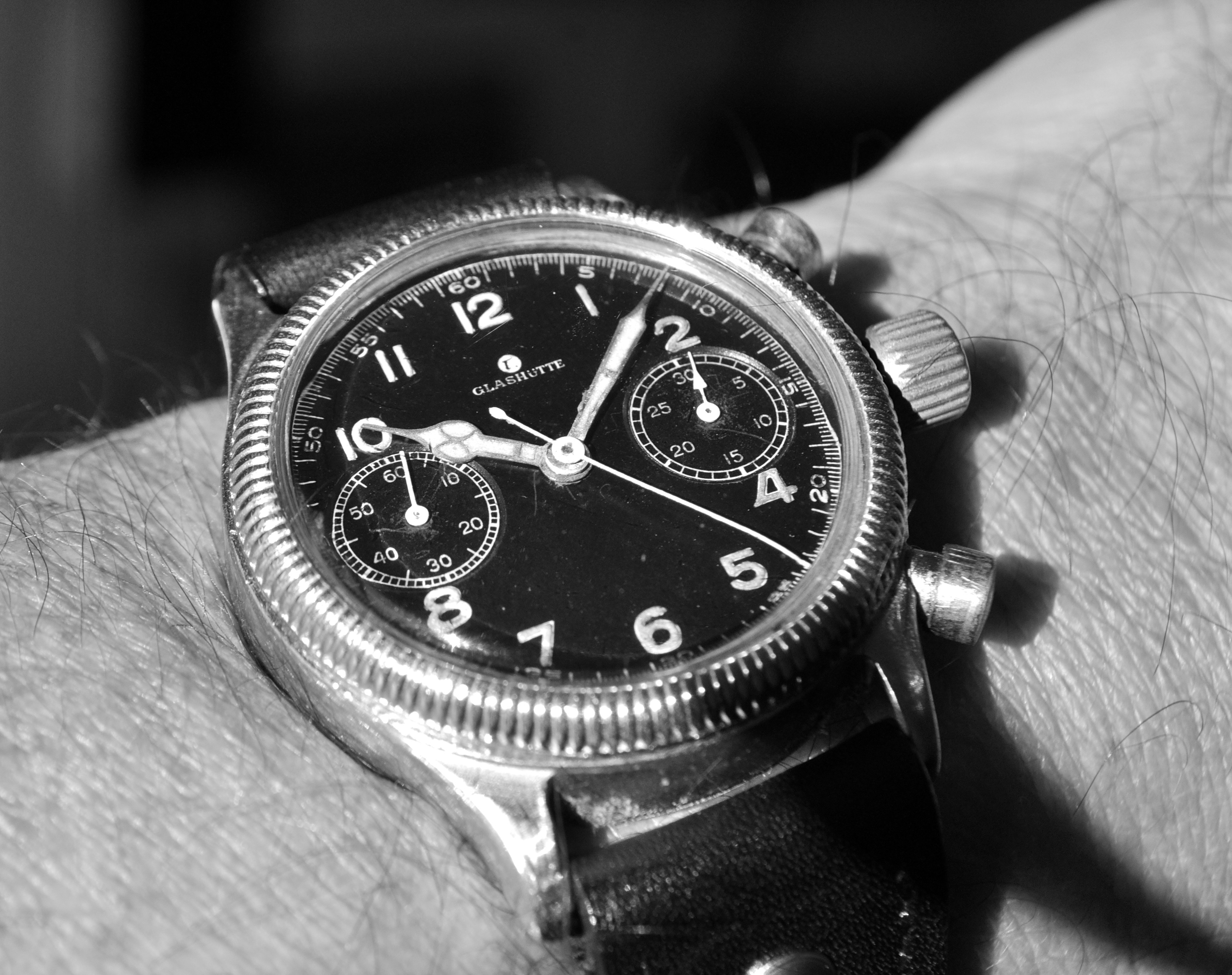 A strap experiment coming to fruition.... Totally incorrect historically -- German flieger inspired strap on a US WWII military watch should be a complete no-no, but I like the way it looks.