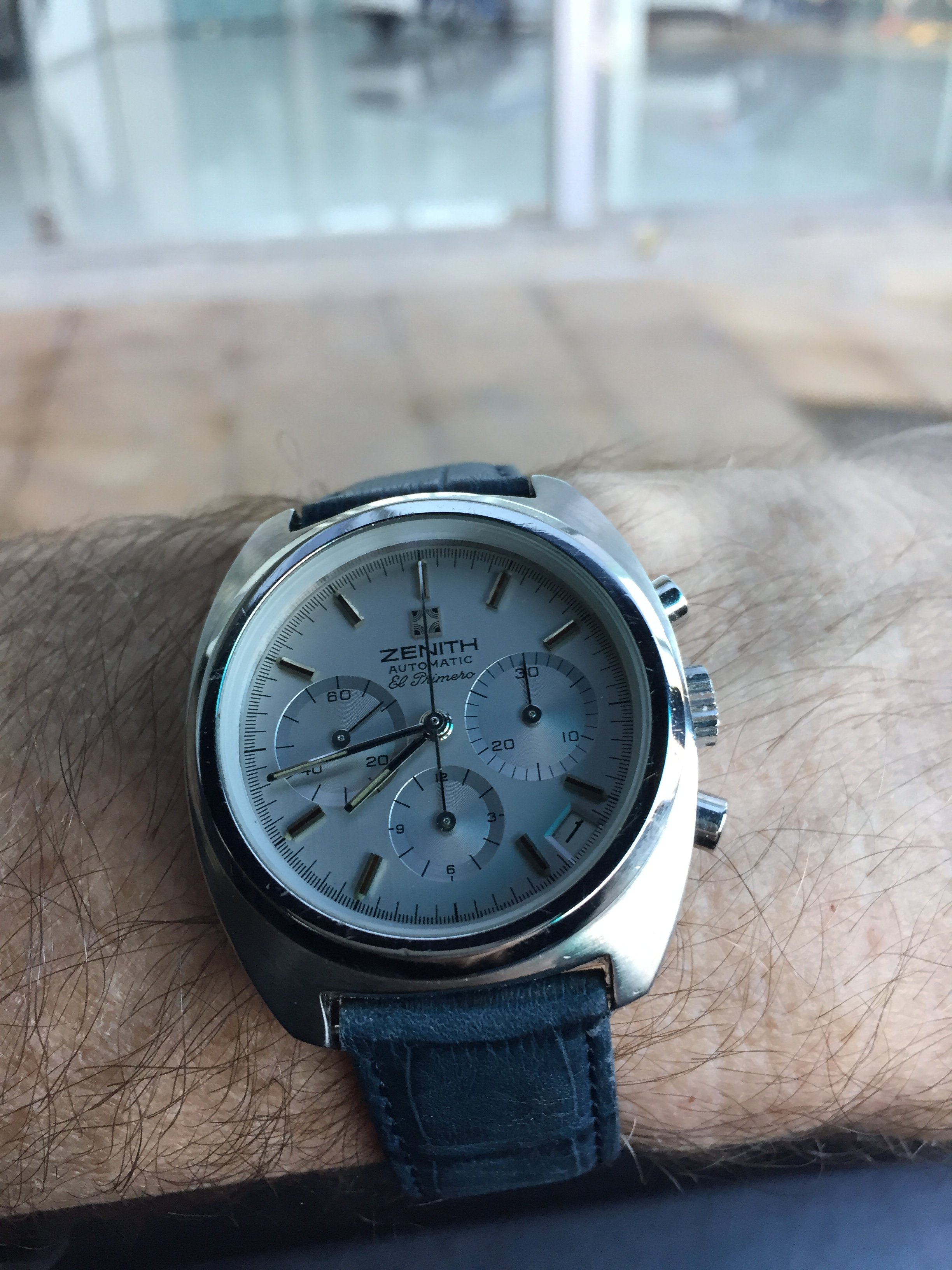 Posts 1,851 Likes 12,901 ahartfie ·Nov 30, 2016·The black sheep in the Spee-ee-eee-eedmaster flock This feels so small and light compared to my 176.0014. I was 🥰 all day. I do wish that Zenith used the same crown position system that Omega does. Getting this crown into second position to adjust the time takes patience.