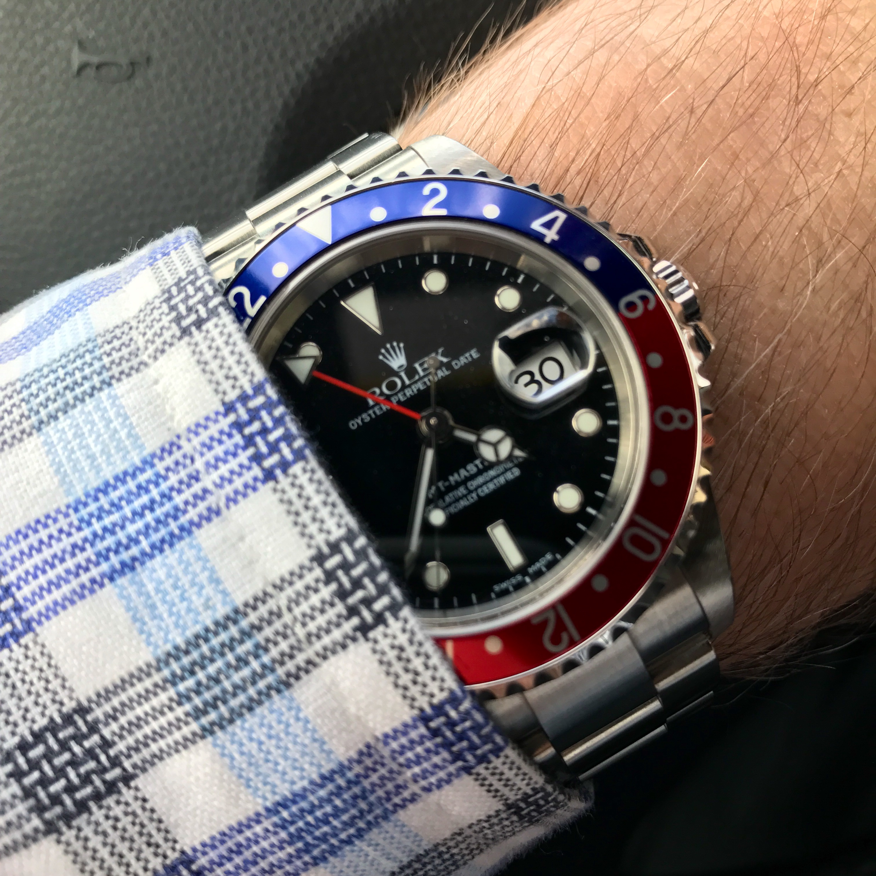 Posts 598 Likes 3,196 Aussie Jim ·Dec 1, 2016 Darlinboy Wet & windy weather... Pepsi GMT and blue shirt. Winning combination.