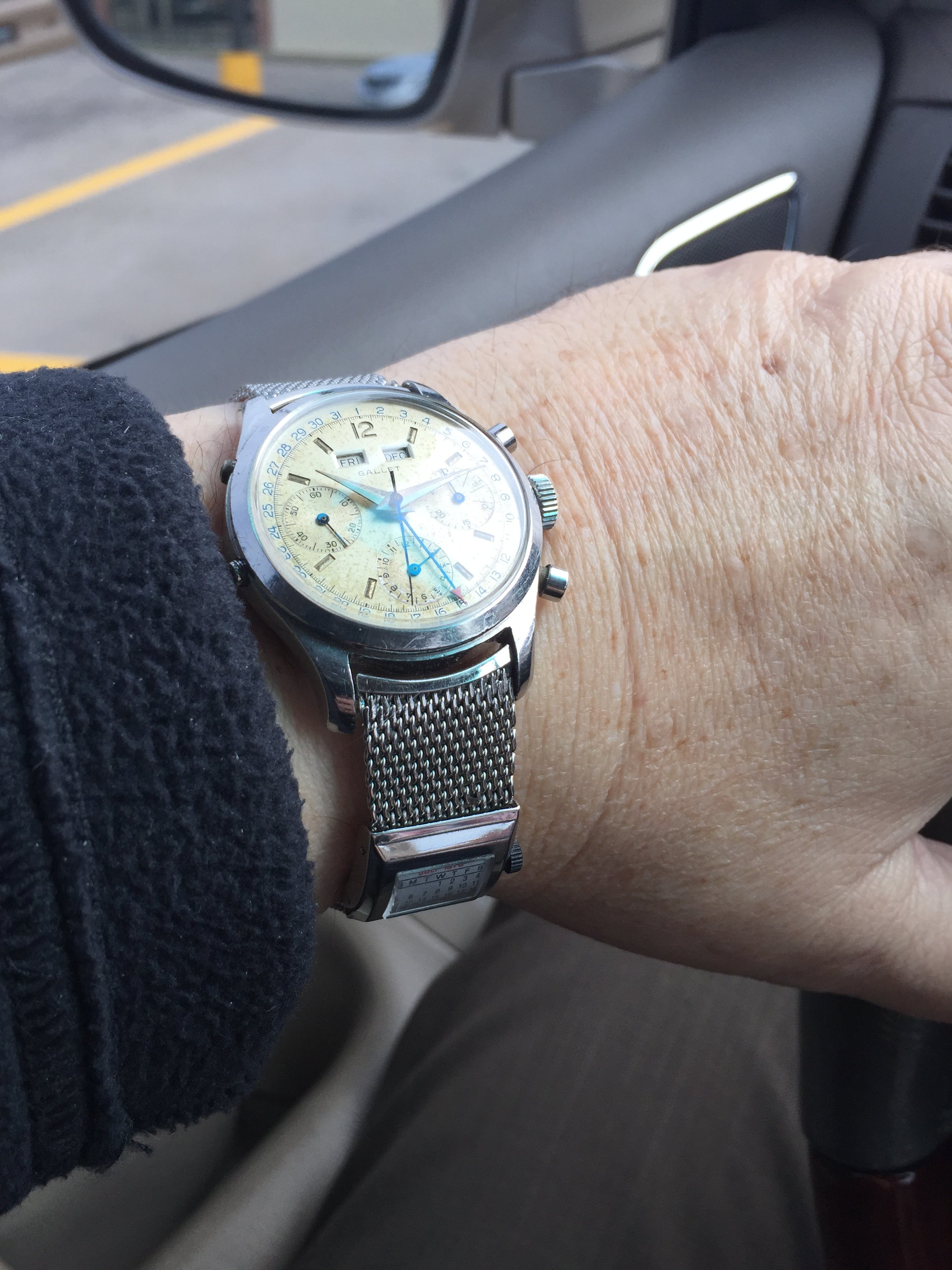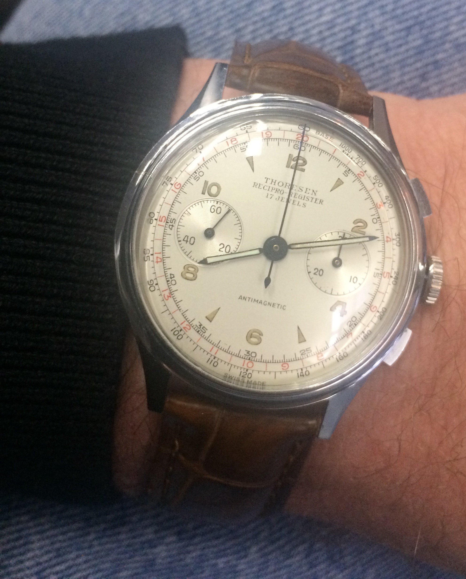 Posts 9,596 Likes 27,708 ConElPueblo ·Dec 12, 2016 Eterna Chronograph w. Valjoux 22 from 1940 🥰🥰 First Eterna and first Valjoux. Lovely dial with gilt art deco (!) numerals on black background. Absolutely love it.