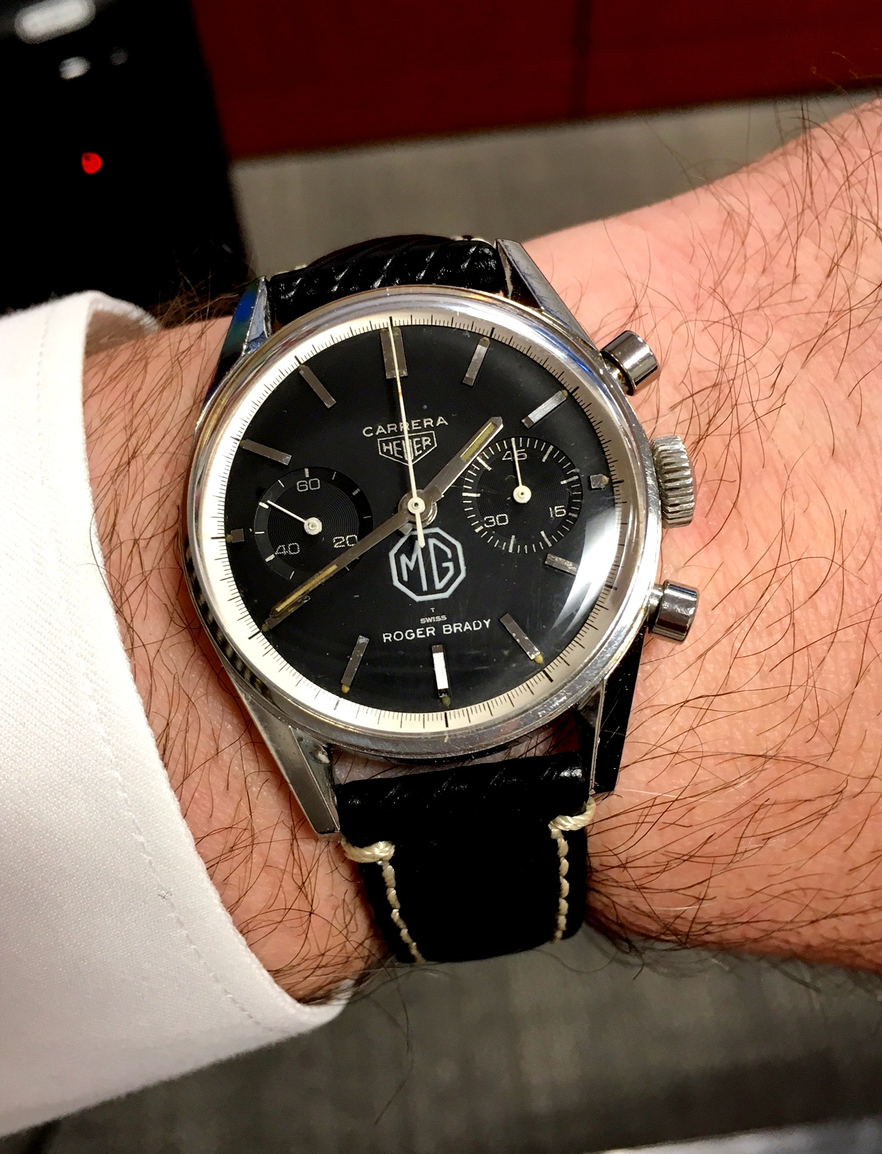 Posts 839 Likes 3,026 corn18 ·Dec 14, 2016 LouS Here's one that doesn't make it to the wrist often Safety Fast! I love this watch. My first car was a 1973 MGB GT that I rebuilt with my dad. Had a 1980 MGB roadster LE all through college.