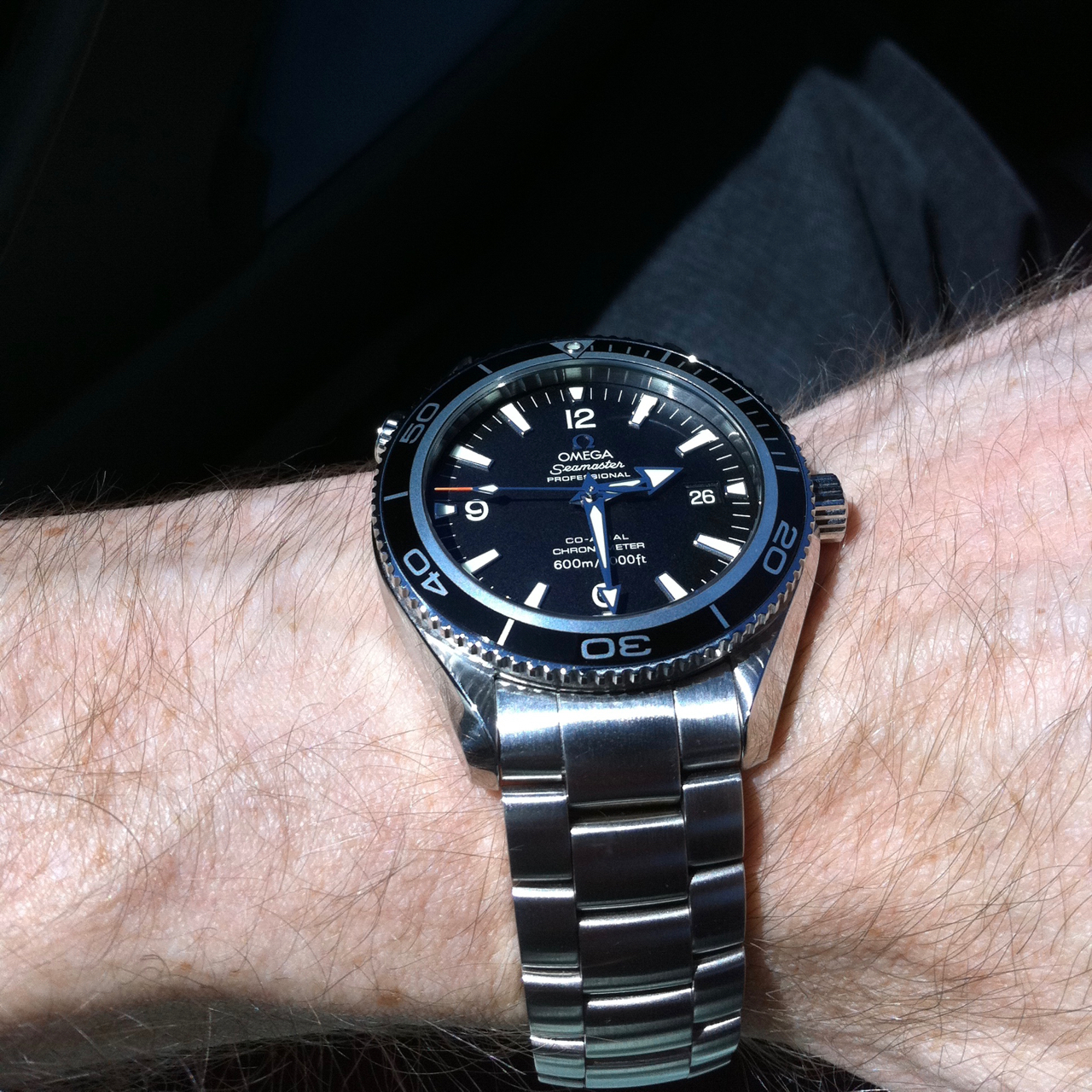This is a cheat... sort of. Yes, I am wearing this today, but this shot was taken April 26 2011, the day I bought this watch new from an AD. (I've got the box and papers somewhere in storage, but can't find them, and it's been killing me lately because I've been wracking my brain trying to remember just when the heck I bought this watch.)