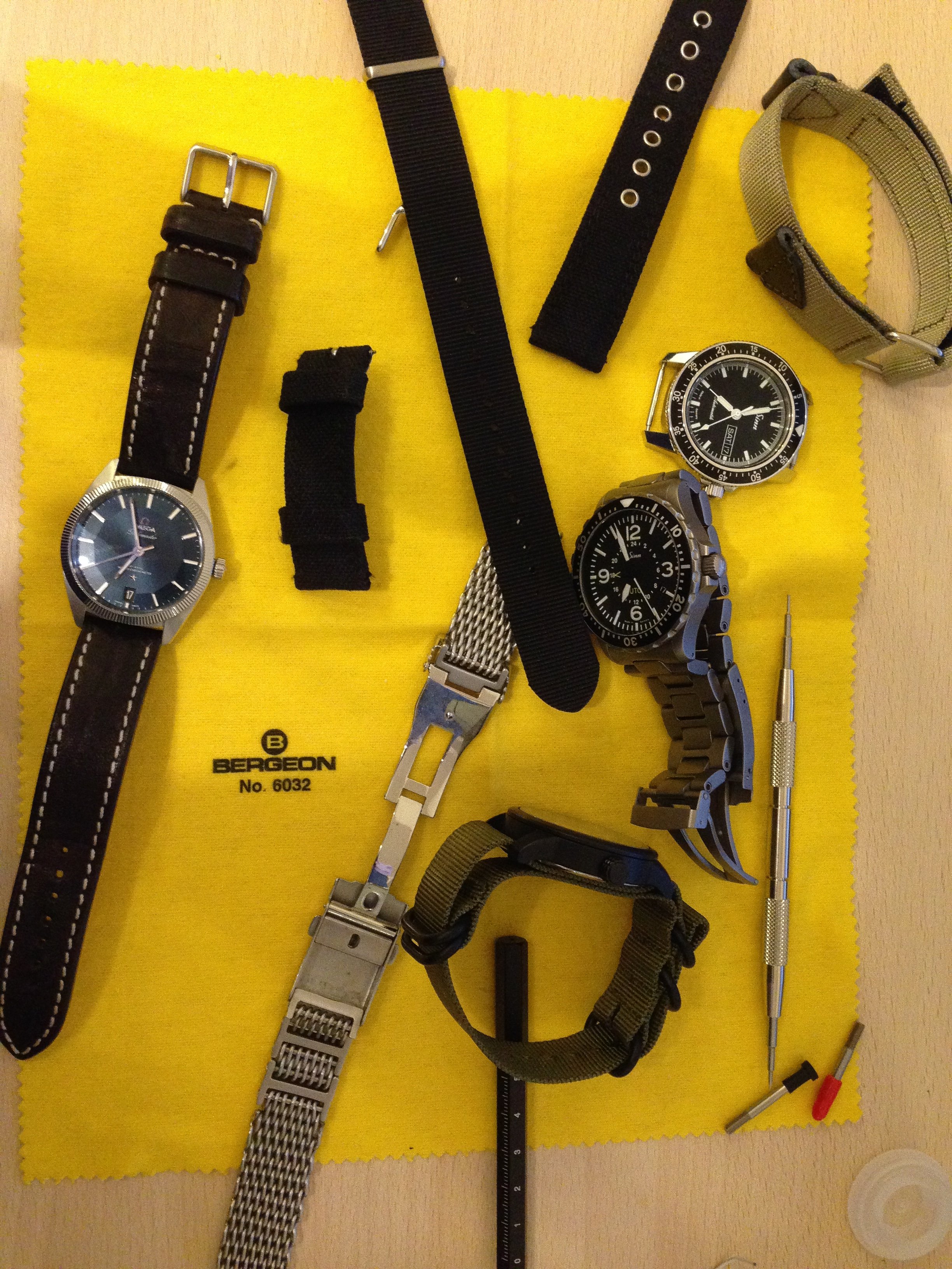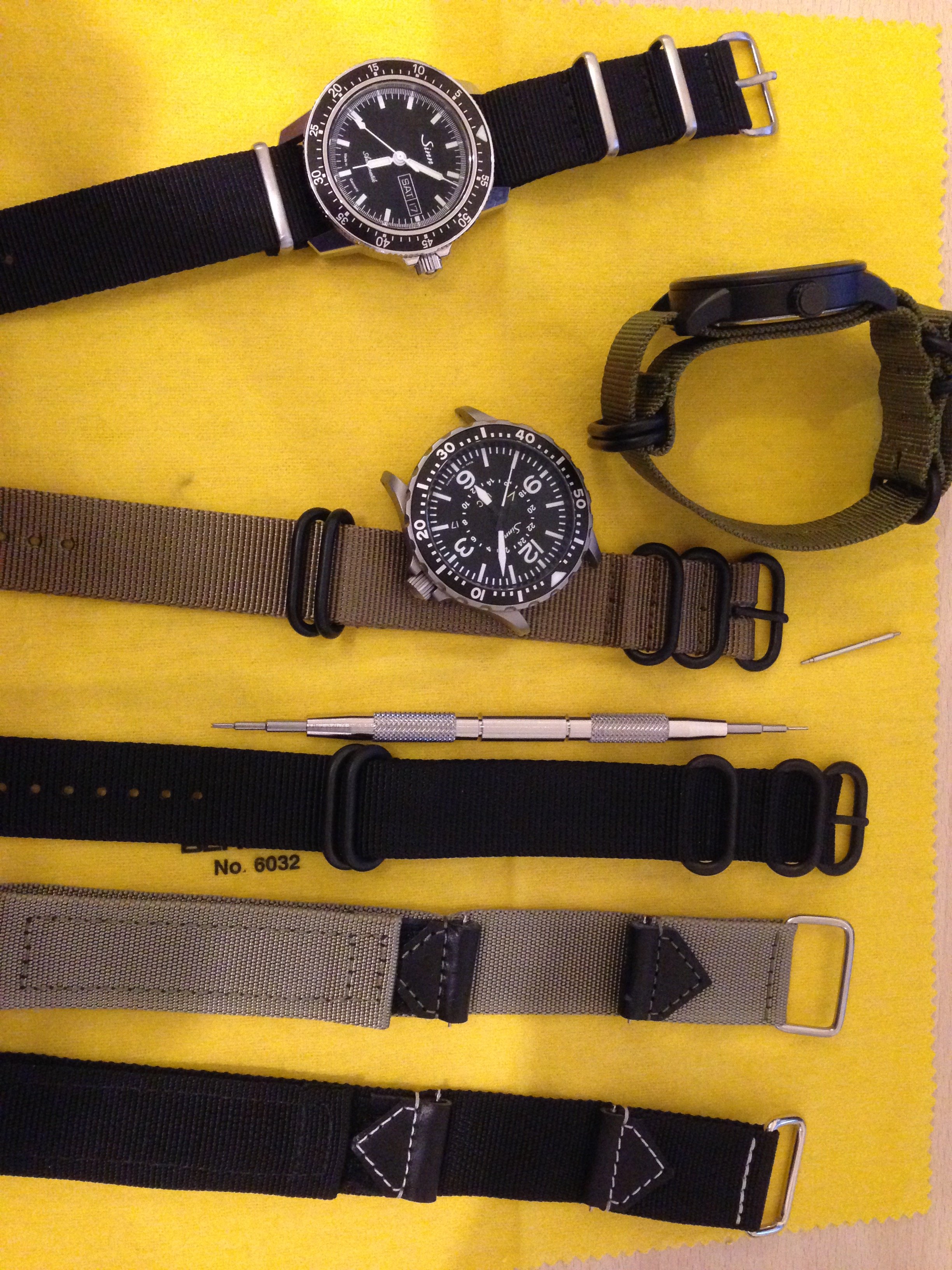It's total chaos here. The watch that looks like it ought to be on a Zulu doesn't have enough case-to-bar clearance (Sinn 857)....rats! The Sinn 104 leather strap is now on the Globemaster with a near identical but unsigned buckle from a Citizen Eco-drive (mea culpa) and the mesh will be going on the 104, or maybe it will stay on a black NATO or maybe I will just hack the Bremont Velcro/NATO