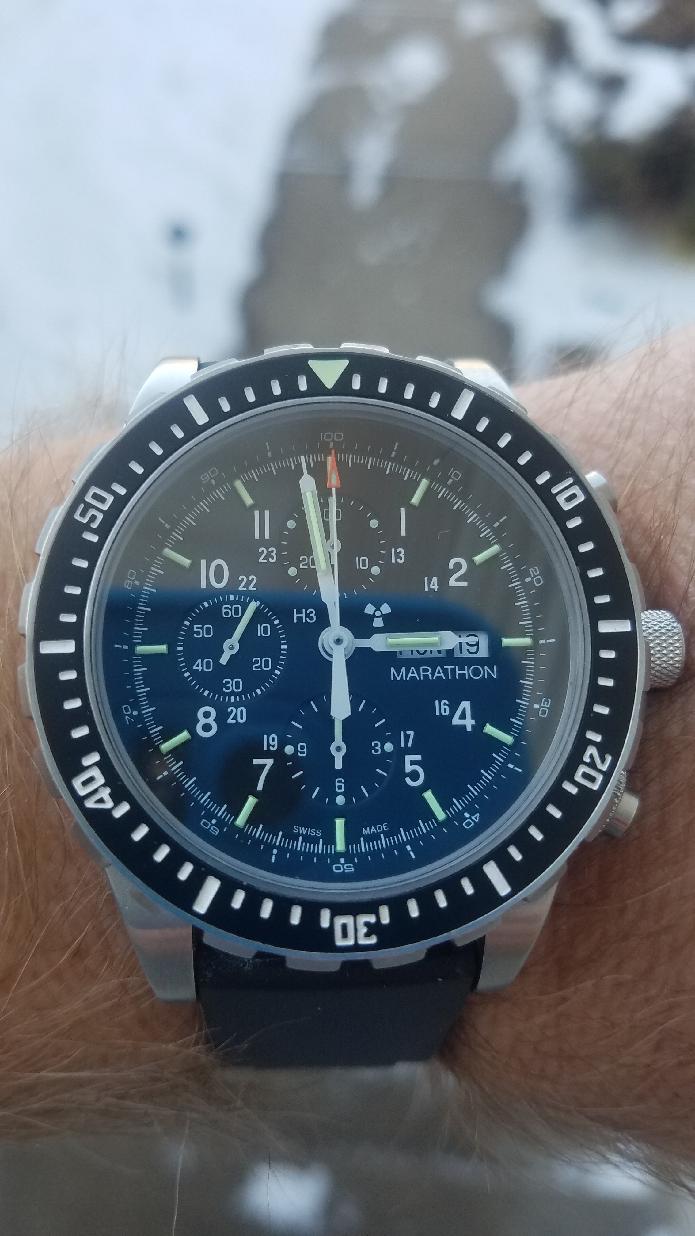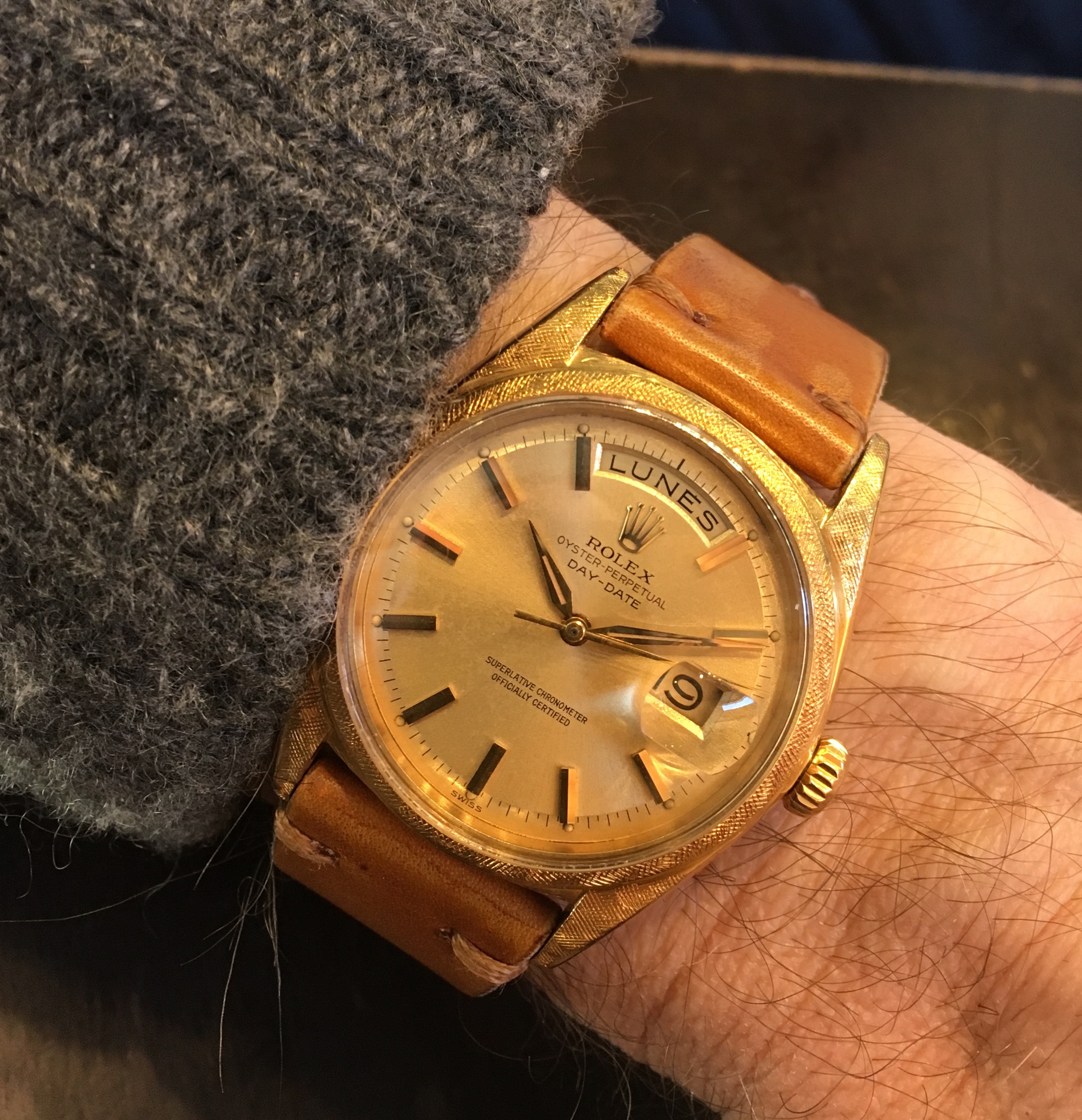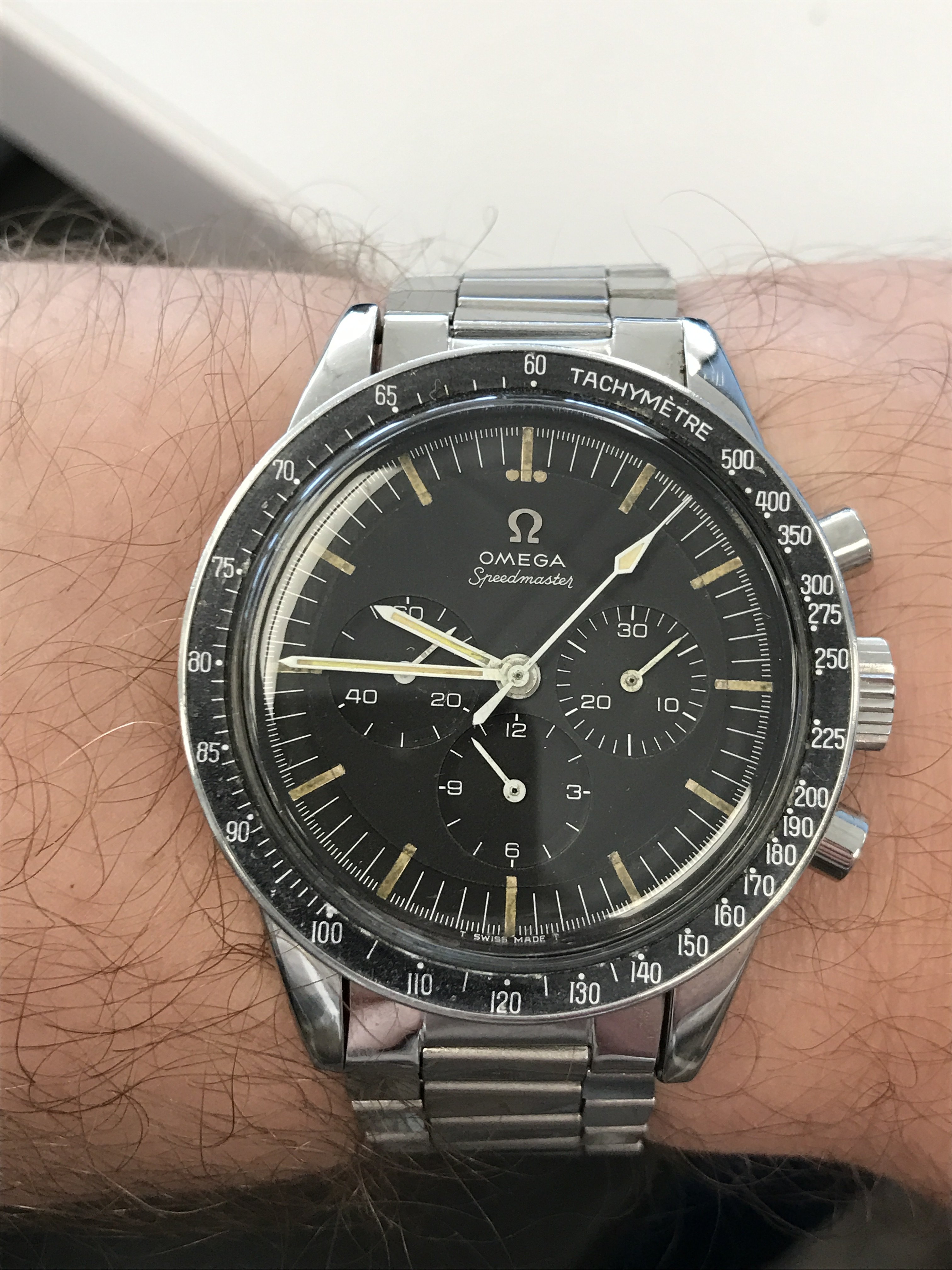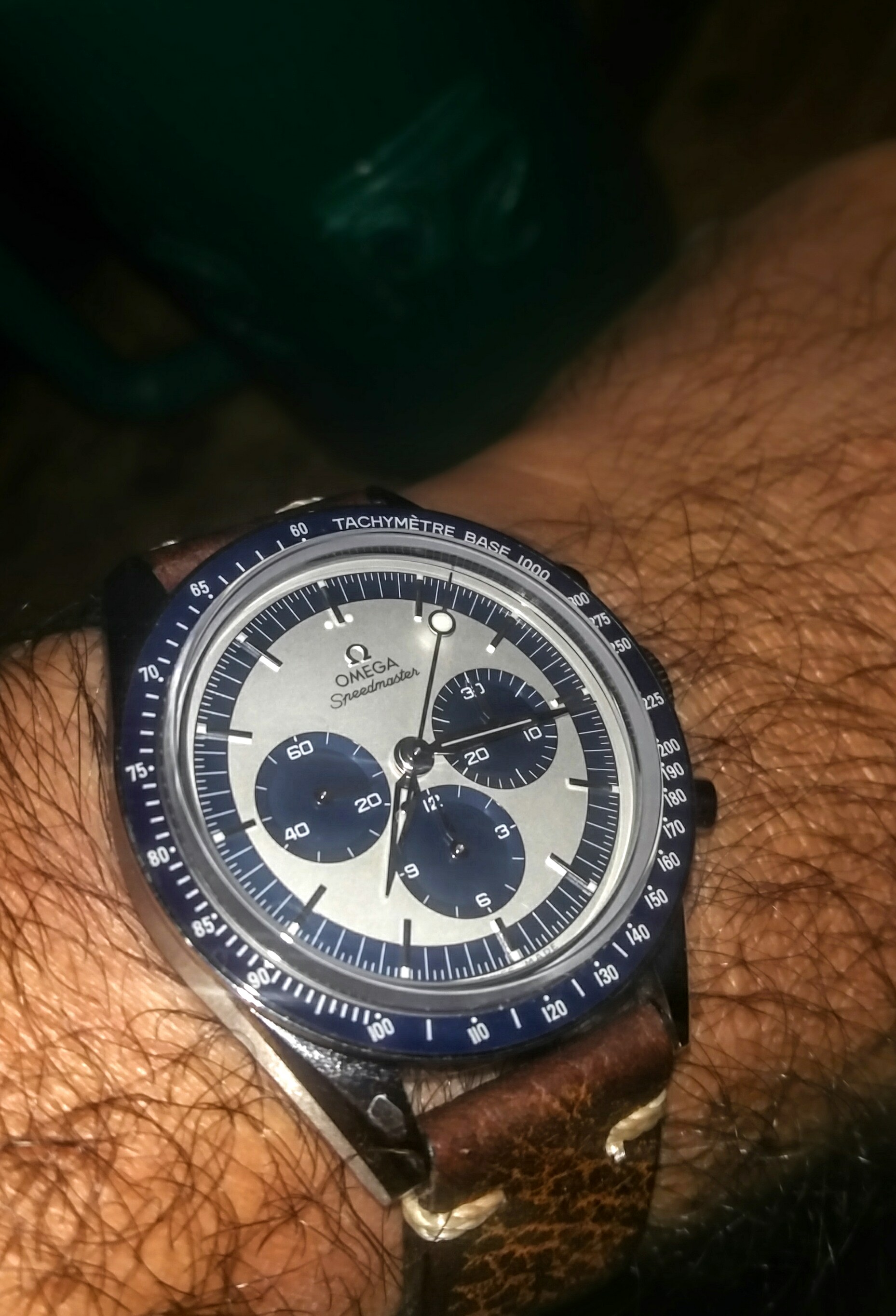 Mine says Hi! I recently replaced the mainsprings in my two recently conditioned Omega bumper automatics, including this one. I have been running these two on a watch winder as a test for duration of run. I find that 8 hours on the winder gives me ~ 40 hours of stationary run. I'll be wearing this one more often now, owing to the fact I don't have to re-set the calendar each time I put it on. Eight hours on the winder, and 40 hours off the winder will do these no harm. This one I'll wear until after the New Year.
