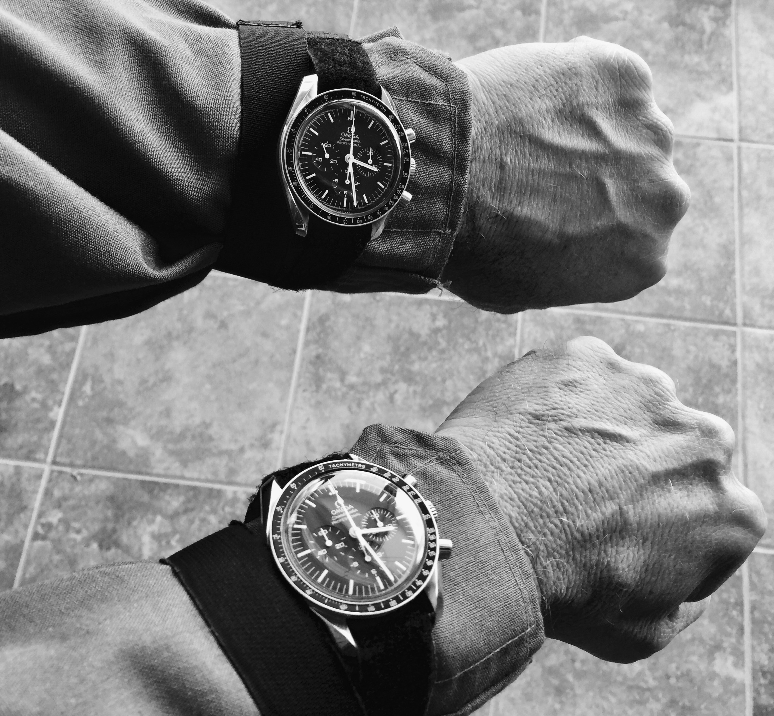 For today, in celebration of receiving our new mil spec American Optical (AO) 52mm matte grey sunglasses, @ChuckMK23 and I are wearing our Speedy Gonzales watches with Omega replica NASA straps, U.S. NAVY flight suits and our new AOs...and attempting to look like Pete Conrad and Gordo Cooper...good times! 馃憤