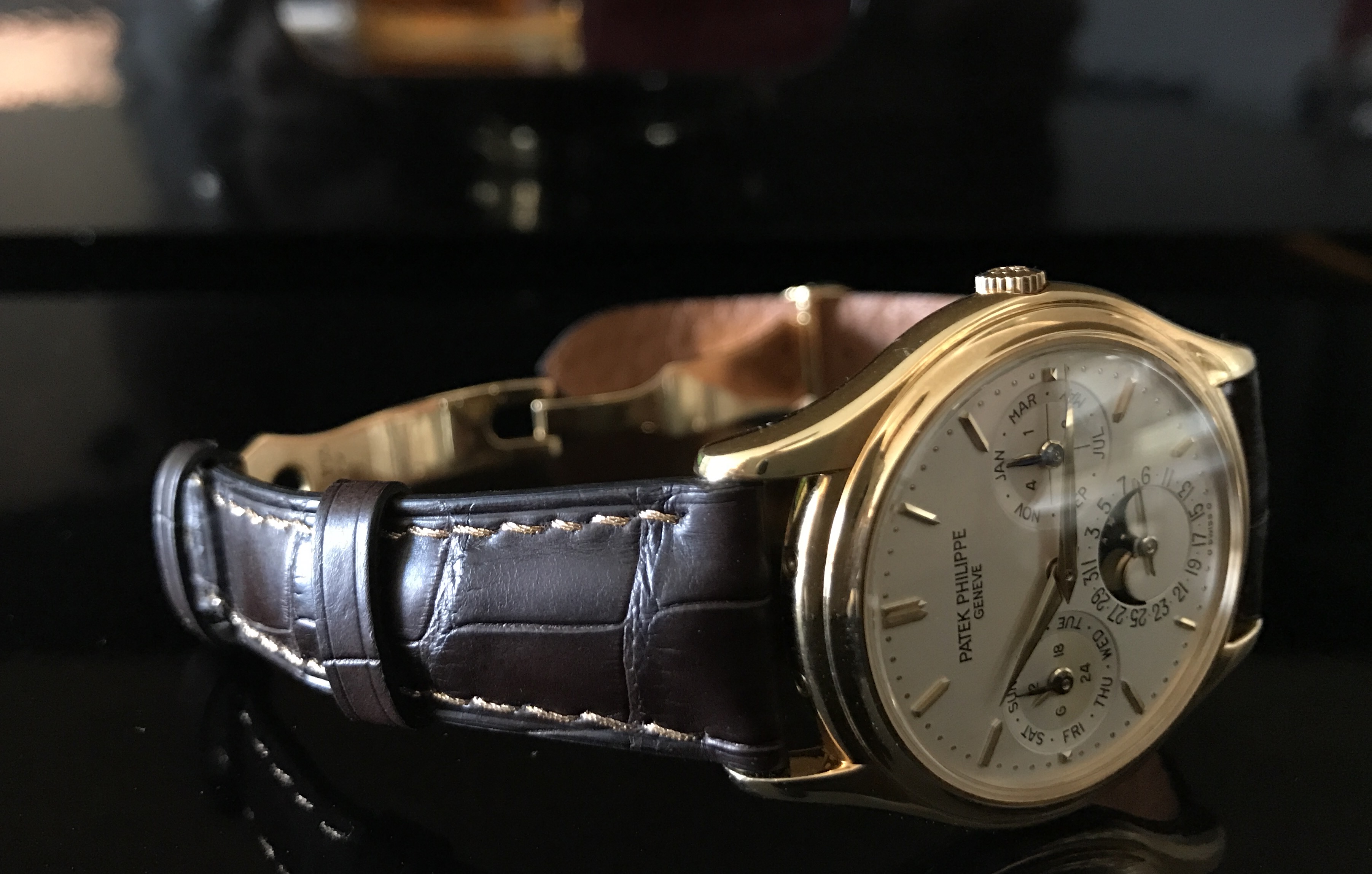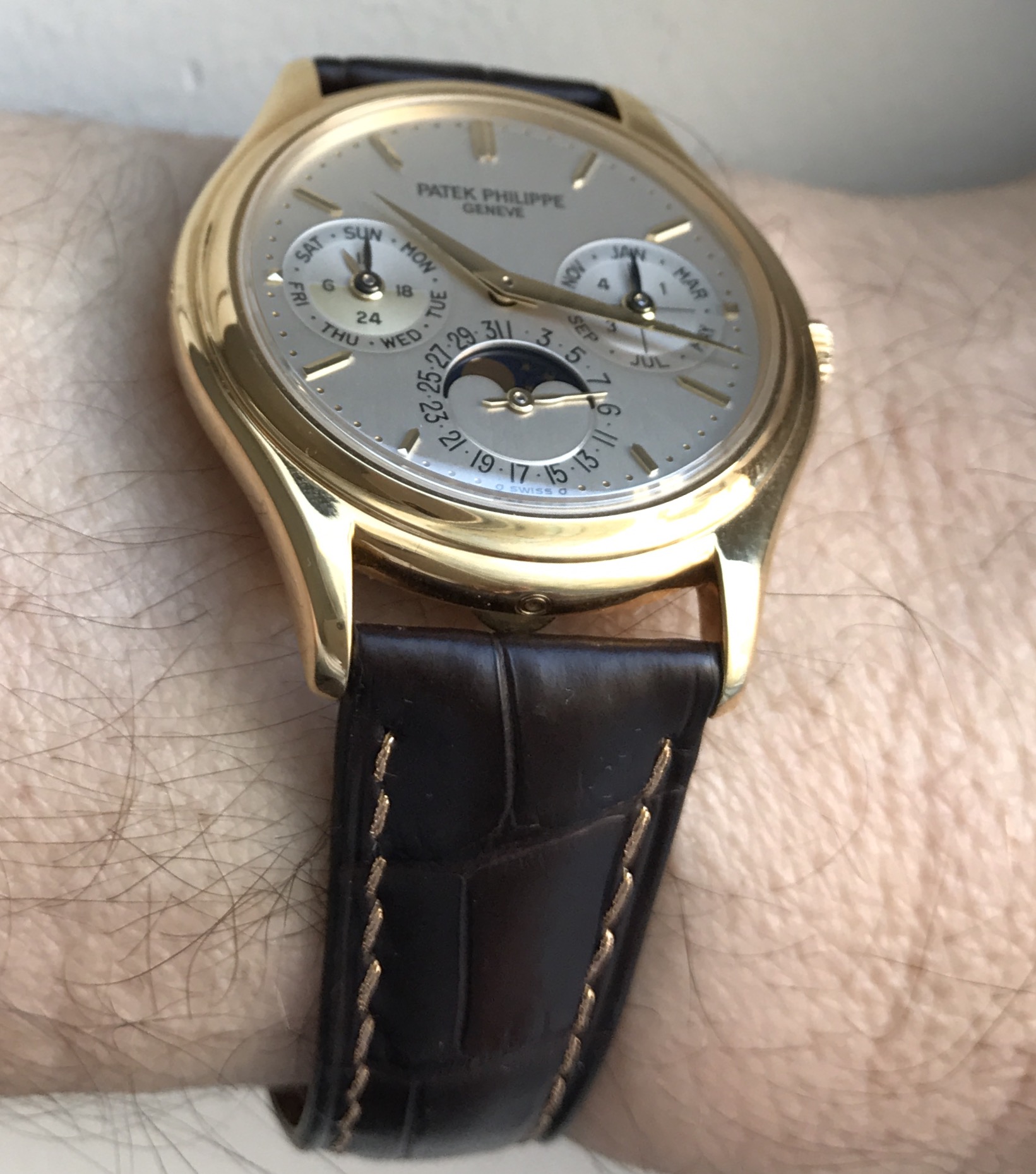 Been posting this one a lot lately, but I just got a new strap for it - I found the original one it came on a bit boring ... custom Jean Rouseau, hand stitched with solid gold thread ....