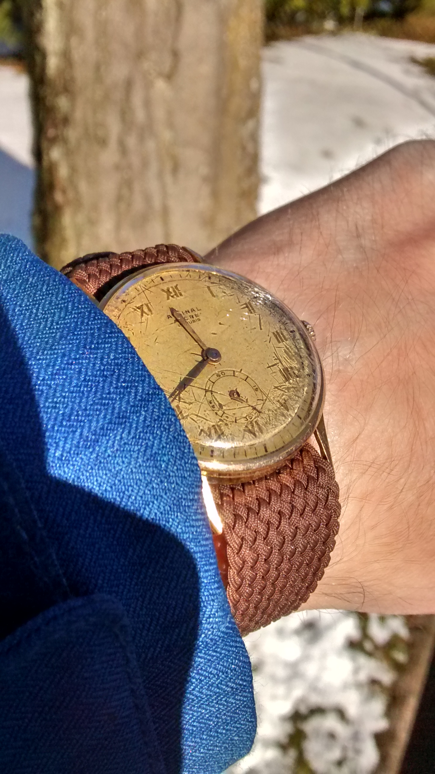 Posts 2,257 Likes 11,389 Lonestar ·Jan 11, 2017 My Old Man's first timepiece, recently serviced. As you can see, it's lived a busy life!
