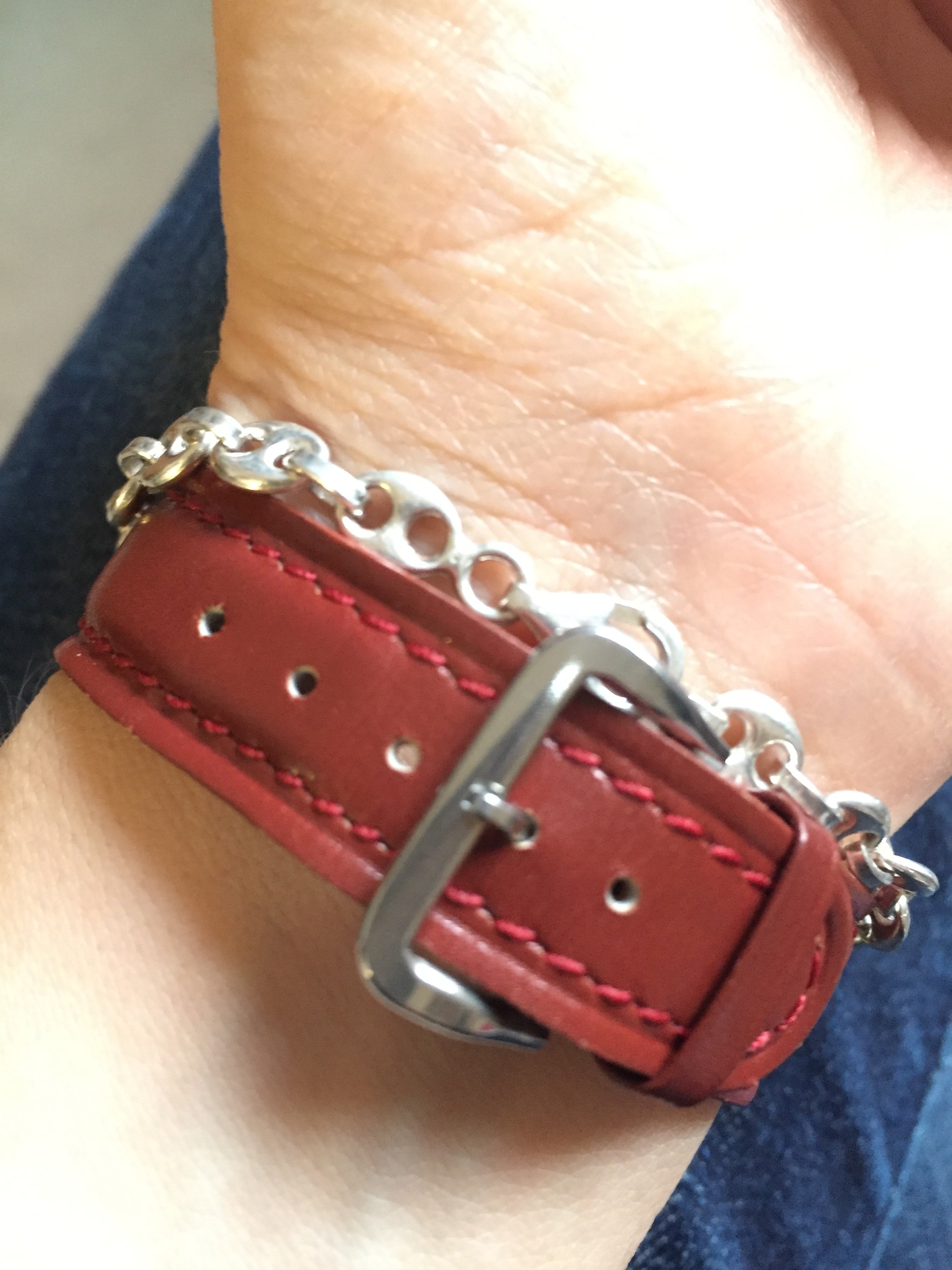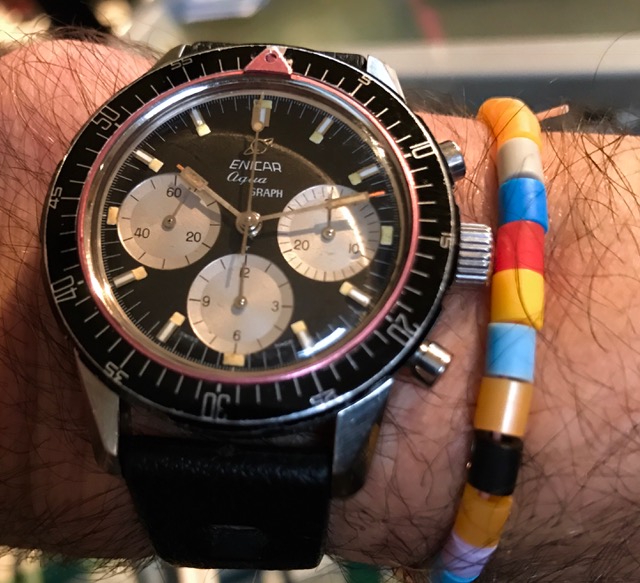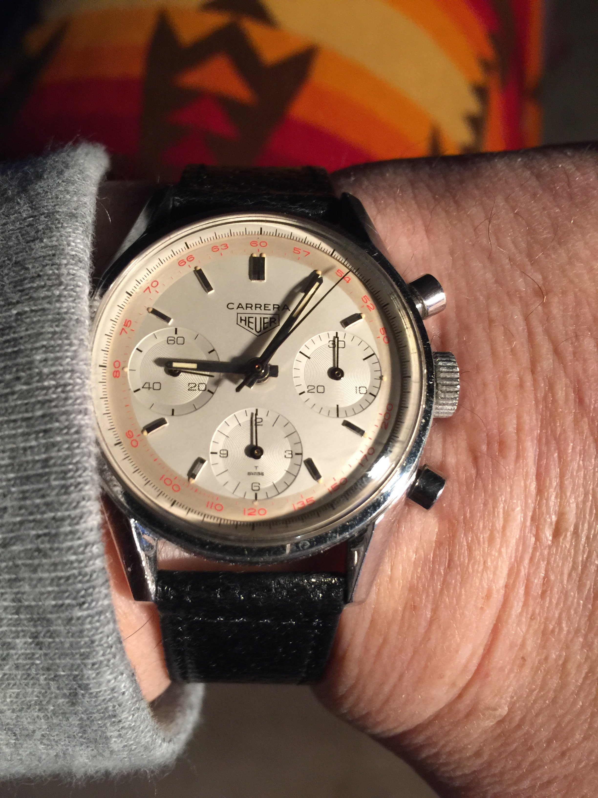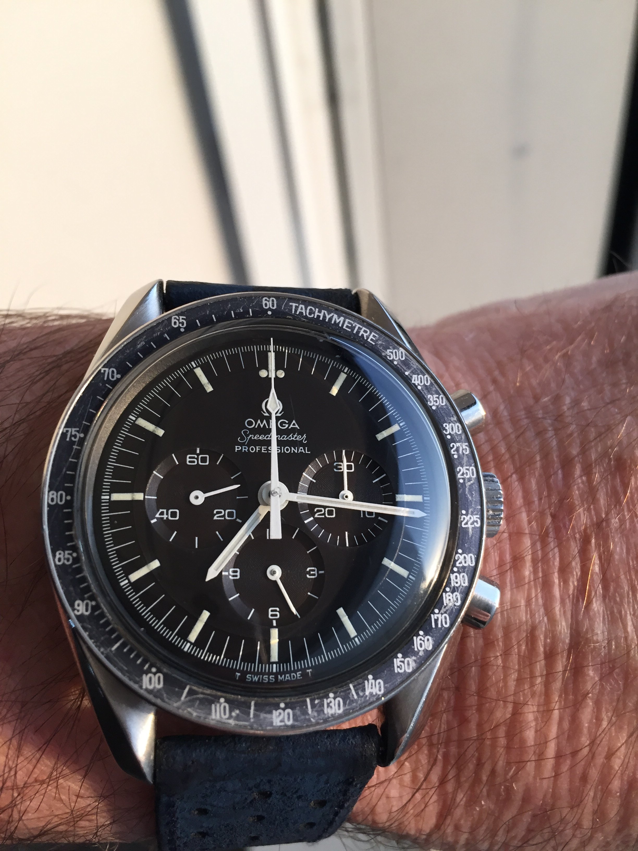 Back from repair.... one of the lugs had fallen off and needed welding. Before and after pics, with a thinner strap to accommodate the smaller lug space. The icing on the cake was the beautiful vintage buckle my watchmaker dug out from a treasure pile.