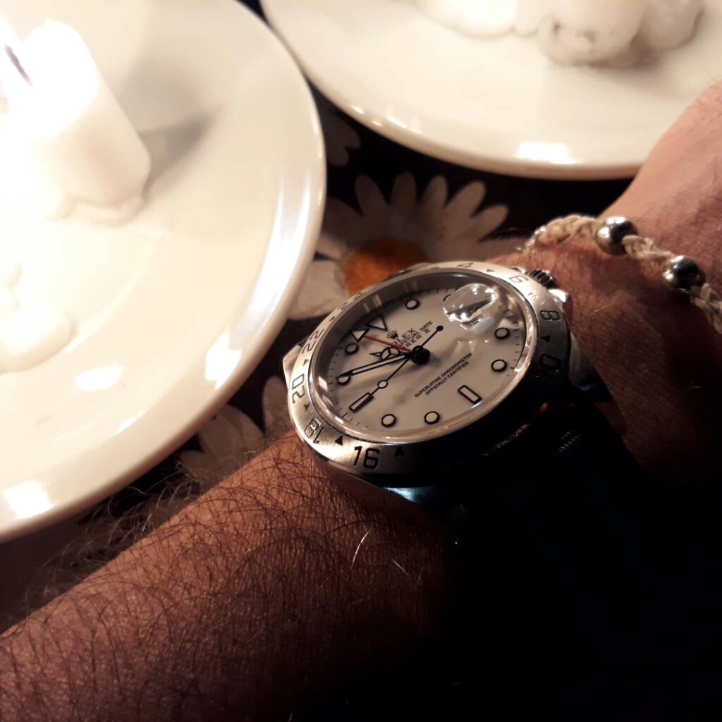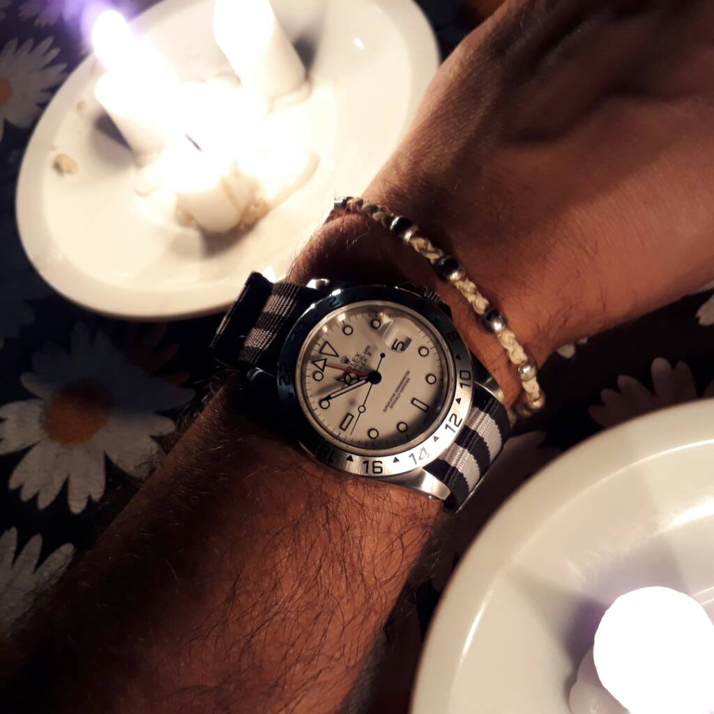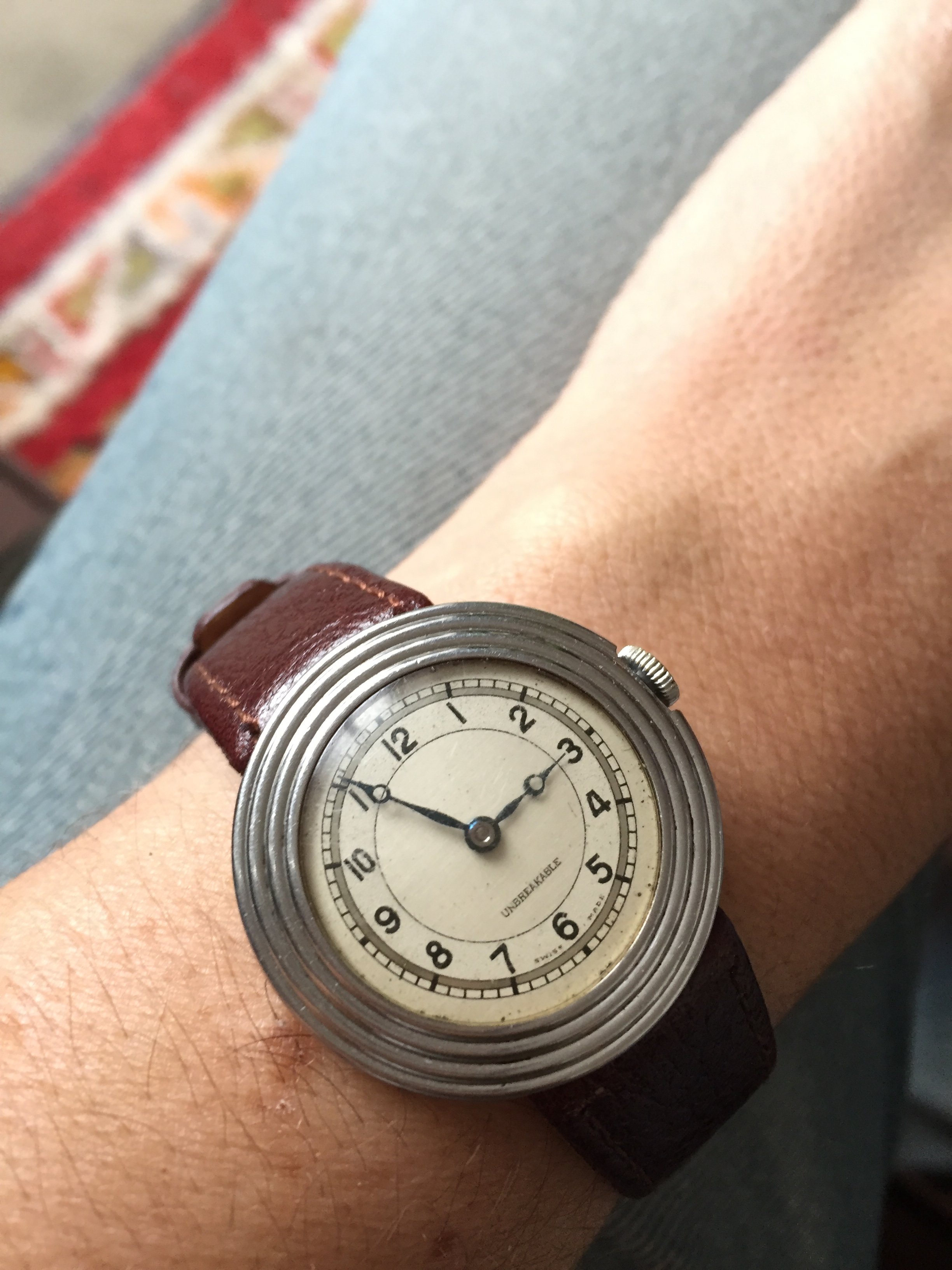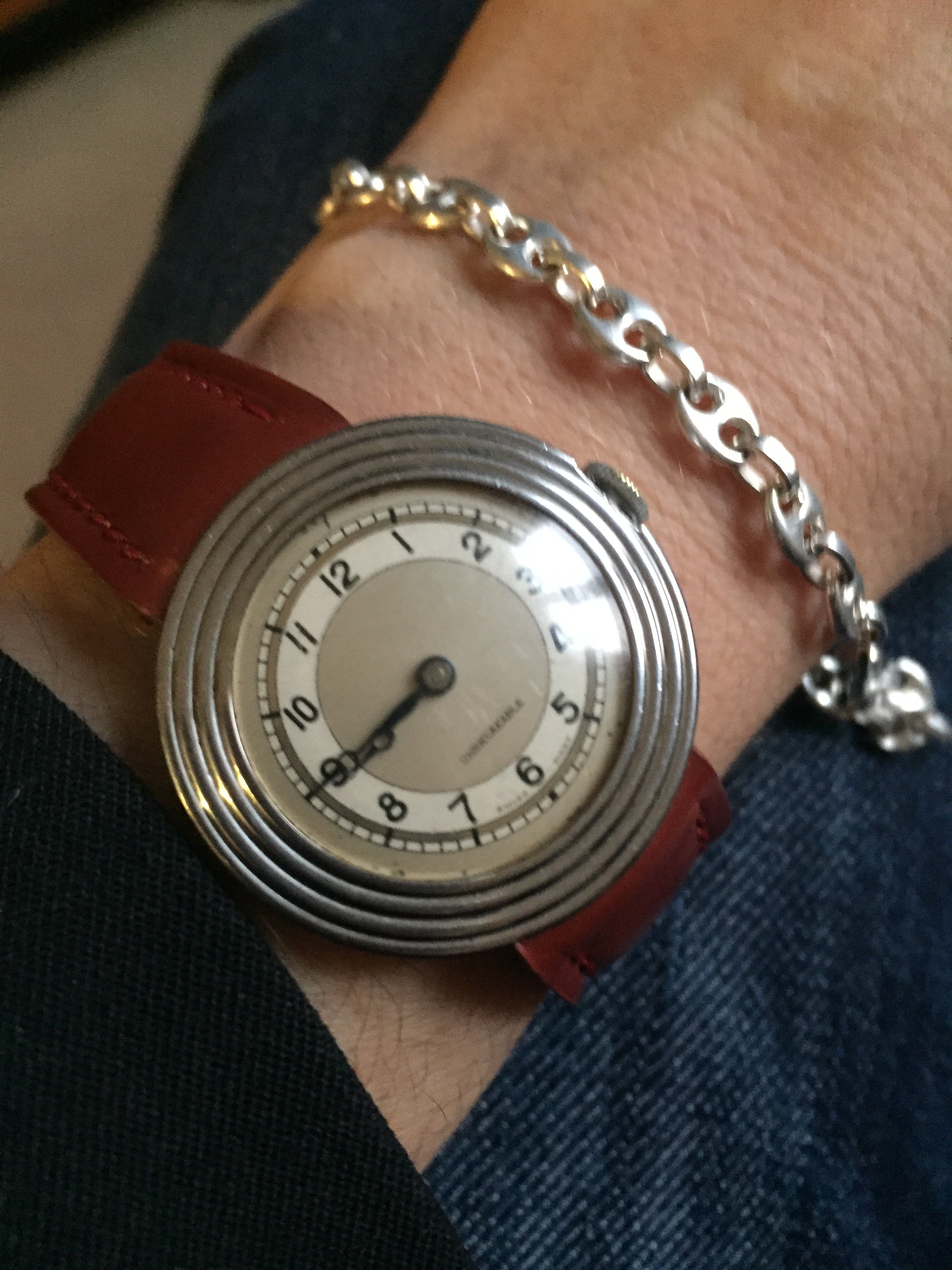 Back from repair.... one of the lugs had fallen off and needed welding. Before and after pics, with a thinner strap to accommodate the smaller lug space. The icing on the cake was the beautiful vintage buckle my watchmaker dug out from a treasure pile.