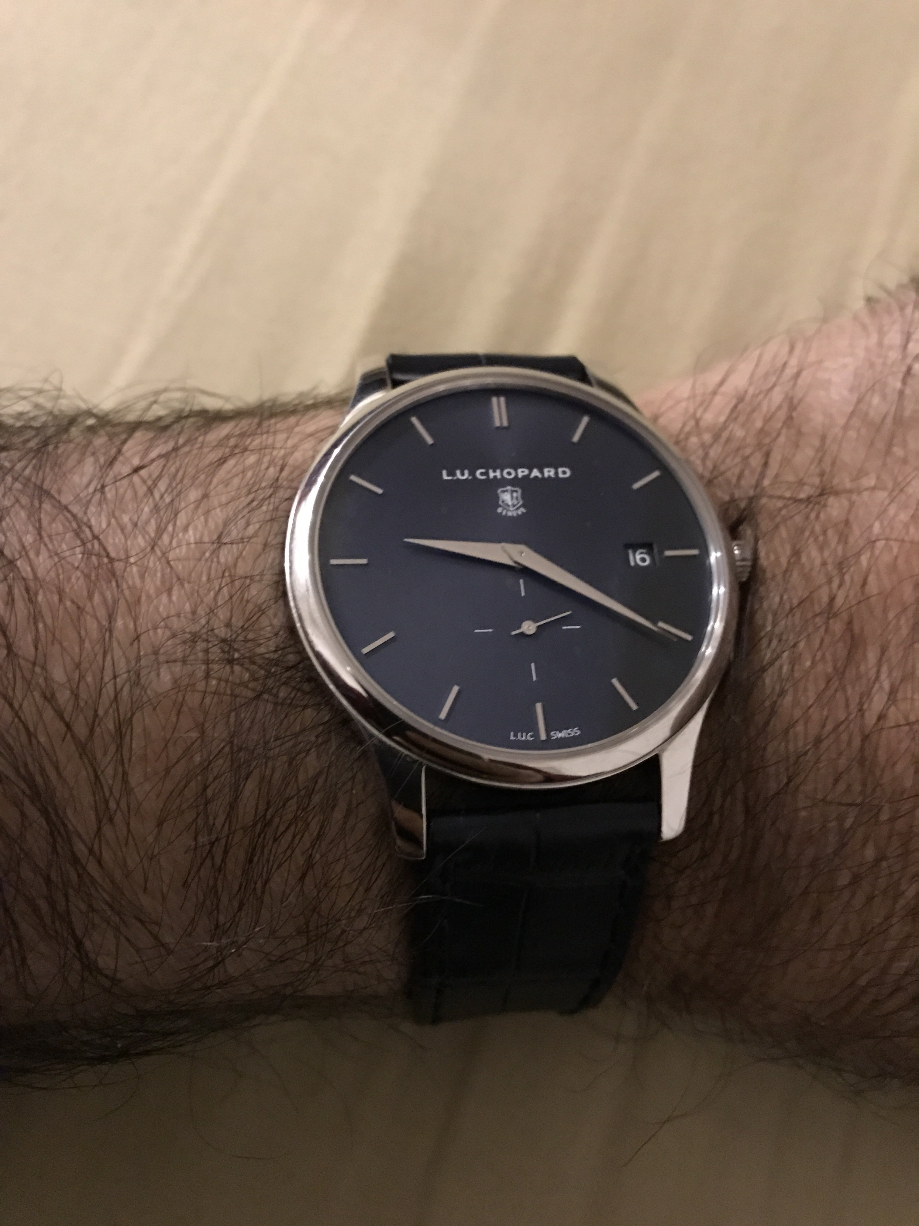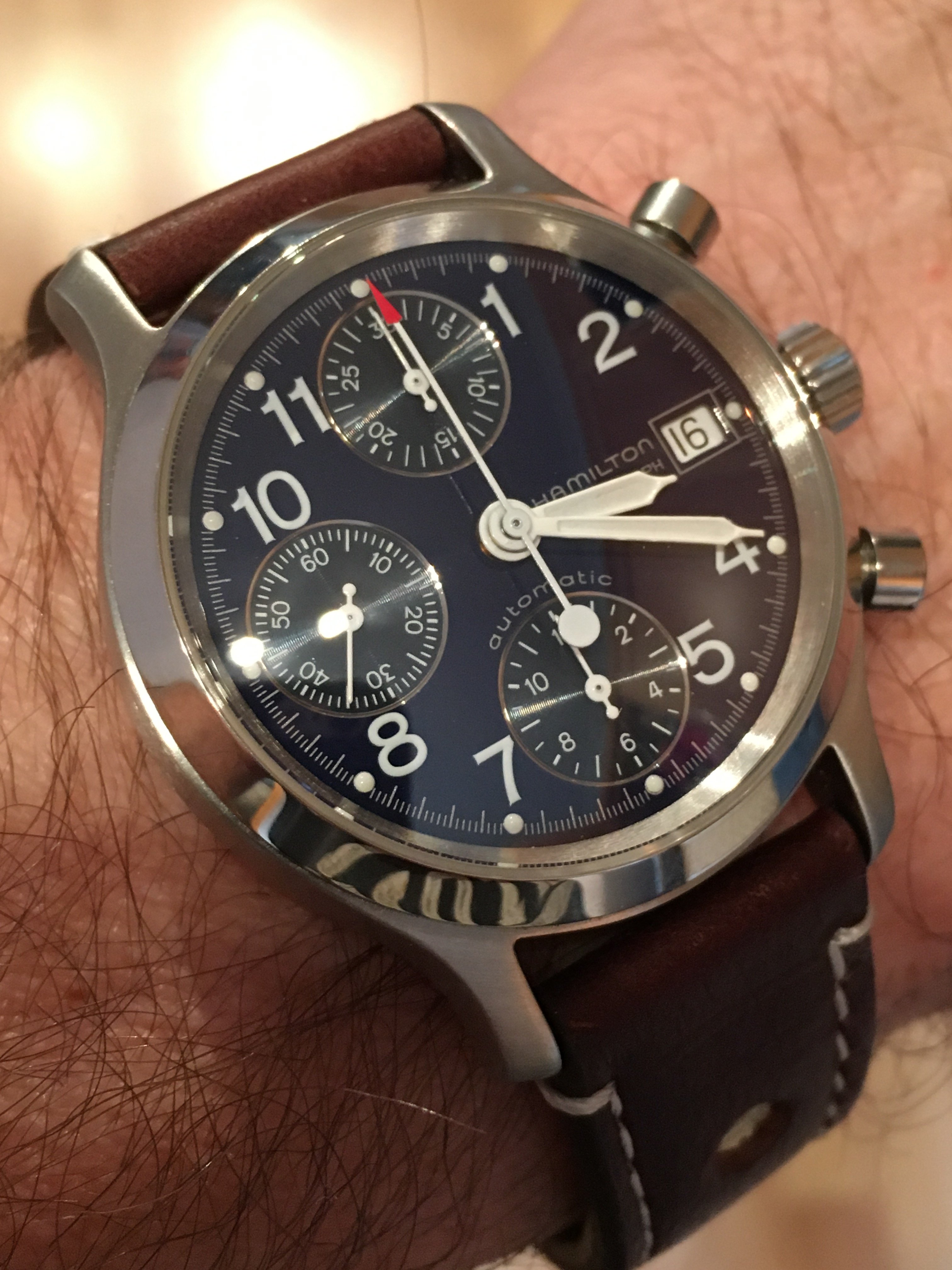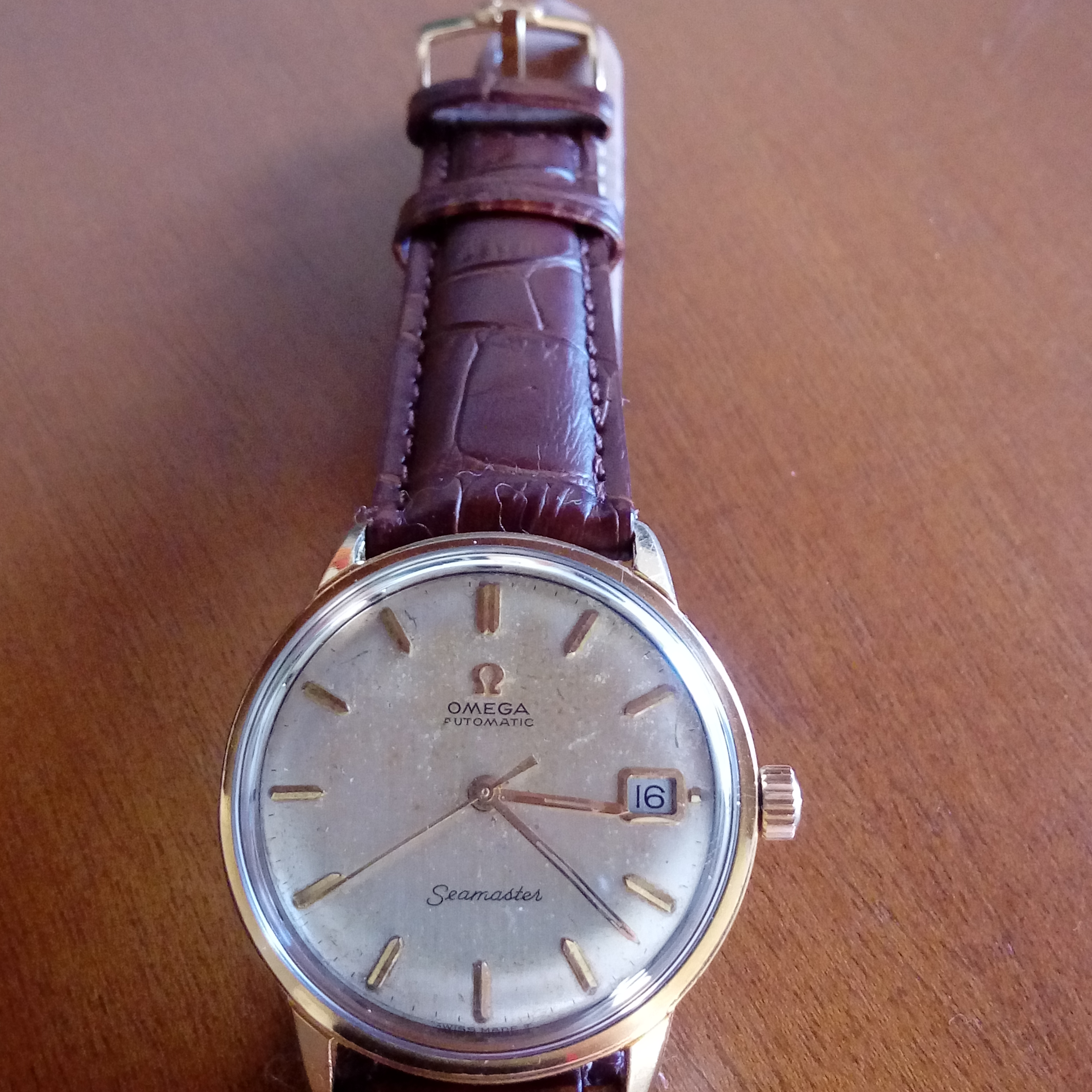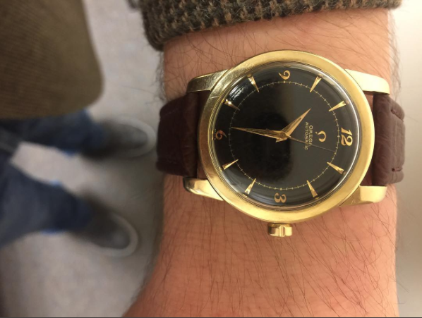 Back from repair.... one of the lugs had fallen off and needed welding. Before and after pics, with a thinner strap to accommodate the smaller lug space. The icing on the cake was the beautiful vintage buckle my watchmaker dug out from a treasure pile.