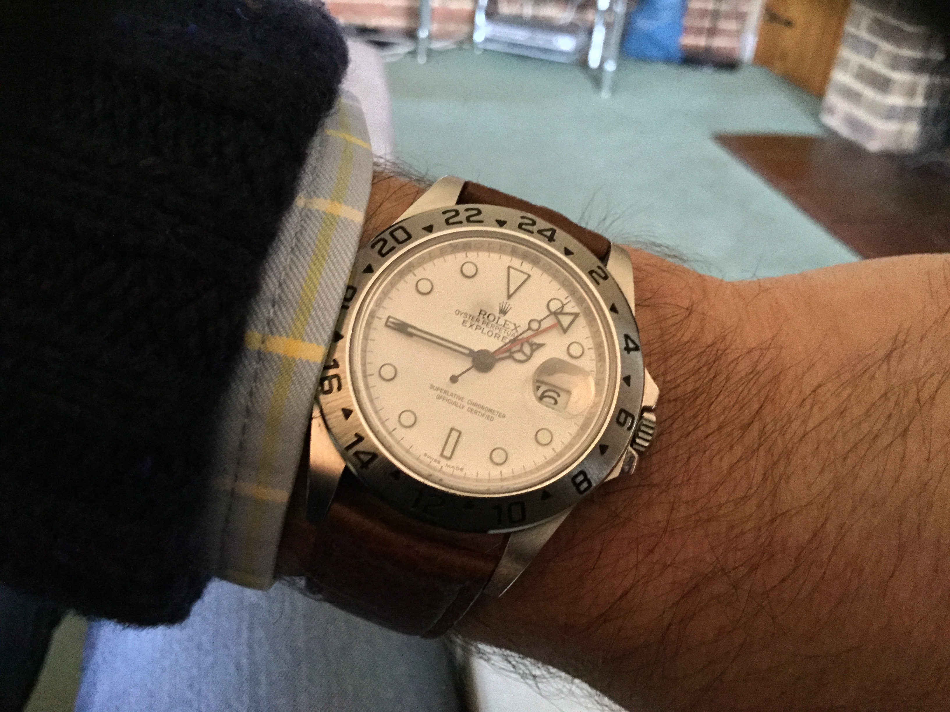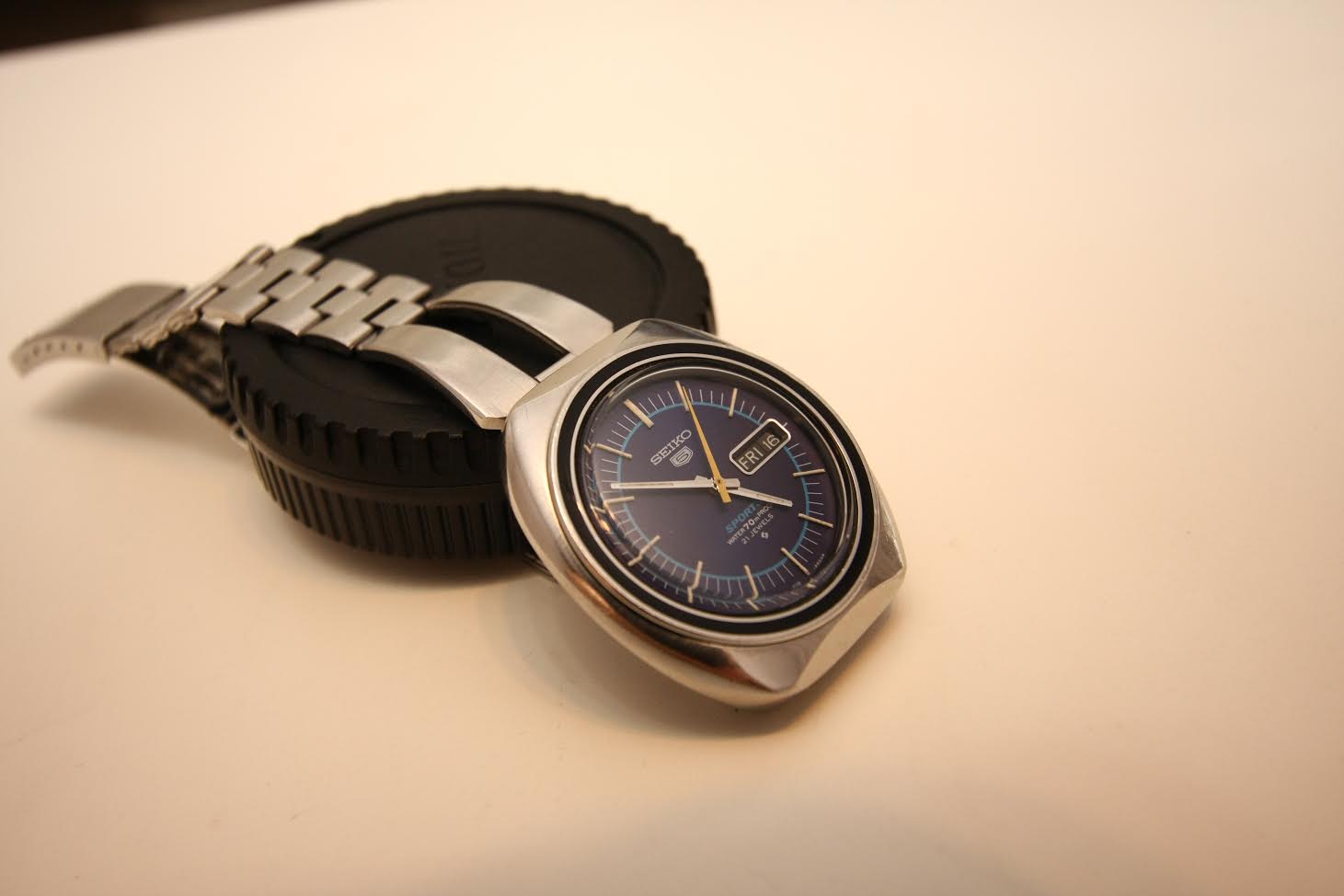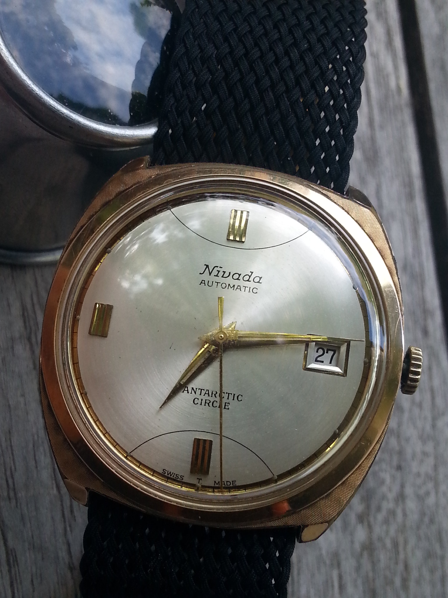 Back from repair.... one of the lugs had fallen off and needed welding. Before and after pics, with a thinner strap to accommodate the smaller lug space. The icing on the cake was the beautiful vintage buckle my watchmaker dug out from a treasure pile.
