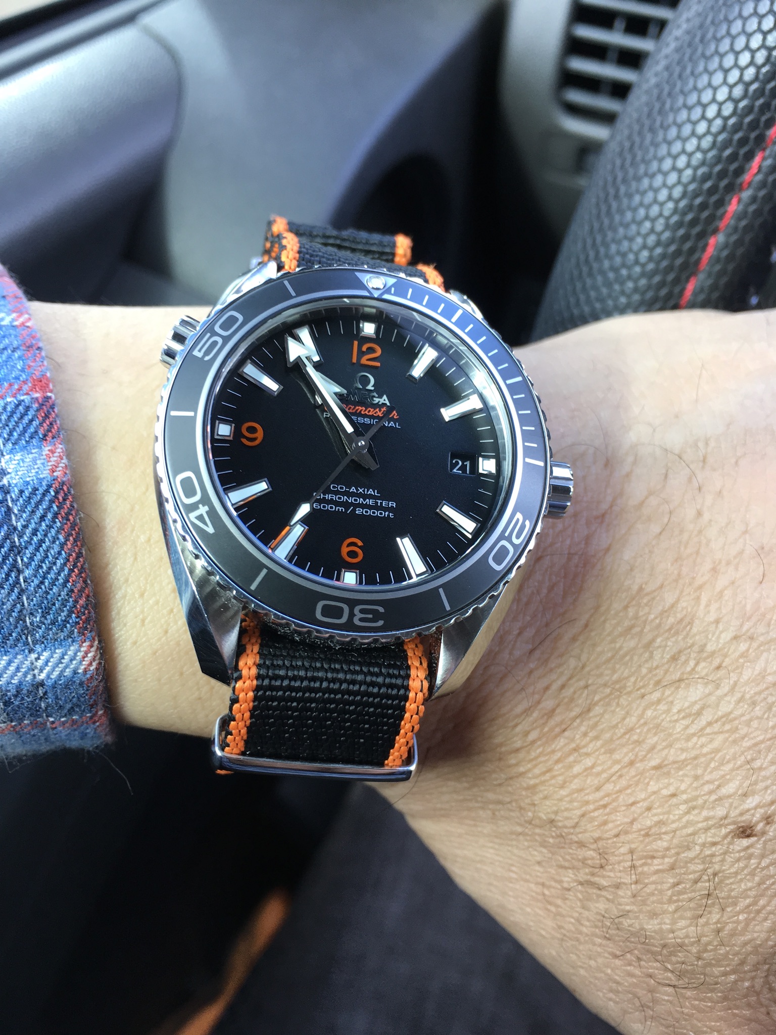 Away from the office and away from work. No jacket, no tie, and no dress shoes, either. Instead, a relaxed flannel shirt, old pair of jeans and comfortable winter boots today. And of course, my favorite PO on a NATO strap!
