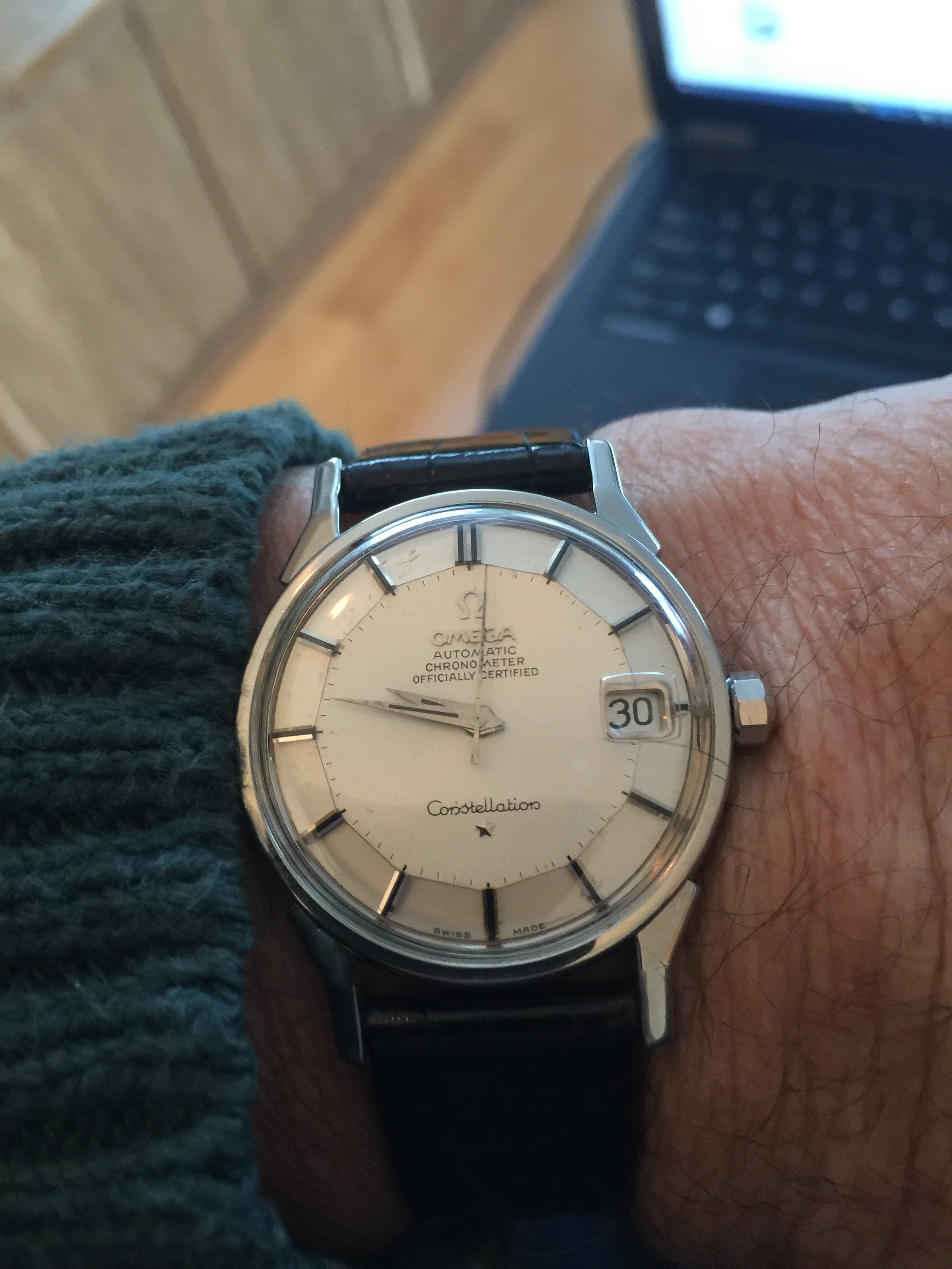 Seldom worn week continues with the lovely 1964 Pie Pan. I really don't know why I wear this so seldom after paying a dealer price, investing in a nice HODINKEE gator strap and Omega Buckle. Might be that it's a pain in the rear to set the date. Helps to have the service crown.