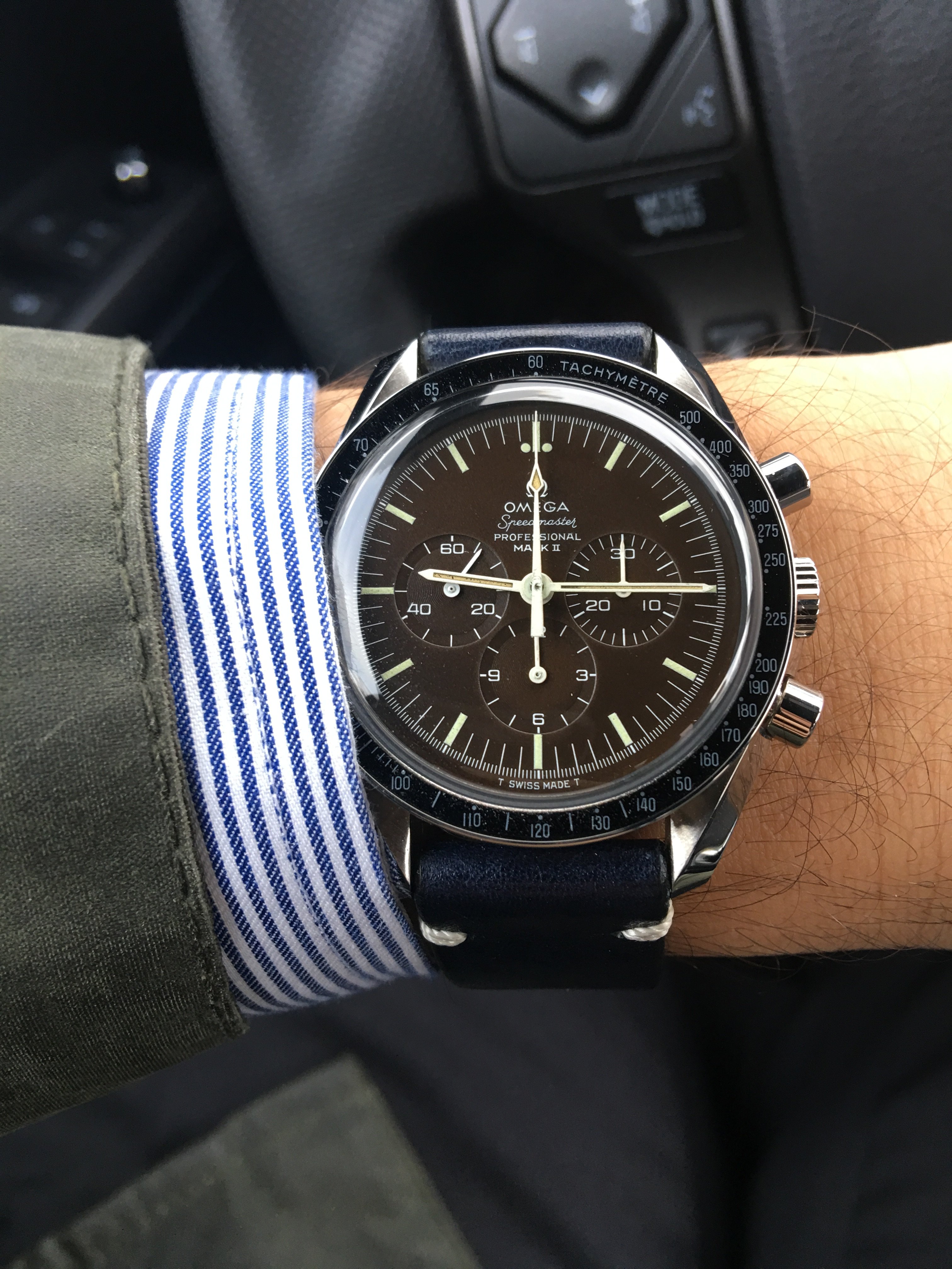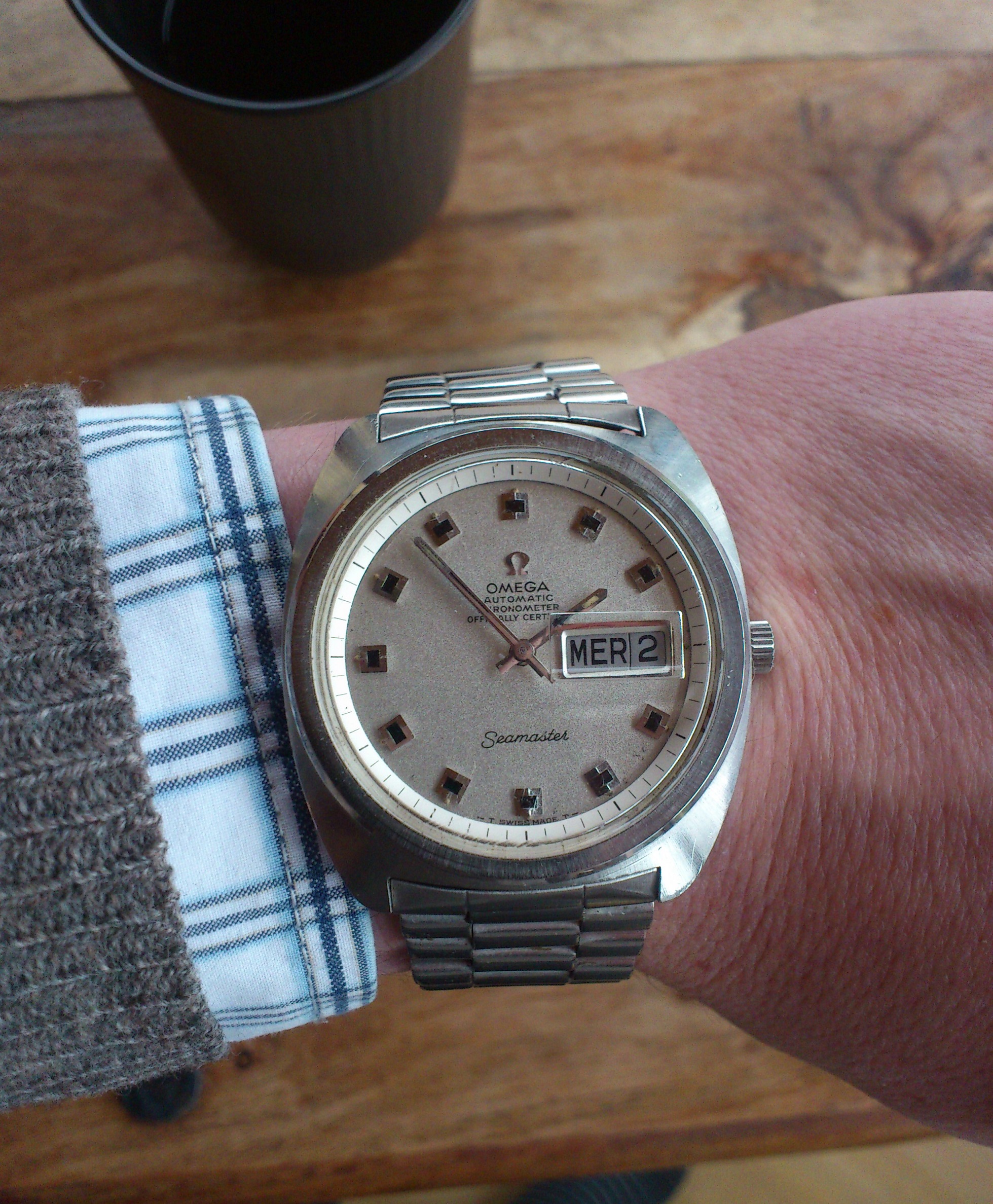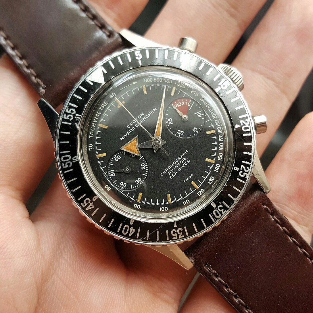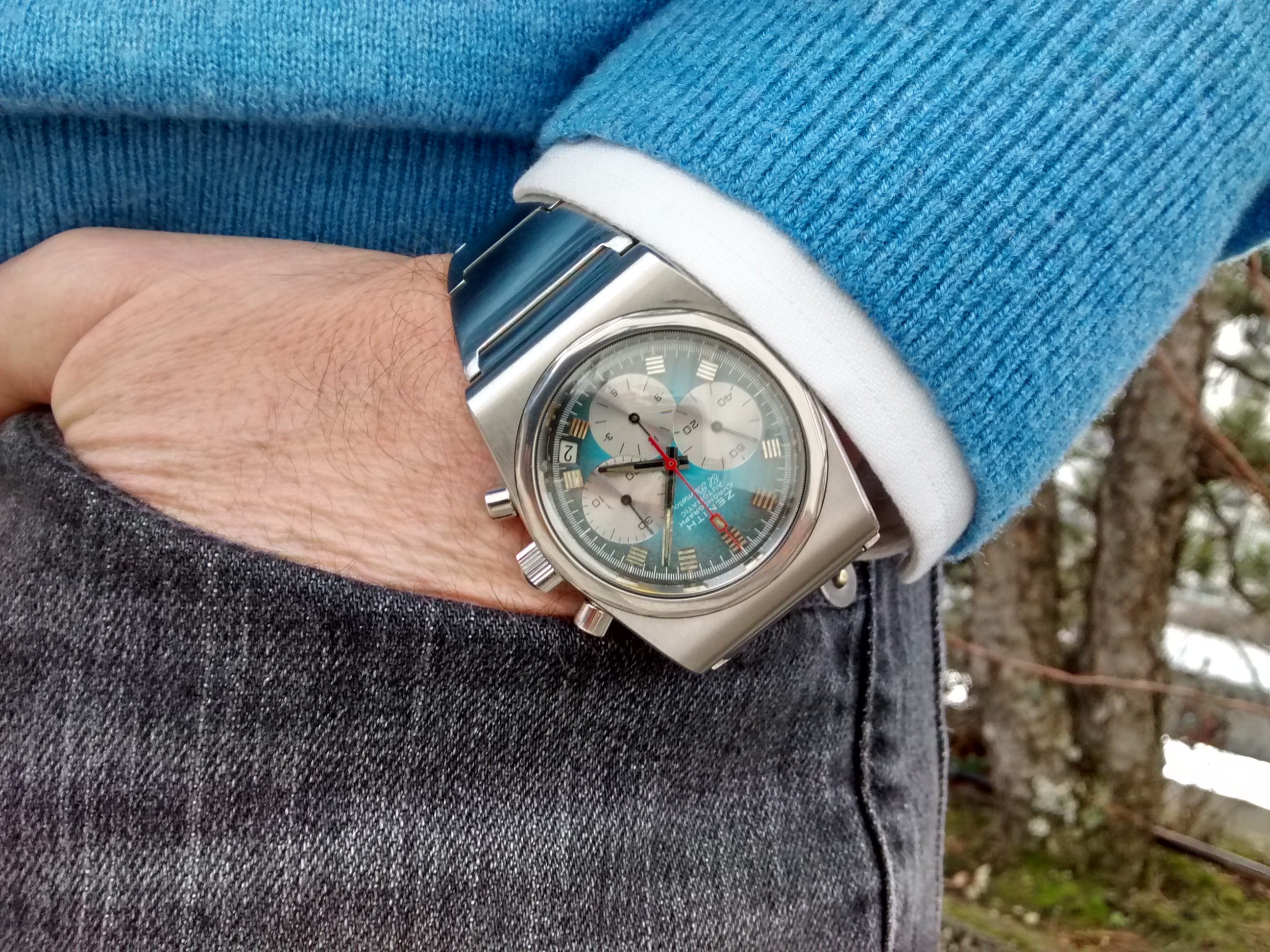 A sparkly chronometer to liven up an exceedingly dreary grey day. Haven't had this one opened yet, but counting on everything being alright inside. It sure goes very, very well! One of my newest and biggest vintage watches at a whopping 38mm 😉