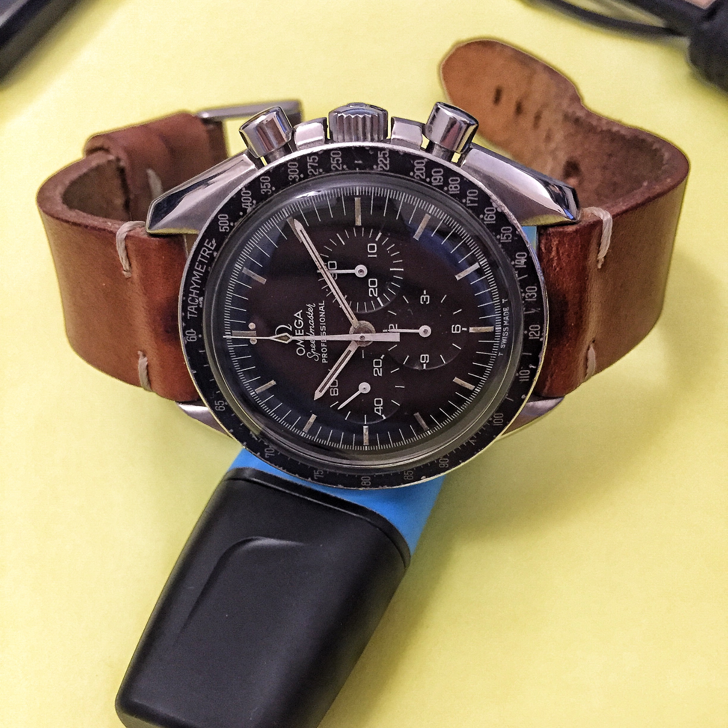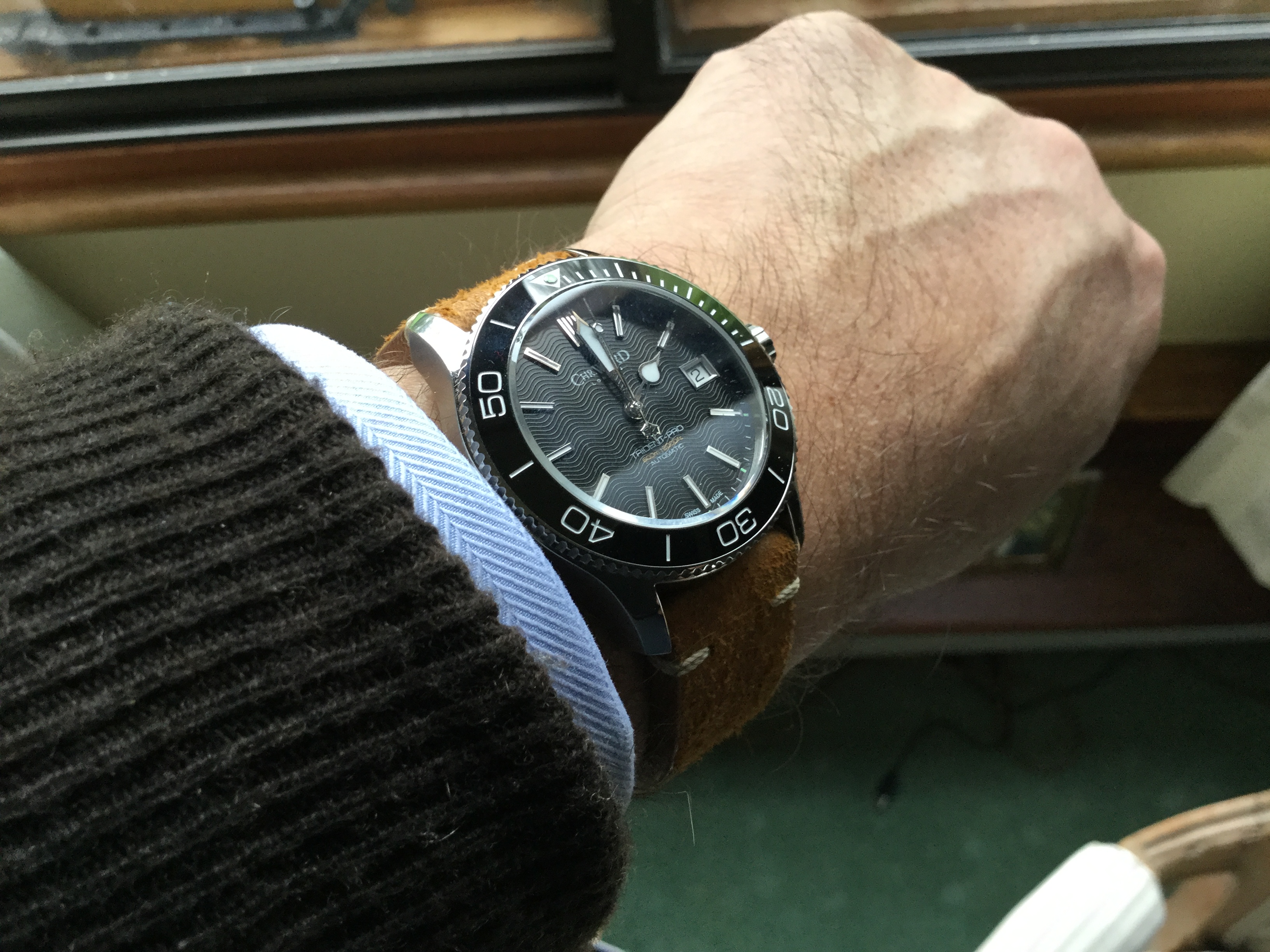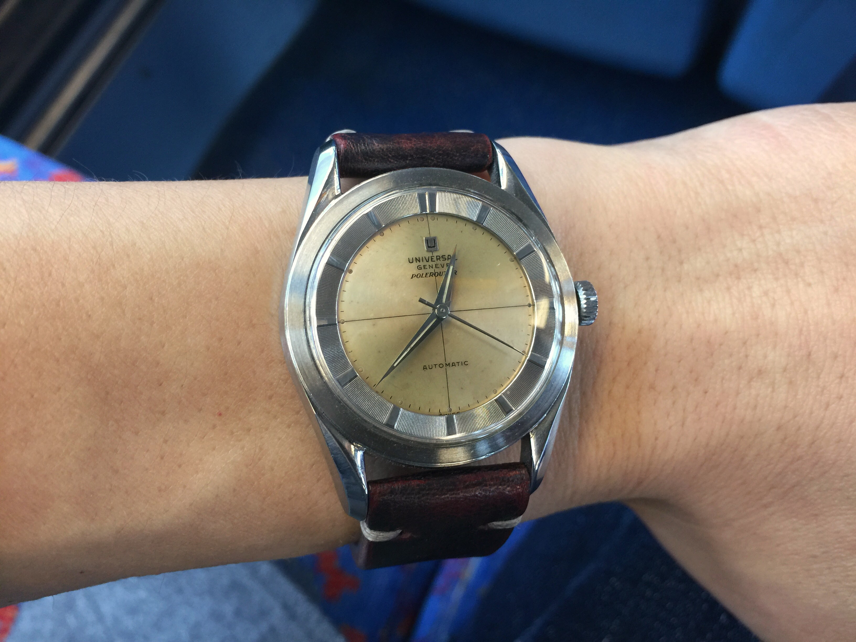 A sparkly chronometer to liven up an exceedingly dreary grey day. Haven't had this one opened yet, but counting on everything being alright inside. It sure goes very, very well! One of my newest and biggest vintage watches at a whopping 38mm 😉