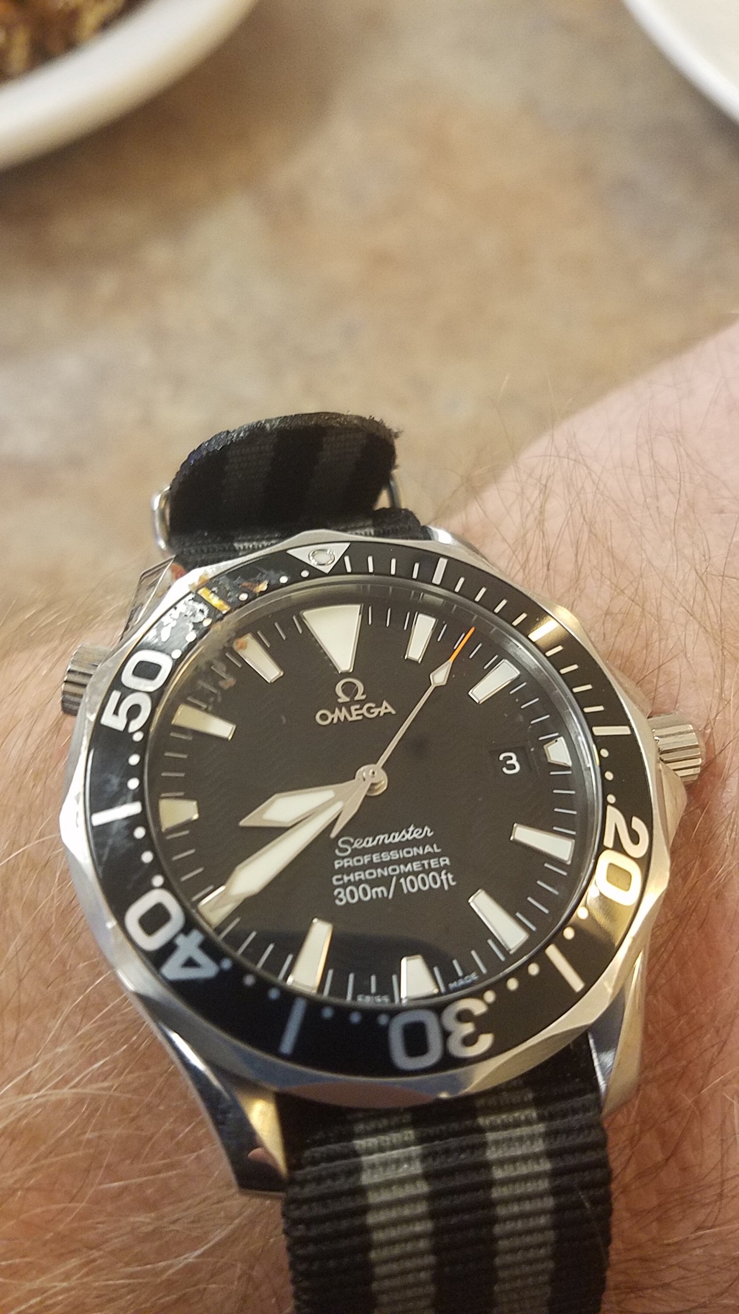 Posts 1,455 Likes 6,645 duc ·Feb 3, 2017 Buck2466 My OCD compels me to ask if you dropped a slice of pizza on this, at the 9 to 11 zone of the bezel?