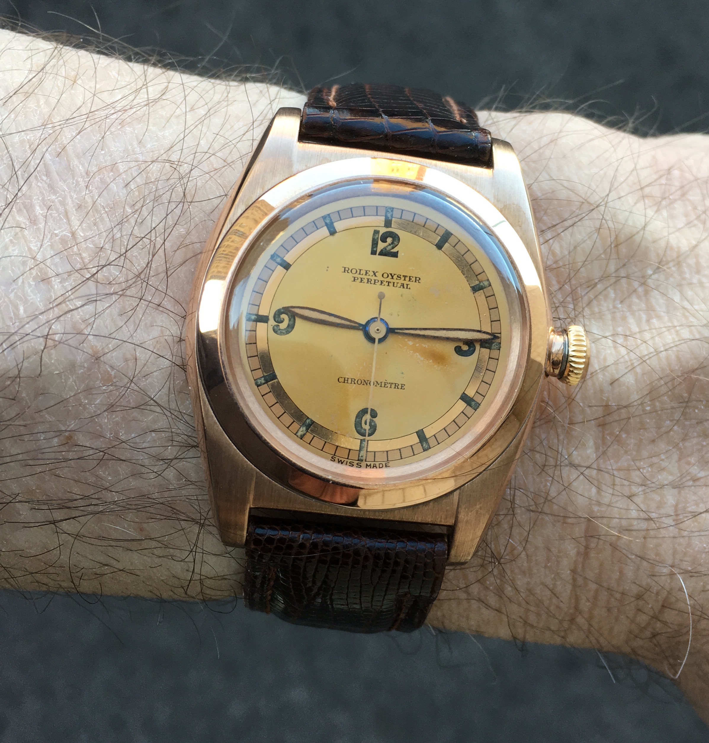 Tropical bubbleback reference today (3696)..."Tropical" in the original sense of solid gold top and steel caseback (i.e. intended for use in more equatorial climes, as steel was thought to feel cooler sgainst the skin).