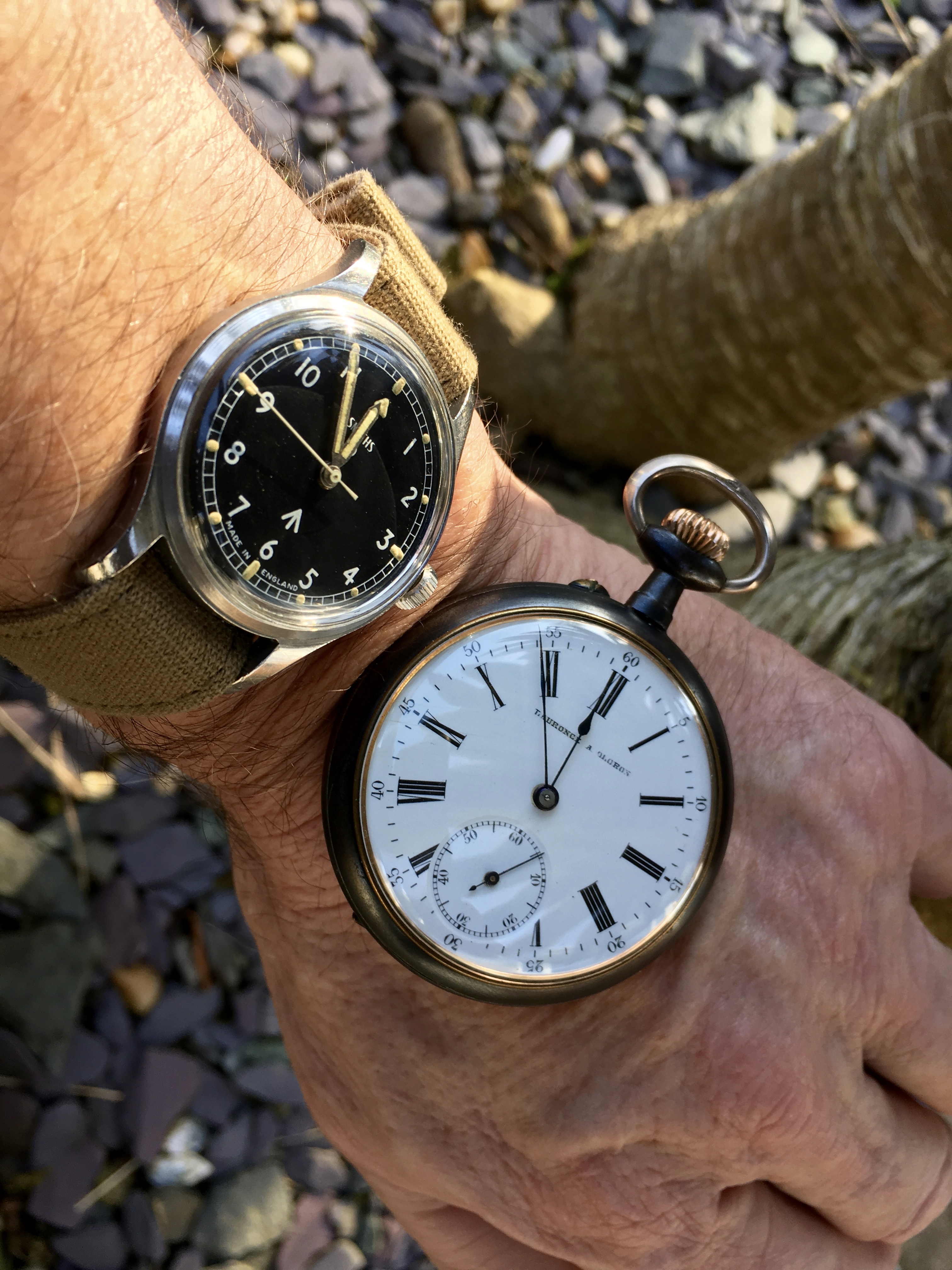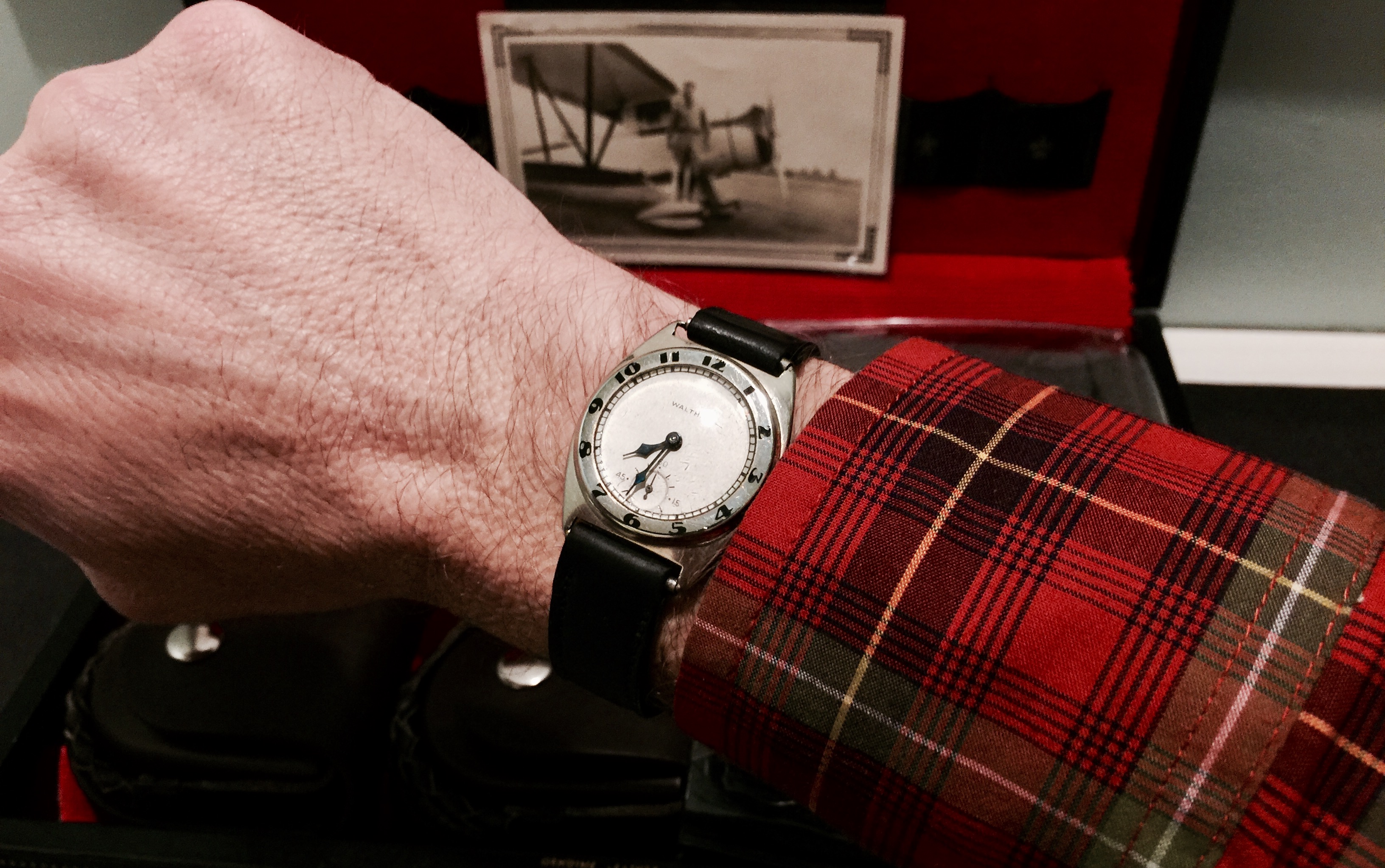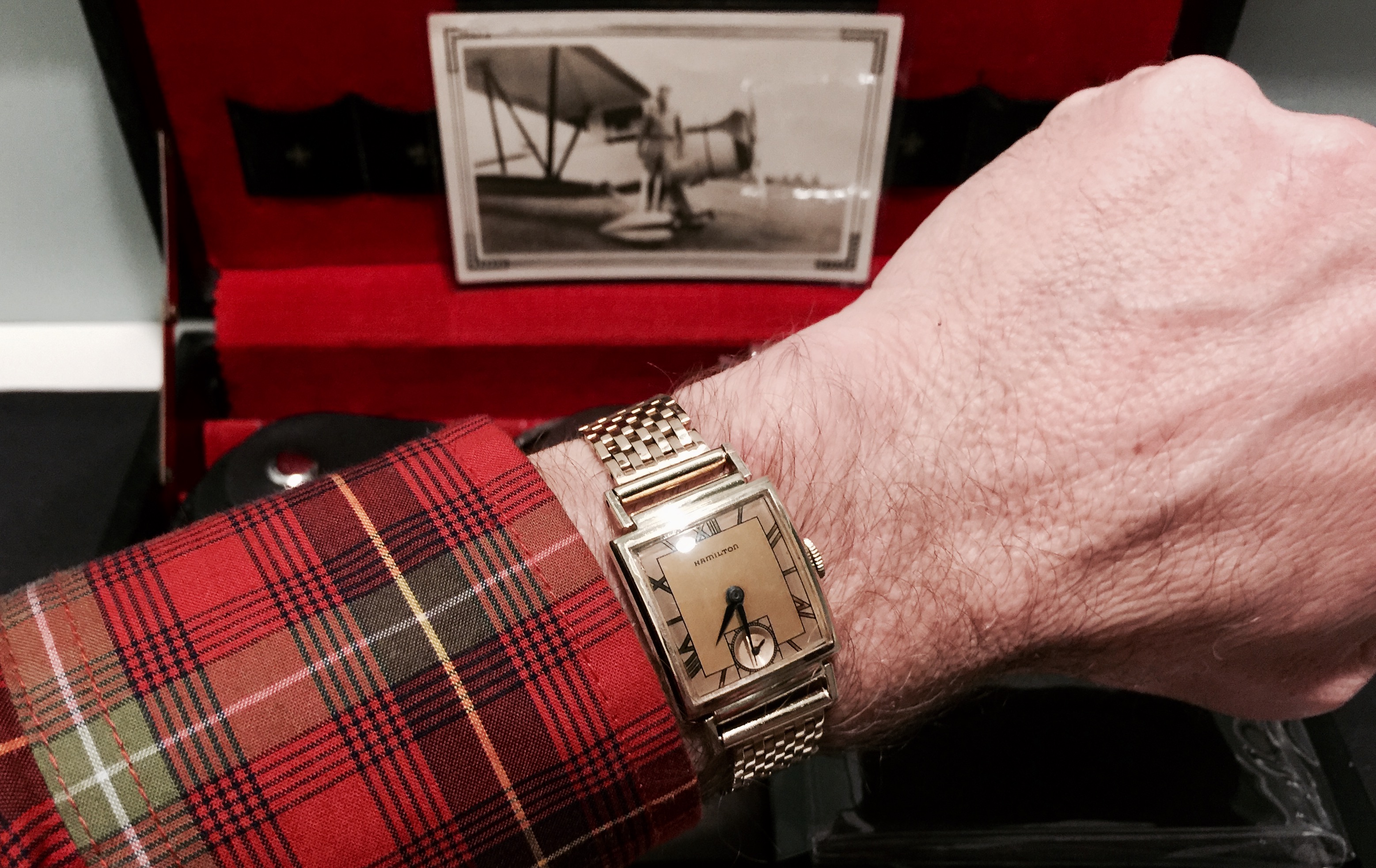 Evening switch to my Dad's Hamilton Ross and Waltham Ruby since it's the Super Bowl. I forgot to wear my Dad's watches on what would have been his 106th birthday which was last January 26th. One of the many father-son things that we did together was watch the Super Bowl...so I'm wearing his watches tonight since I missed it on January 26th. I miss my Dad...that's him in the background pic in pics below...and that's his watch/cuff link case pictured below as well.