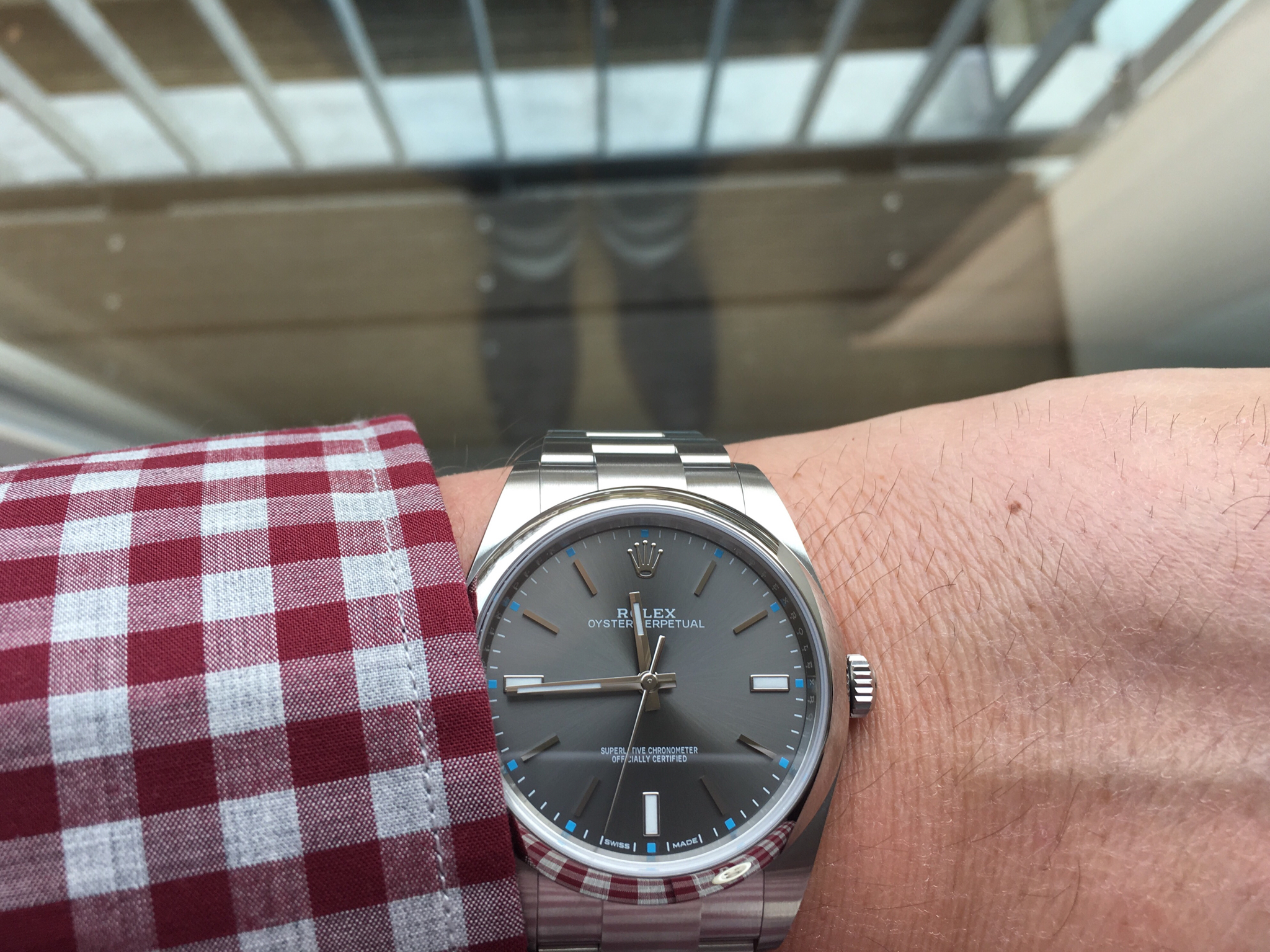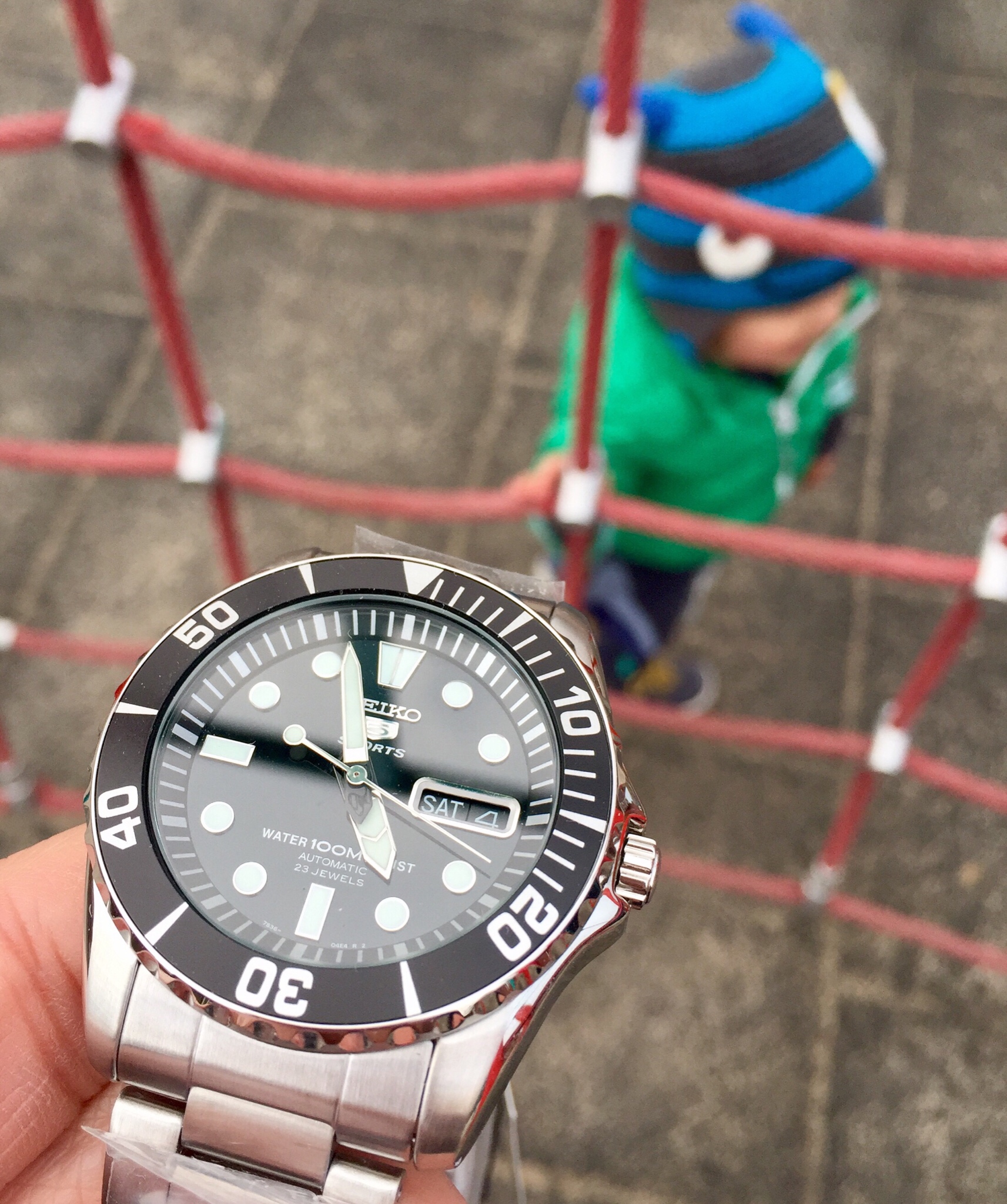 When I arrived in the store I happened to mention that I had tried pretty much every strap and bracelet on my GM, from shark mesh to NATO, in black (see the post from yesterday), in response to which the nice store assistant pulled out something very interesting from her drawers (no don't get ahead of yourselves!), namely an Olympic 8 lane blue and white NATO which I thought looked so cool I insisted that they fit it to my GM to see what the combo would look like.