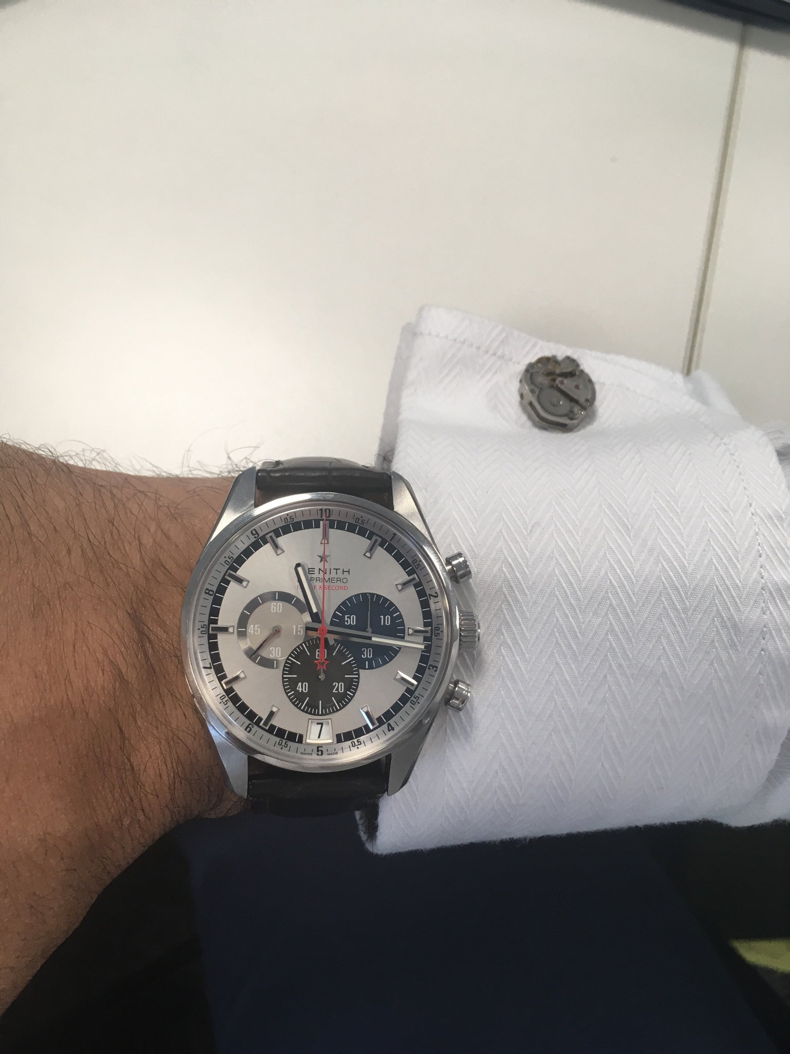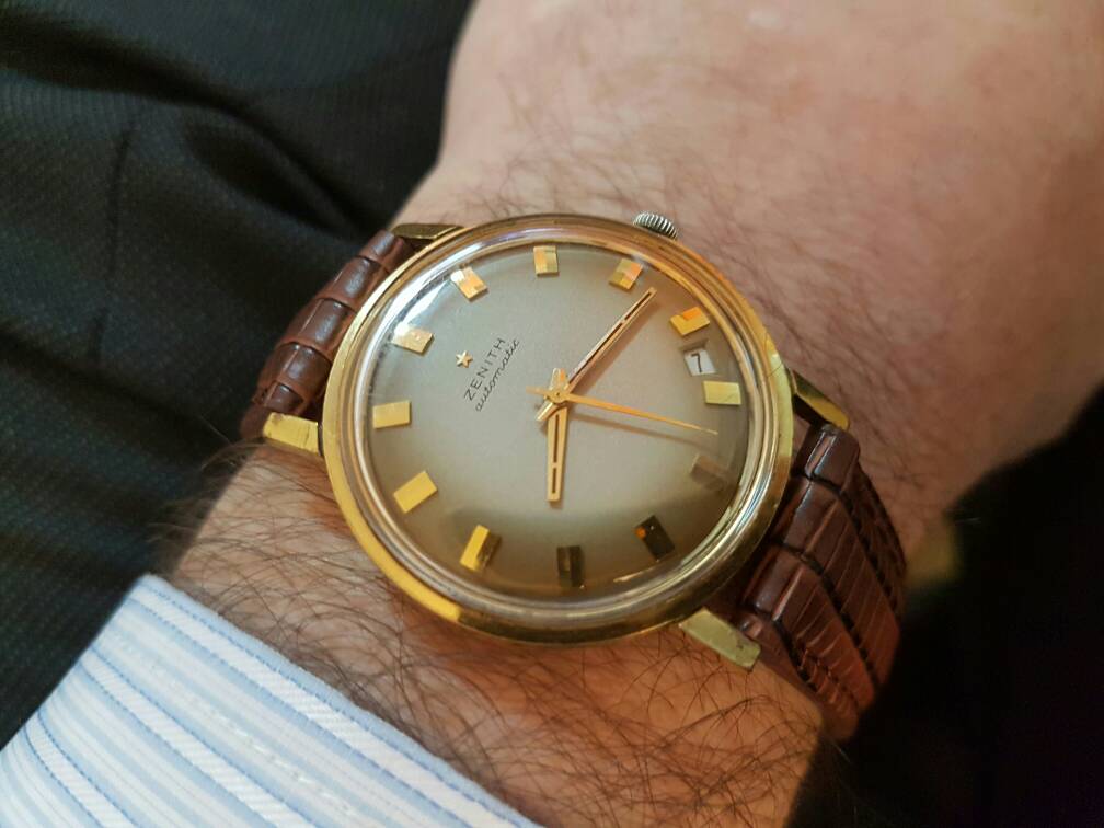 This one was found, in pieces, in a metal box marked OMEGA. In the box were 3 or 4 mid-50s vintage Omega bumper movements, all in pieces. This all was amongst the stuff I acquired from my late father's estate. So this watch had sat in that box for over 40 years. Surprisingly, it was all there, except for the case. I put it all together, and it sat until OB poster Tritium from Madrid sent me a PM that he had an extra (NOS) case. As to the bracelet? About 32 years ago, a local watch material supplier closed up, and I bought a bunch of older style watch bracelets, along with a truck load of other stuff. You asked about the kind of bracelet. I had to check. I found it in my stash, again, NOS. the trade mark on it says STL, and beyond that, I know nothing. Suits the watch, I think. I succumbed to temptation, re-set the calendar, and I'll wear it for a while.