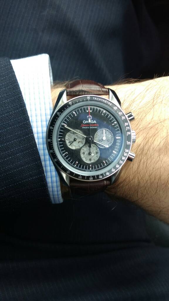 Picture not great. Awkward trying to photograph three watches on two wrists. The Certina and the Omega are two orphans I have adopted and fixed up. You might call them "survivors". Both serviced, and testing them to iron out a few wrinkles. The Rolex is a mid 1980s Rolex Date-Just that I sold to its owner as a used watch about 25-years ago. I have maintained it for him ever since. Just serviced, but I have yet to polish the crystal.