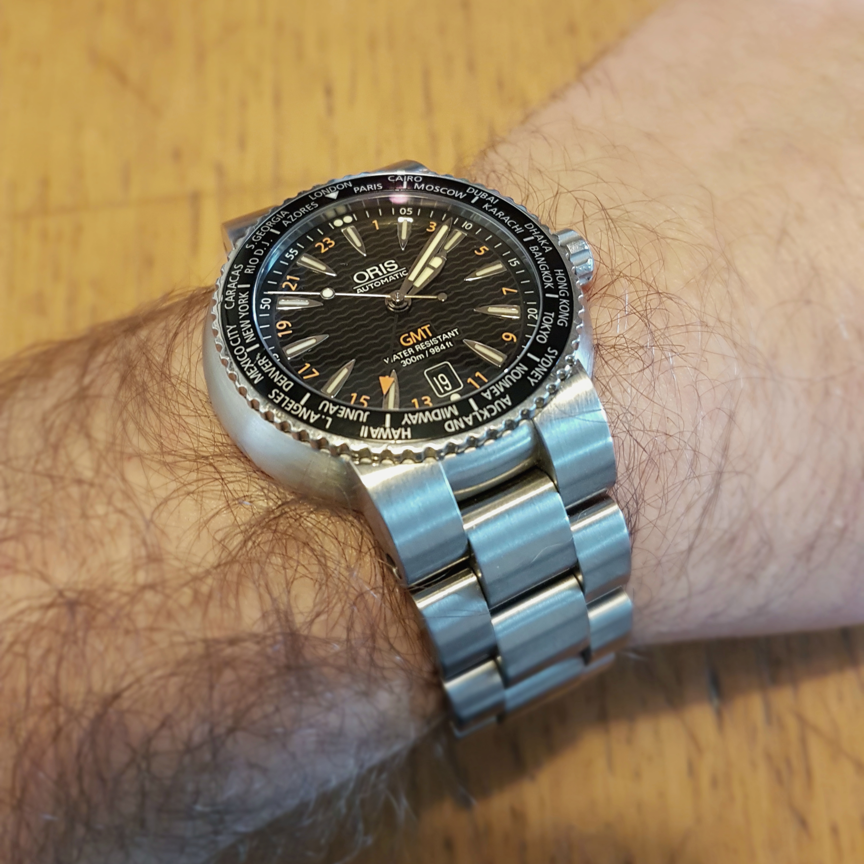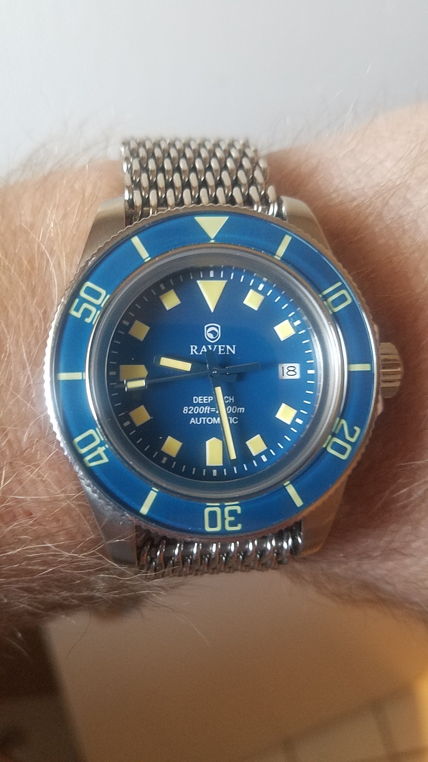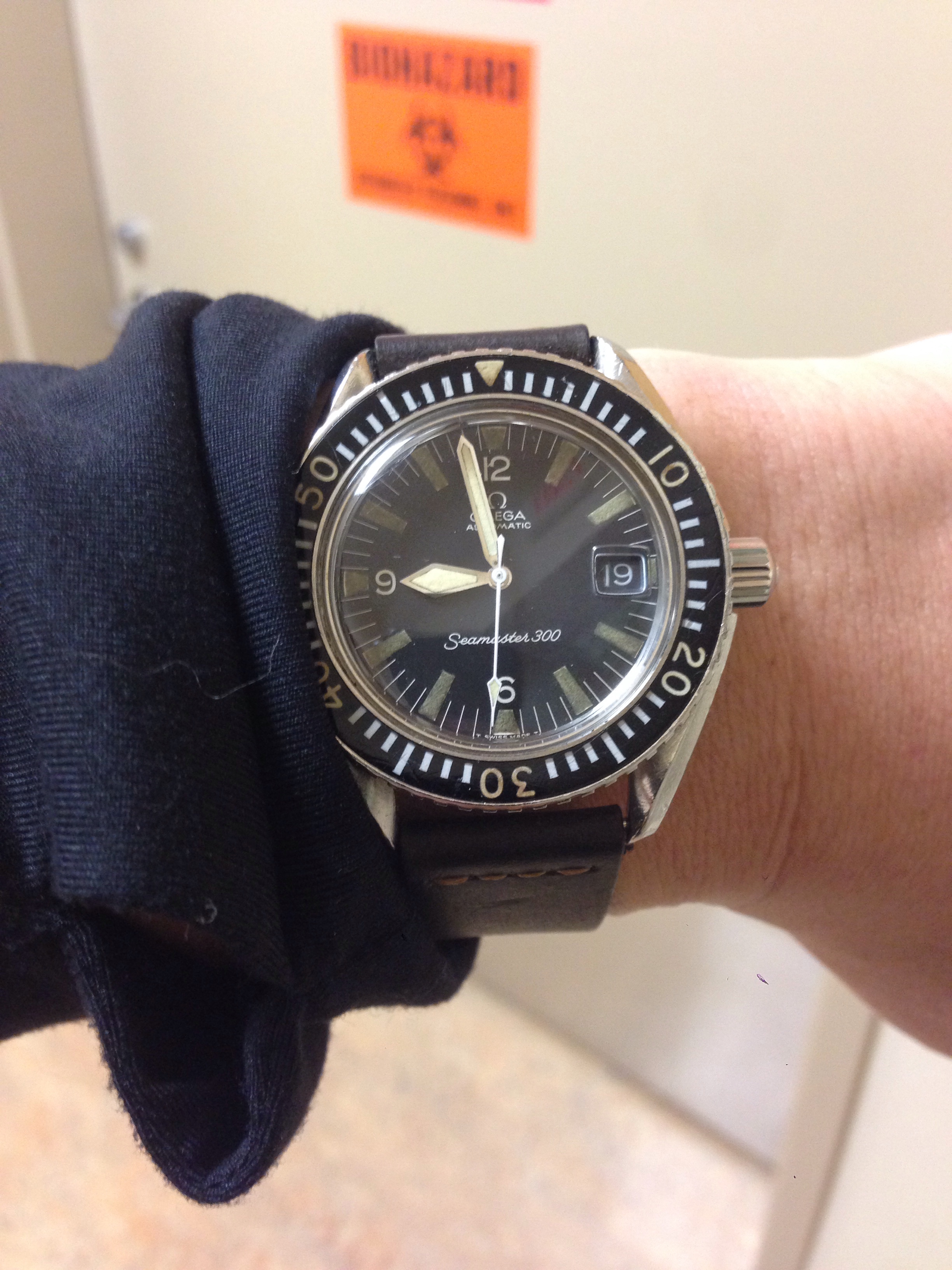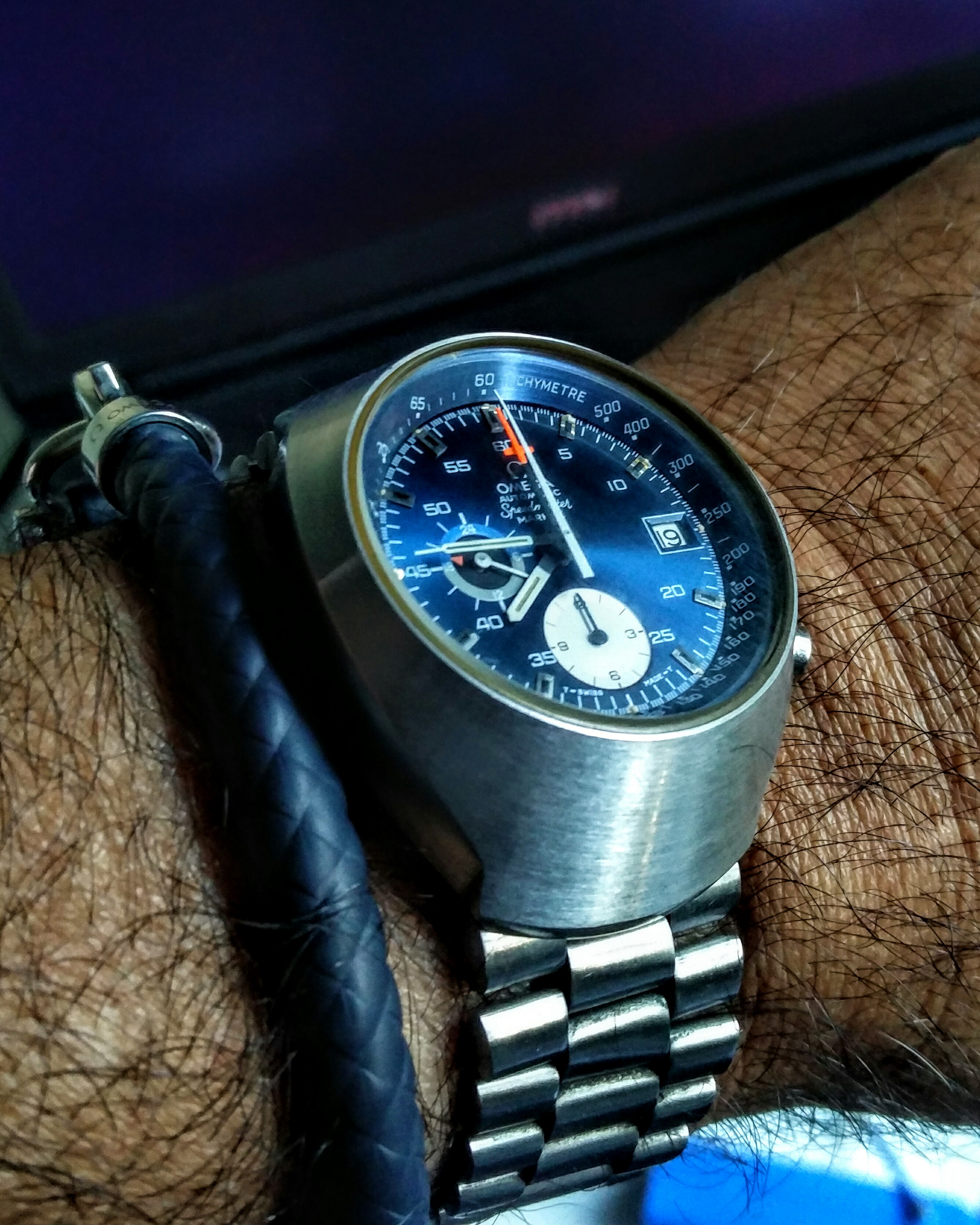 Again today. Survived a three hour fiddle gig, on my bowing arm, last night. Early to mid 1950s, caliber 355, Date at 6:00. Dial is original and unrestored. Watch survived in pieces for well over 40 years, in a tin can of watch parts. A joy to own and wear.