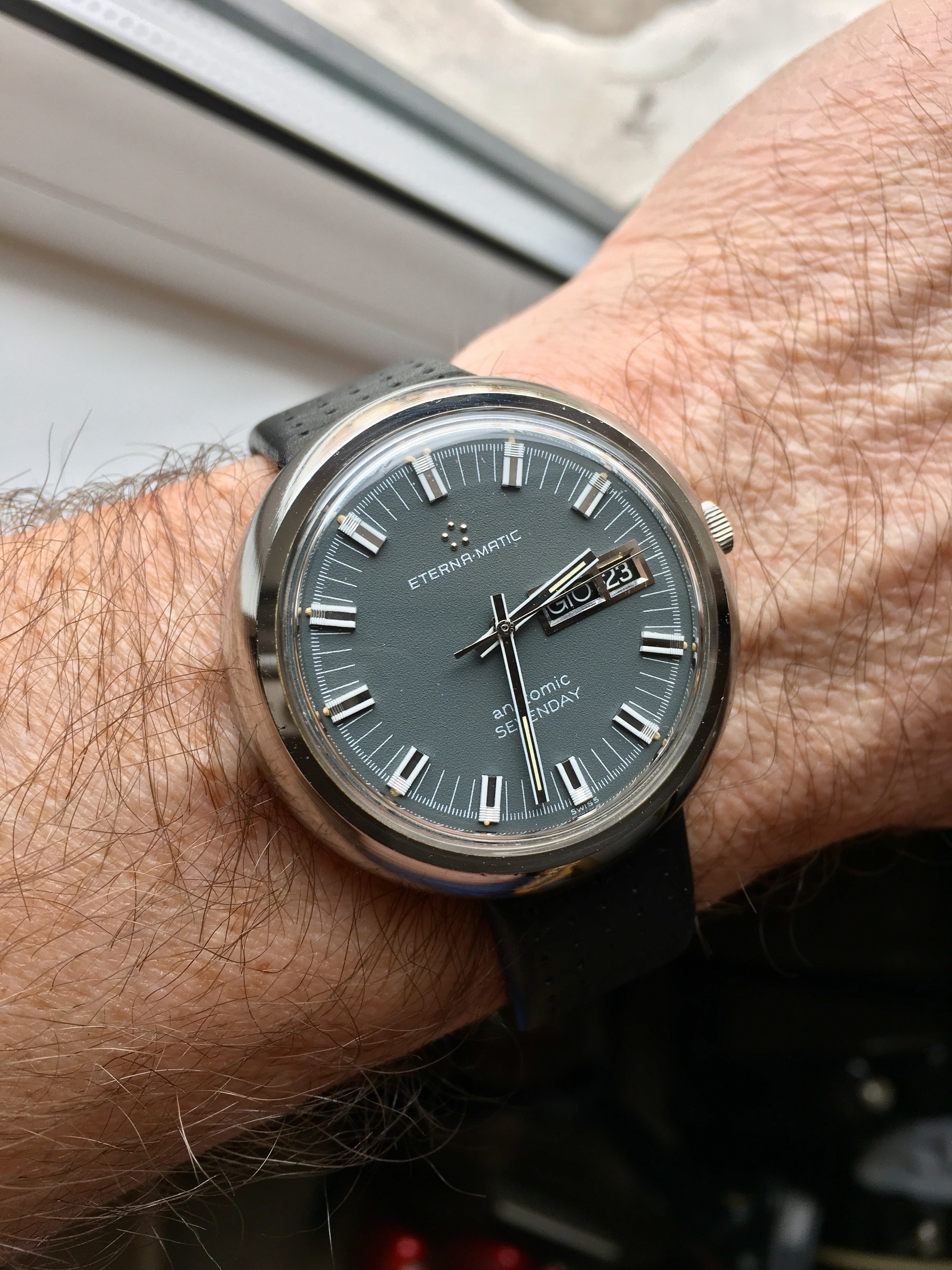 Posts 3,154 Likes 40,533 Omega1 路Mar 23, 2017 Still wearing the Eterna Matic ... just a cool looking watch..