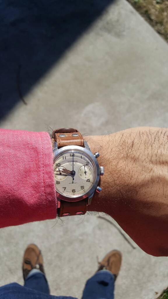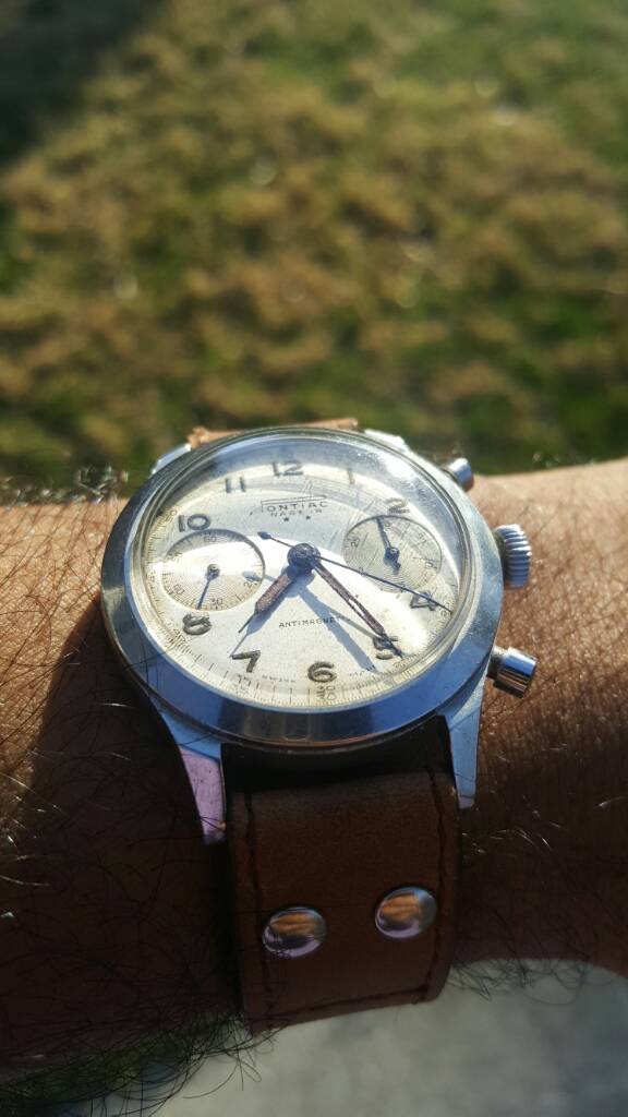 Posts 1,010 Likes 2,985 shishy 路Mar 26, 2017 Pontiac that I picked up a while ago. Has a Valjoux 22. It was military issue (Belgian airforce, 1951).