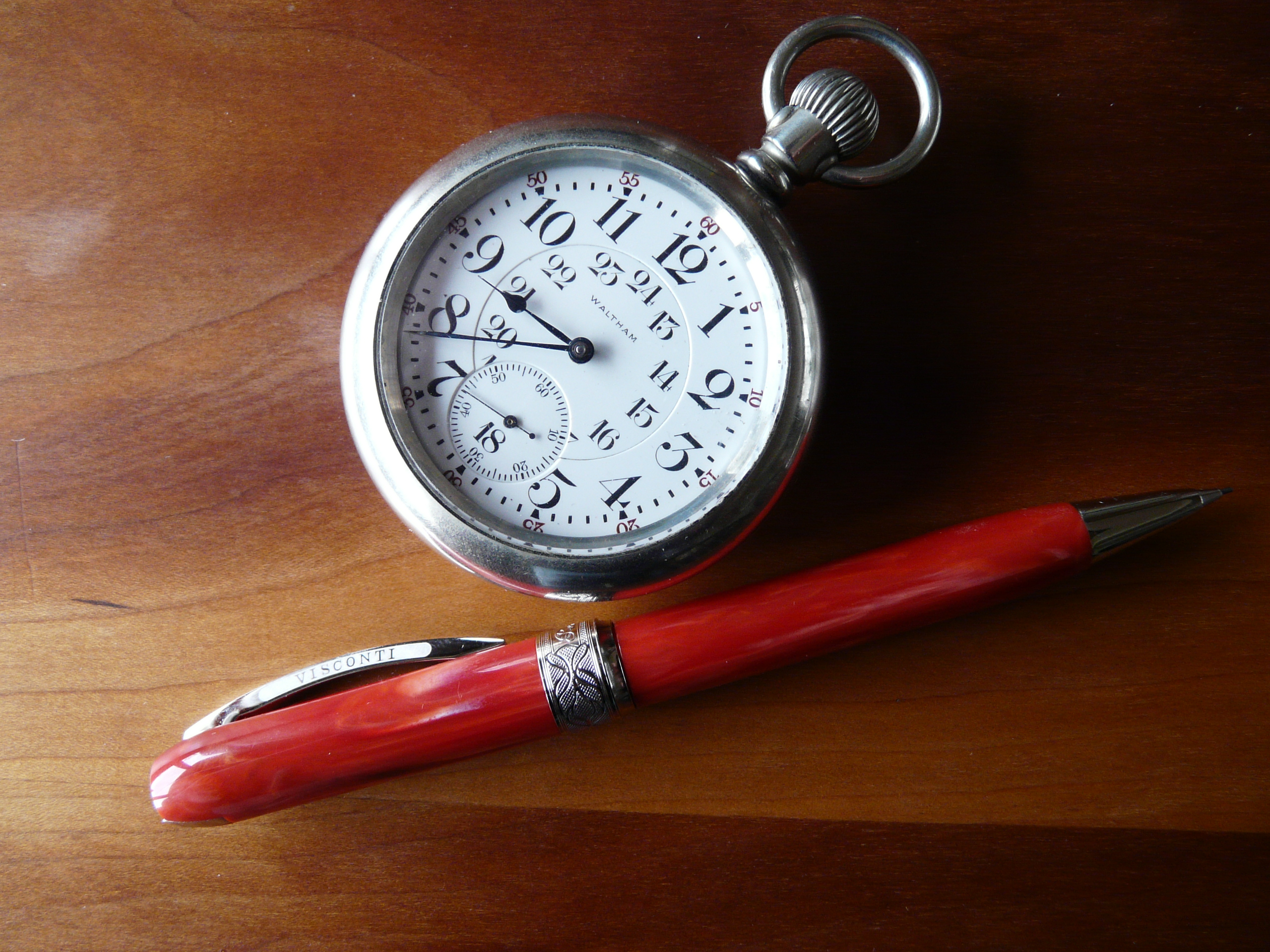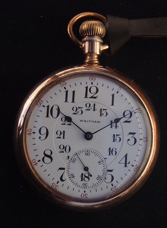 These are easy to love. Here's a favourite of mine. An 1892 model Waltham, lever set, 17-jewels, marked for the Canadian Railway Time Service. A 24-hour, double-sunk, vitreous enamel dial. Listed in the Waltham "grey" book as P S Bartlett grade, circa 1907. It is 110 years old, and while the watch is not running in the pictures, it runs beautifully.