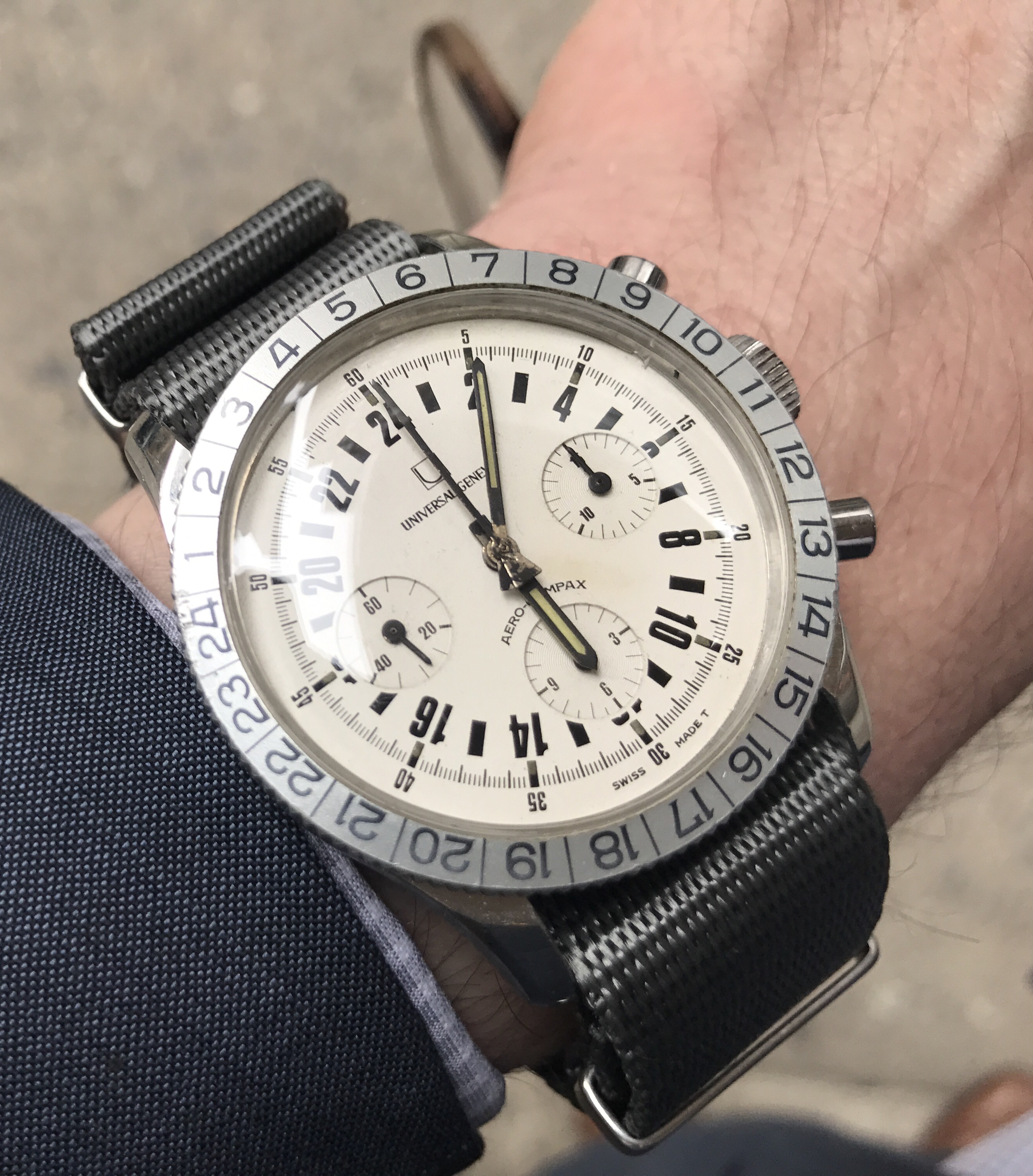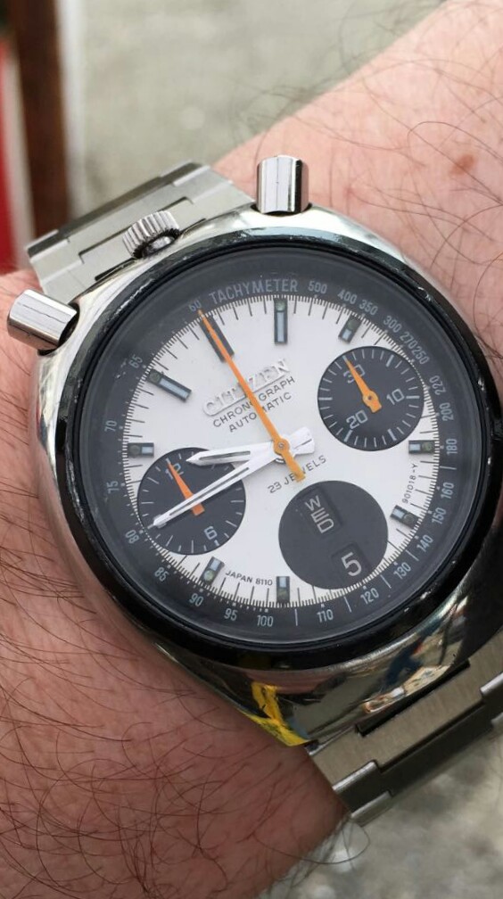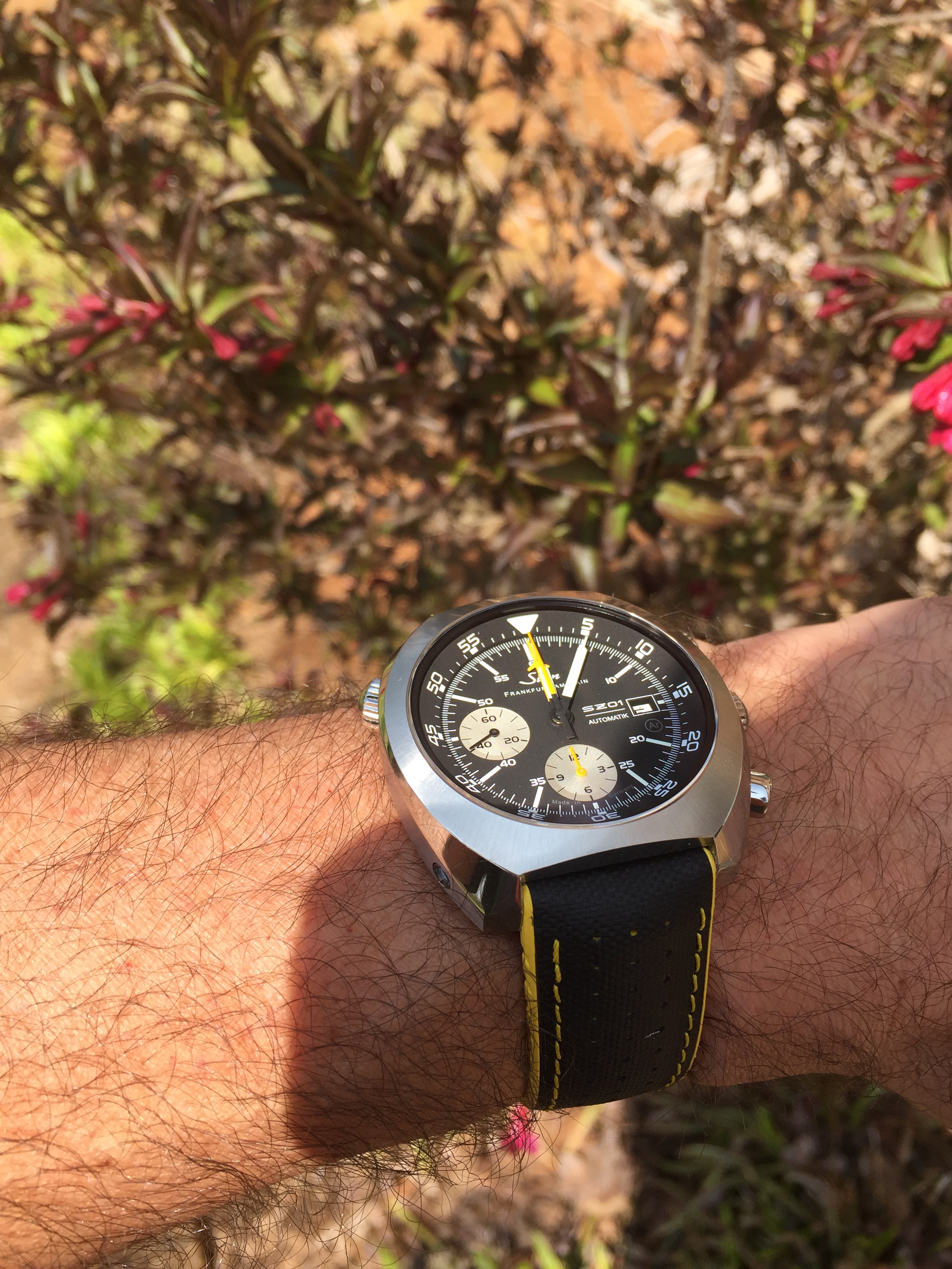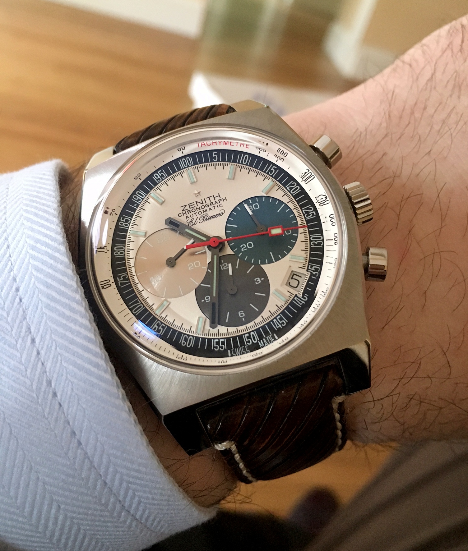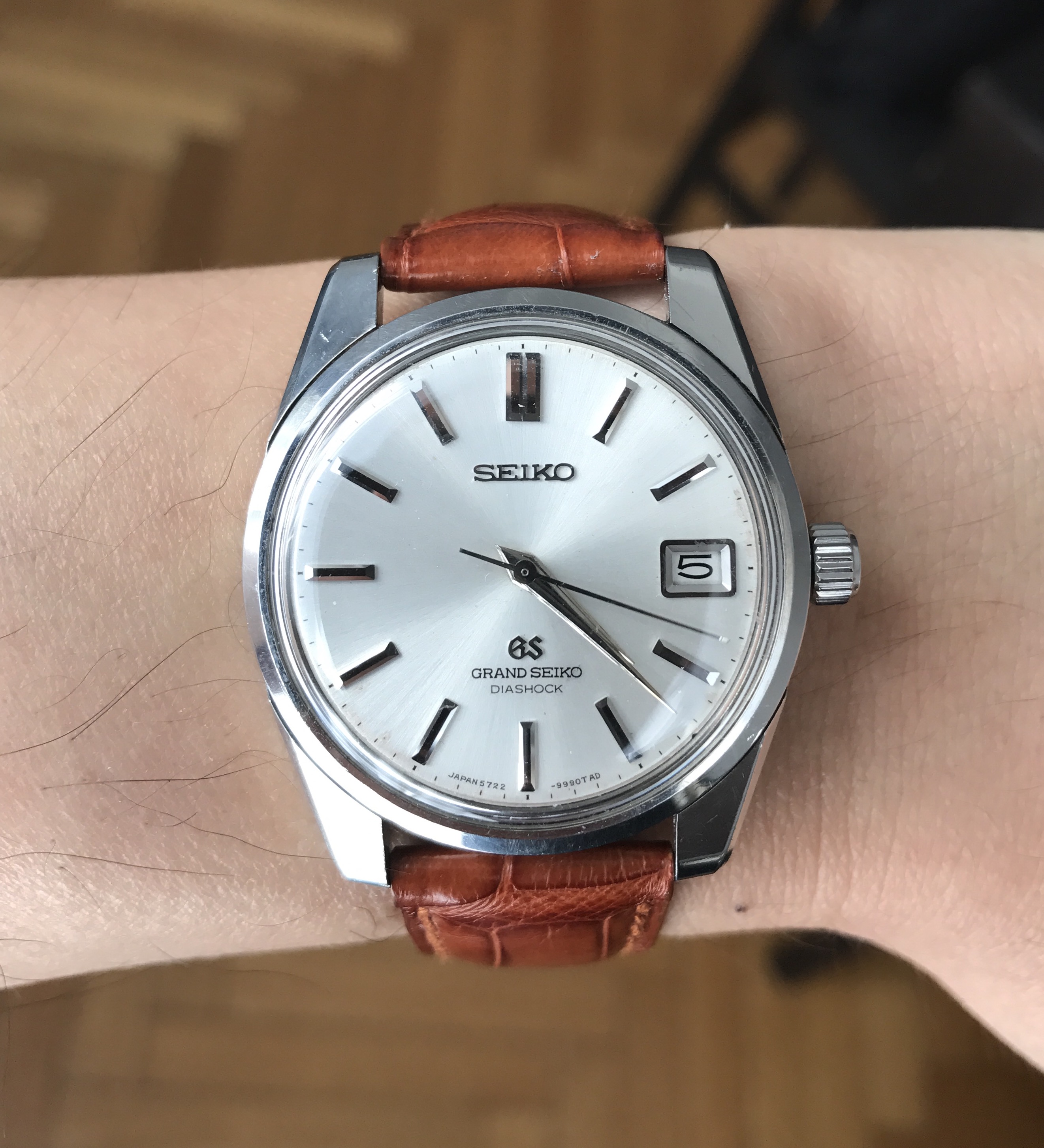 The first picture as purchased. I had to get rid of the stretch band. That would have tore into the 18k gold case. These type stretch bands can do a lot of damage to the inside of the lugs. The stretch band that was on this one did no damage to the inside of the lugs So far so good. I just brought the Jaeger home today