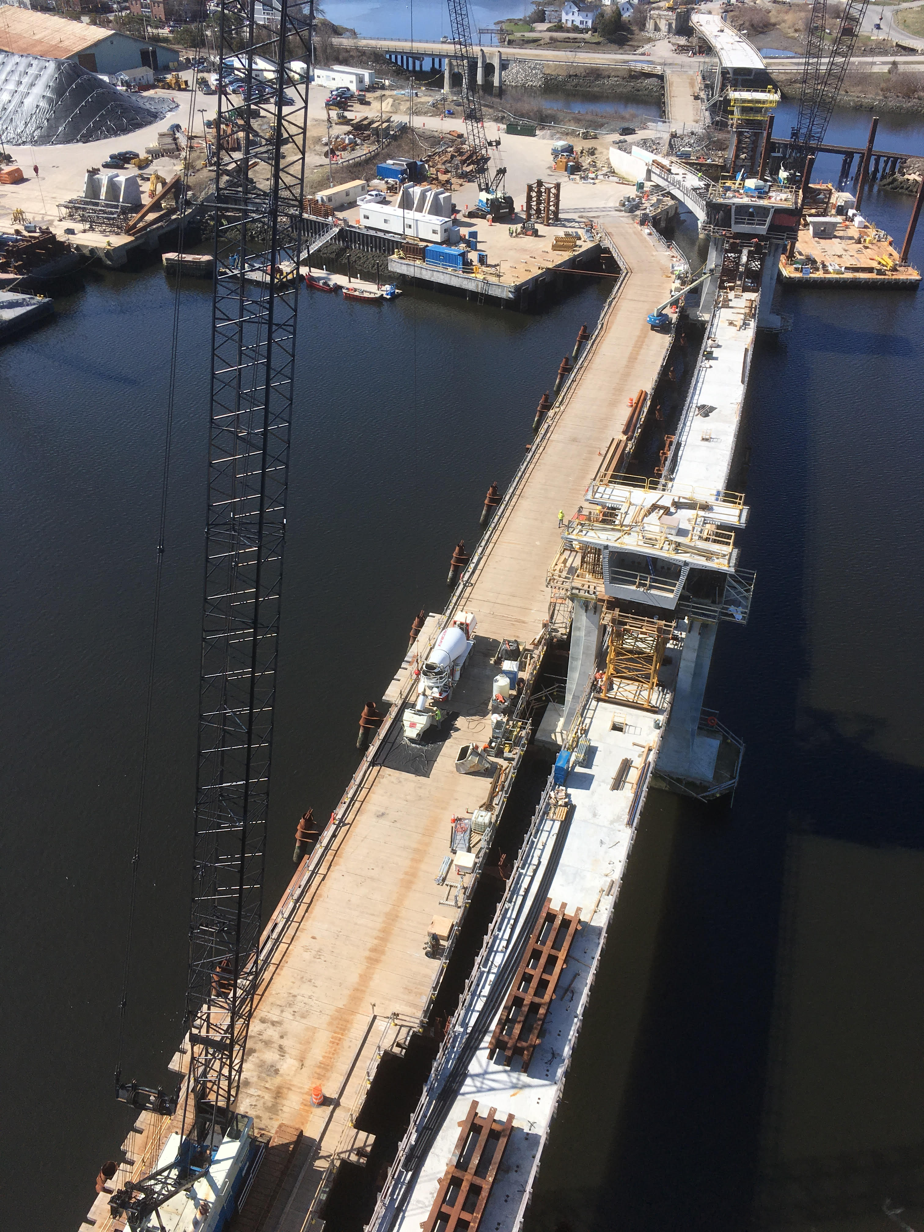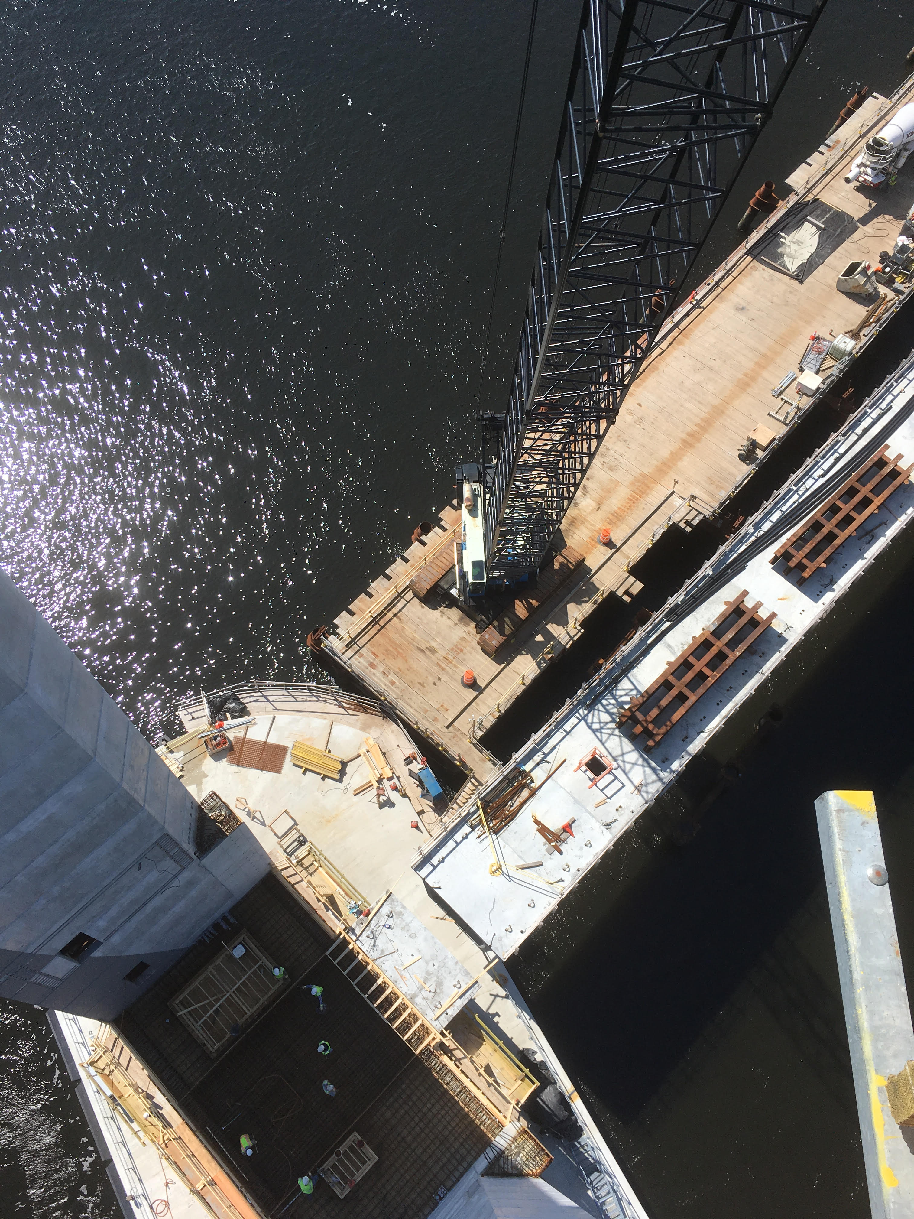 Meant to post some more action shots of a concrete placement we made atop the SW sheave tower on one of our bridge projects yesterday. I got tied up on the project and the 4 hour drive home pushed posting off the priority list. Here they are now: