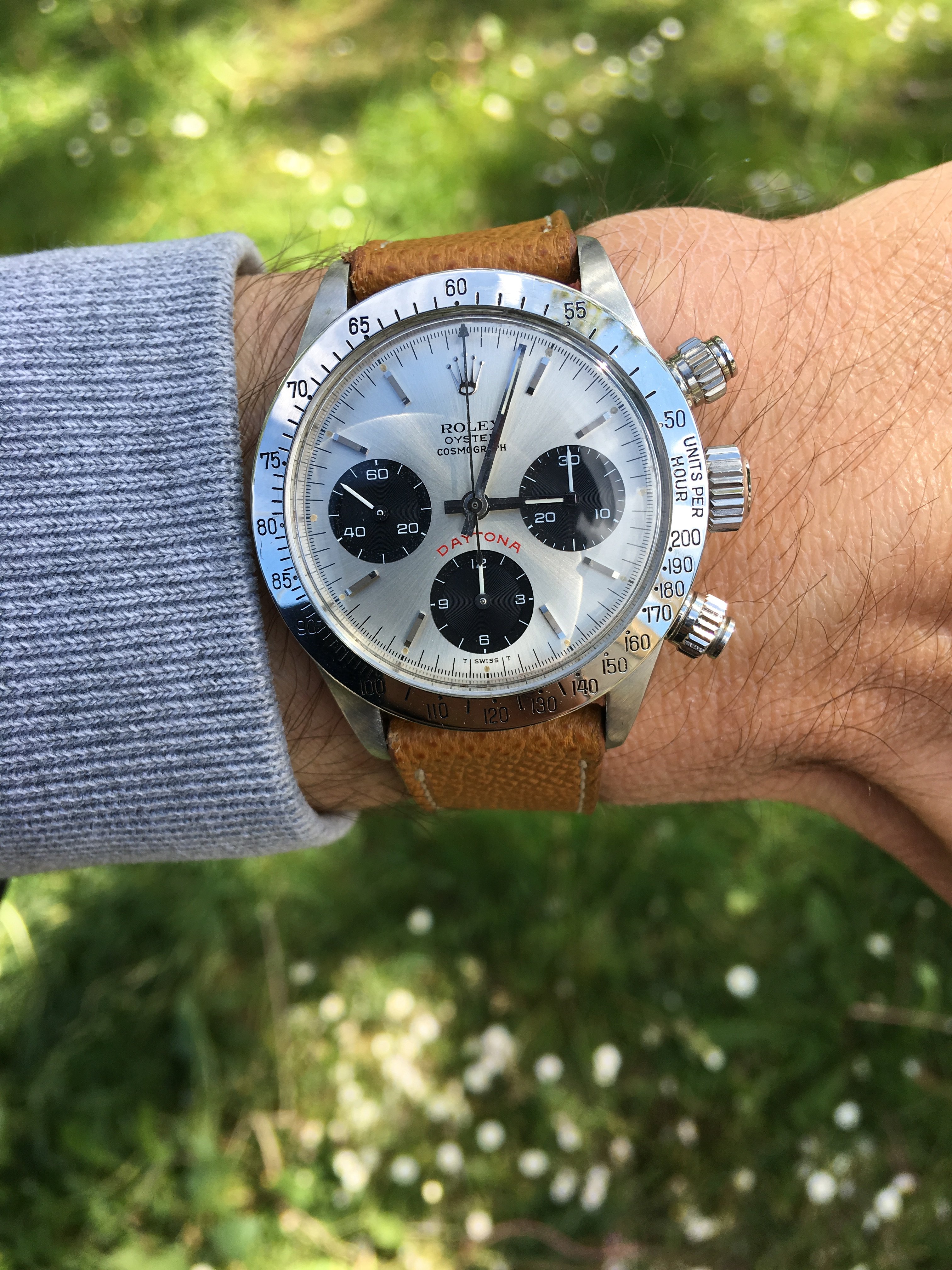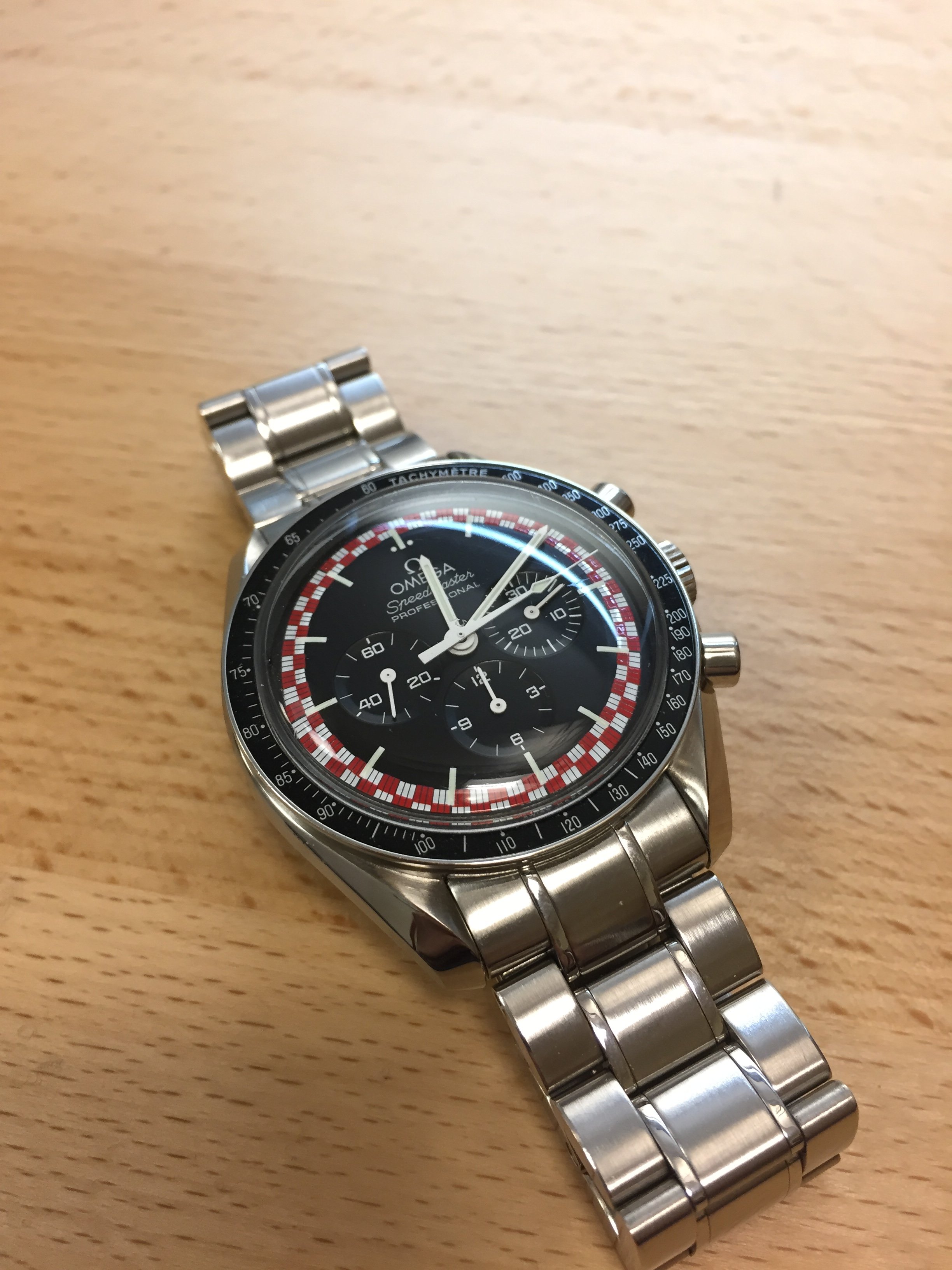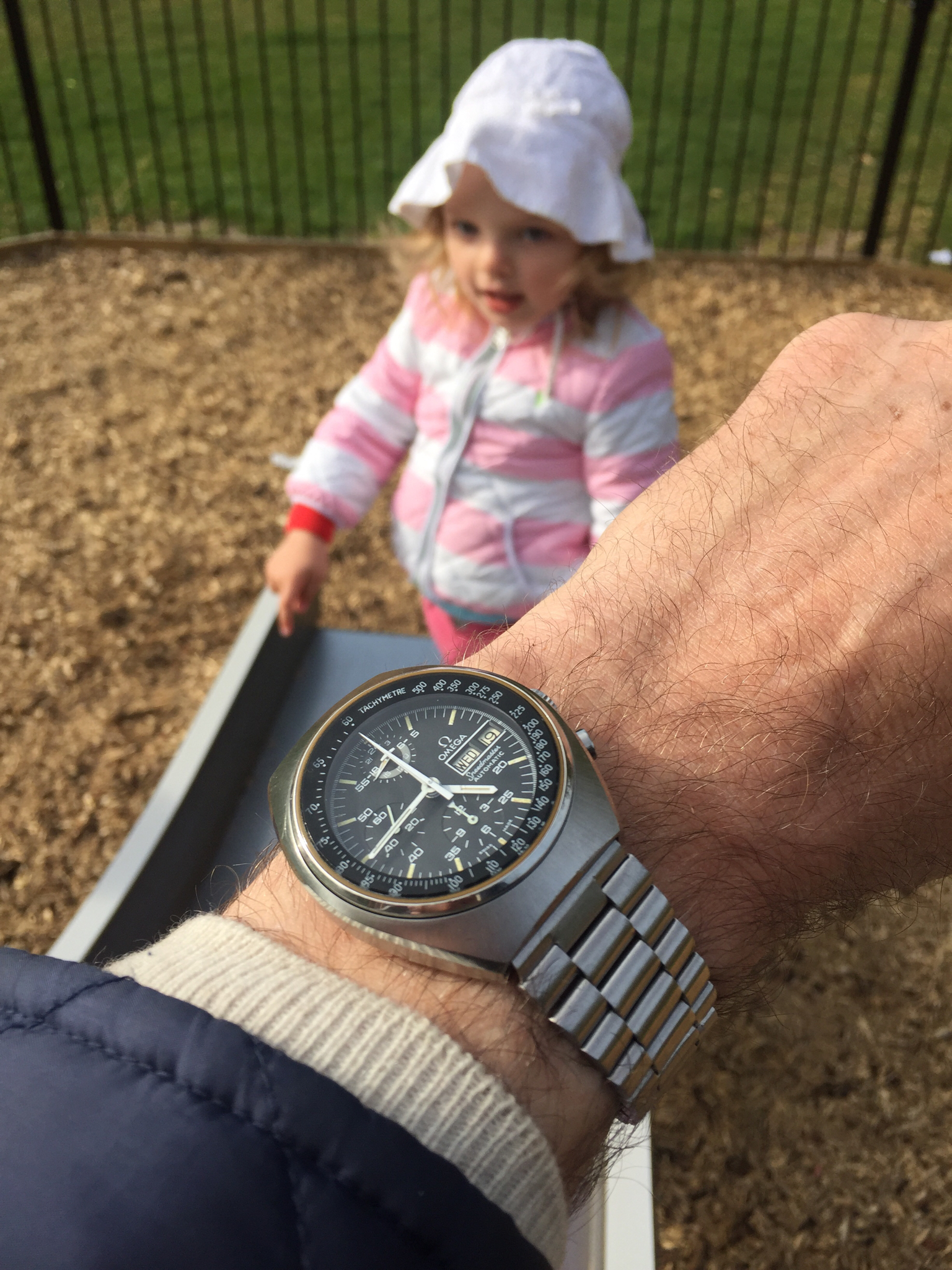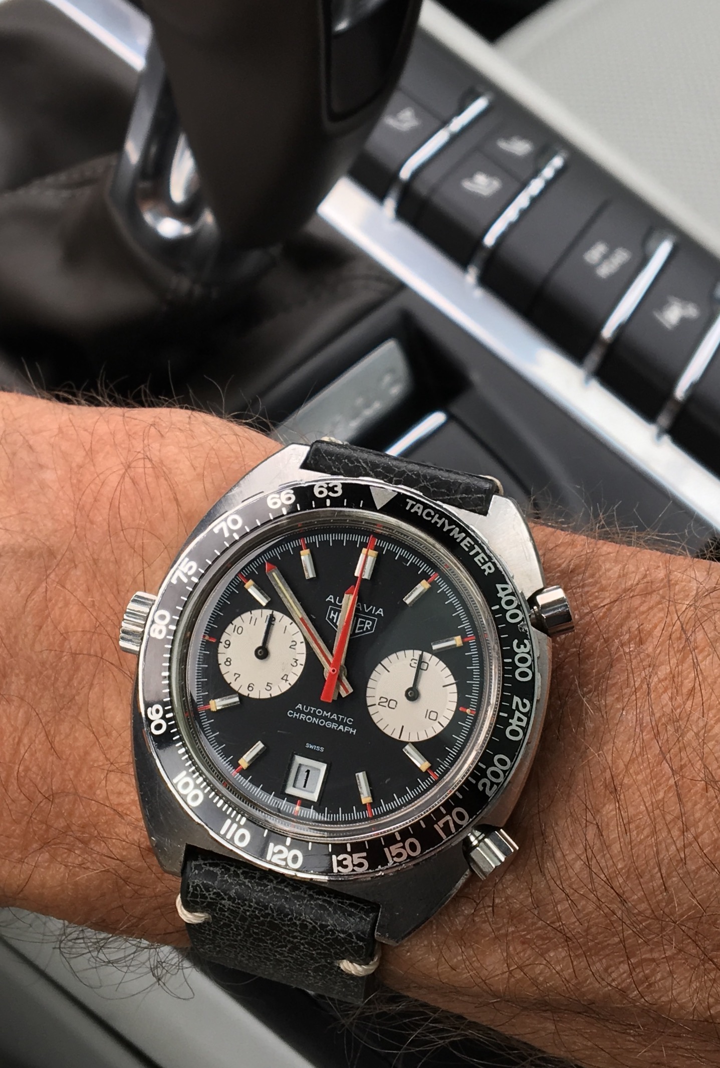I've had this one for several years, but haven't worn it. It has always run well, but the date wasn't operating. Plastic date ring. Common problem with the Omega 1250 (ESA 9162) tuning fork models. I had made a few attempts in the past to find a replacement ring, to have repeatedly met with the same result! Not available. Recently, I was surfing eBay, and lo and behold, a dealer in a Mannheim, Germany, was listing a NOS date ring for sale. I bought it, and this is the result. The watch is on a buffalo hide strap. So today I will wear this one, and my long term tester, my1989 Rolex Date-Just which I serviced in November, 2016. As of today, it is 19 seconds fast since November. It dropped back 3 seconds at the change to MDT in March.