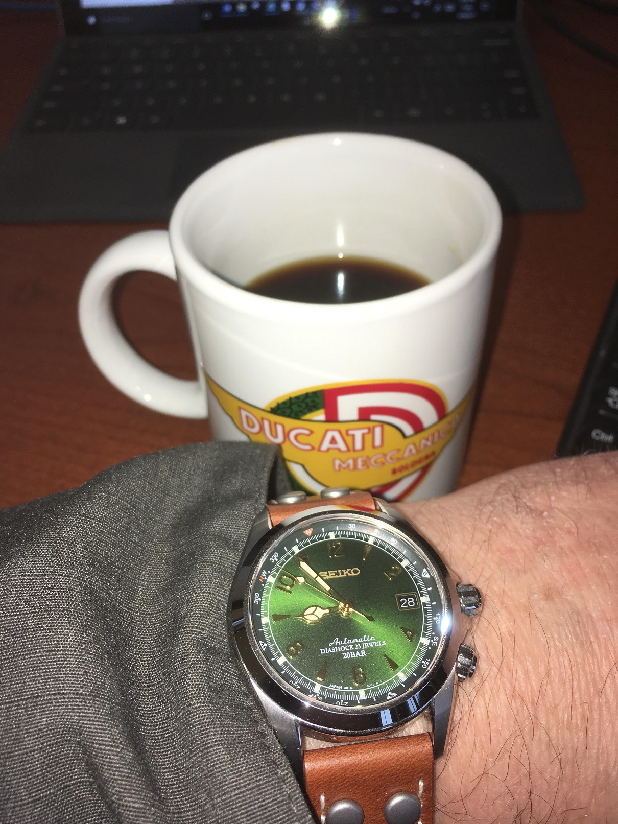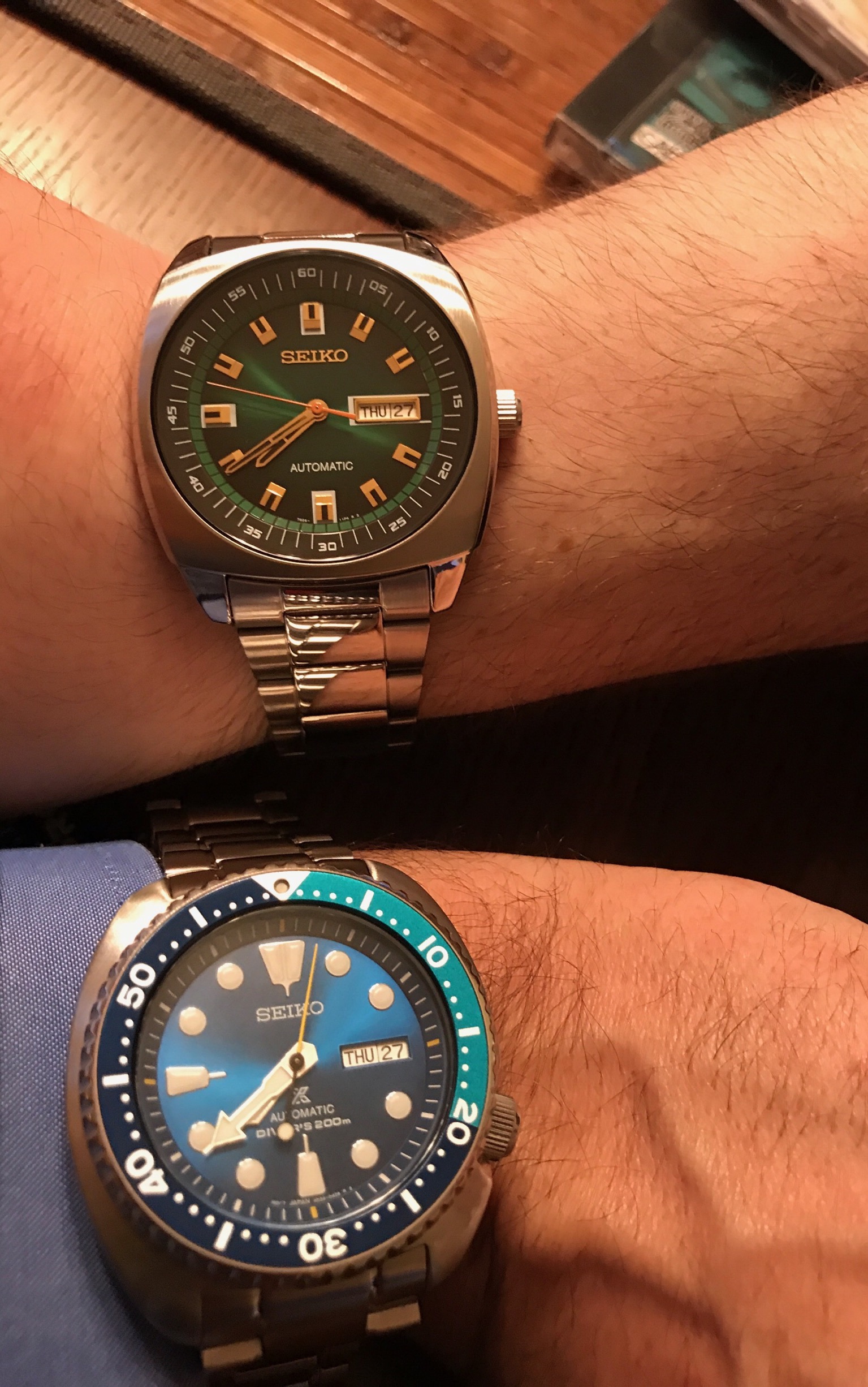 Another Western MA Get Together last night with the unveiling of the new Seikos. @ahartfie surprised with a new SNKM97 of which I had been gently advising purchase. I brought my just arrived LE Blue Lagoon Turtle SPRB11. Excellent dinner, dessert, music and watch discussion. With dueling Seikos all we were missing was @Jwit with his treasure trove of Seikos, @Mad Dog and a Box of DD Joe!!