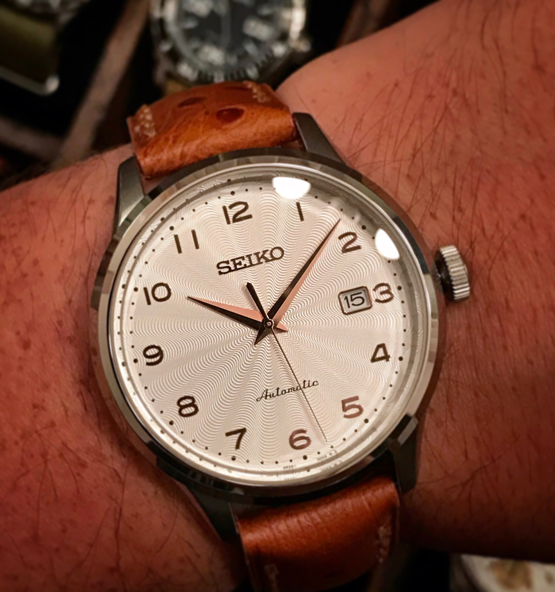 Yesterday: an elegant piece I haven't worn in a while. A Seiko with guilloche - believe me, I was very surprised when I saw it the first time, but I simply had to buy it.
