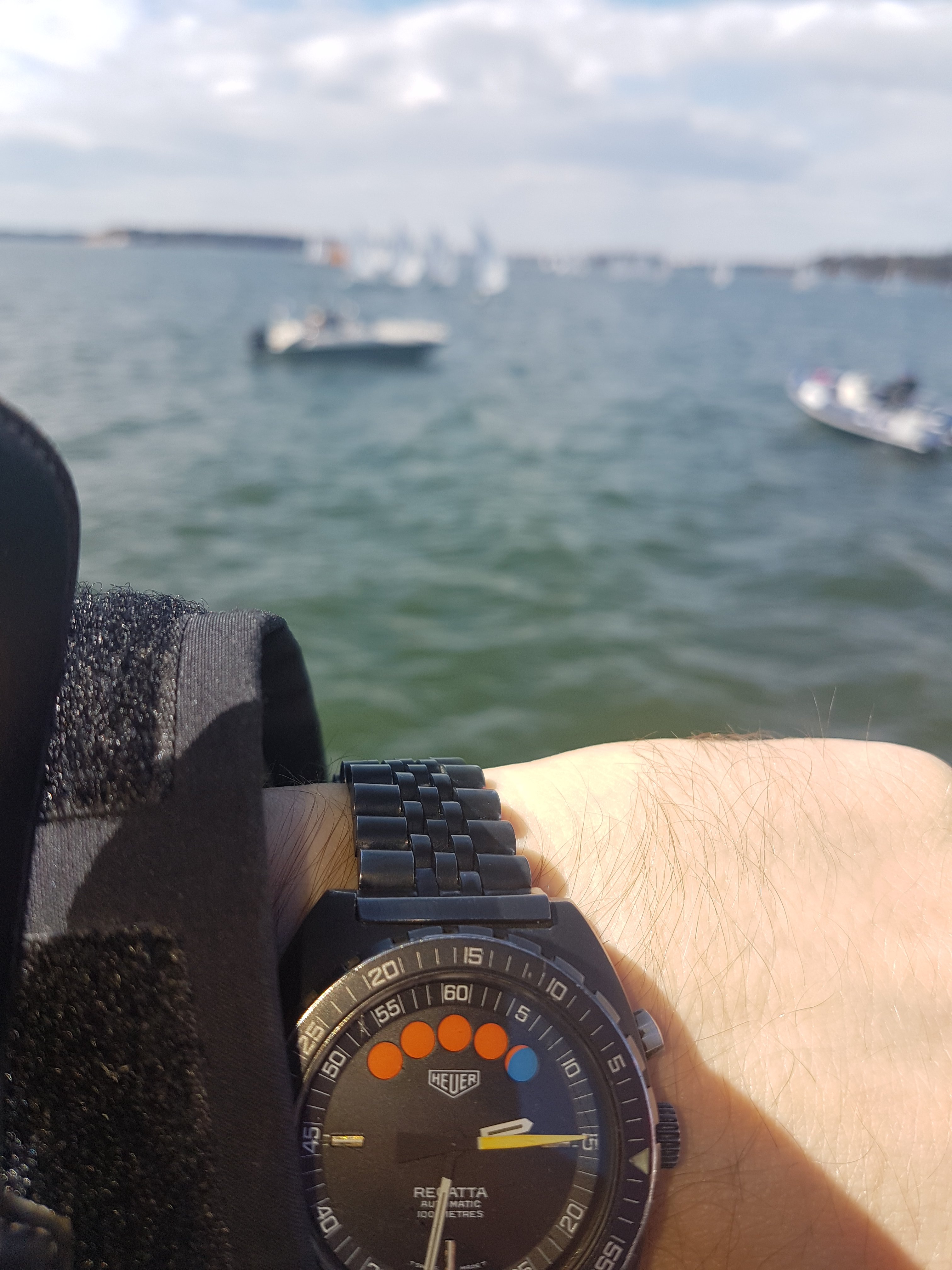 Vintage at work again. 45 seconds to starting signal. No sailing for me this weekend, instead monitoring one of today's many starts from the committee vessel.