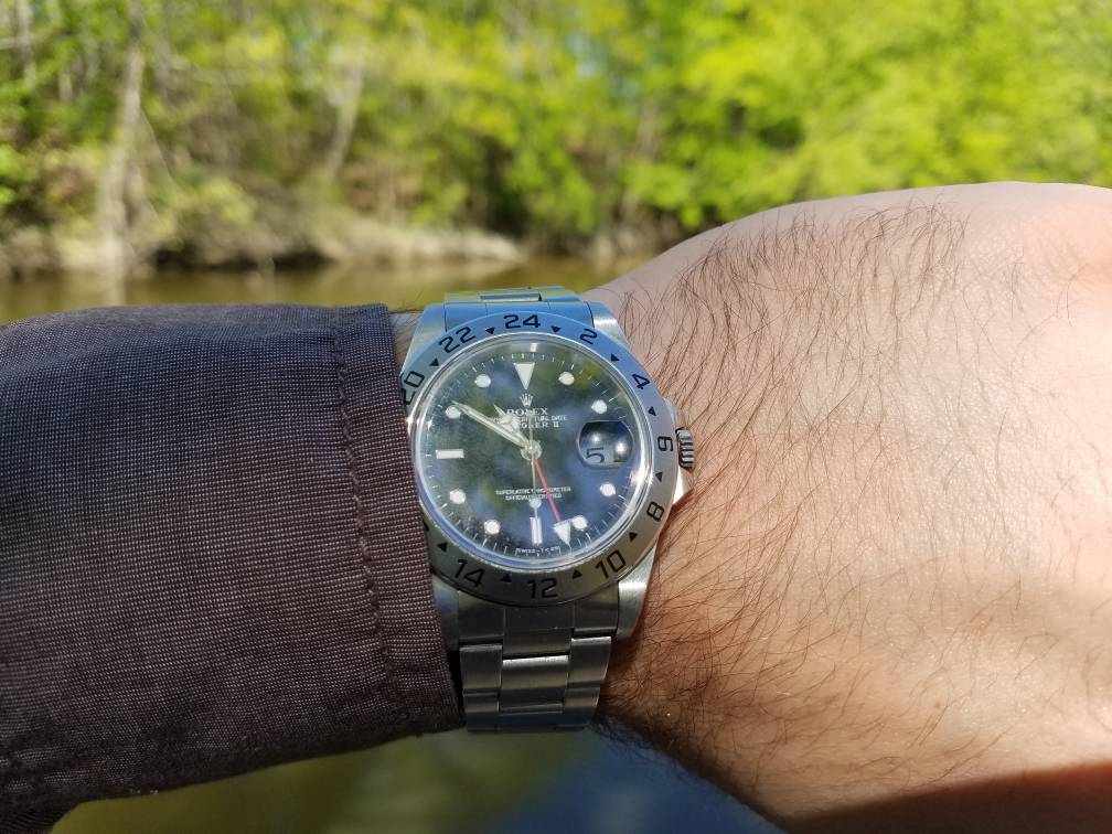 Exploring with an explorer II. Paid the price today for having it on the wrist non stop after I got it(chip off the edge of crystal, right where the GMT hand is pointing). But don't feel bad about this at all, this watch was designed to be in tough environment.