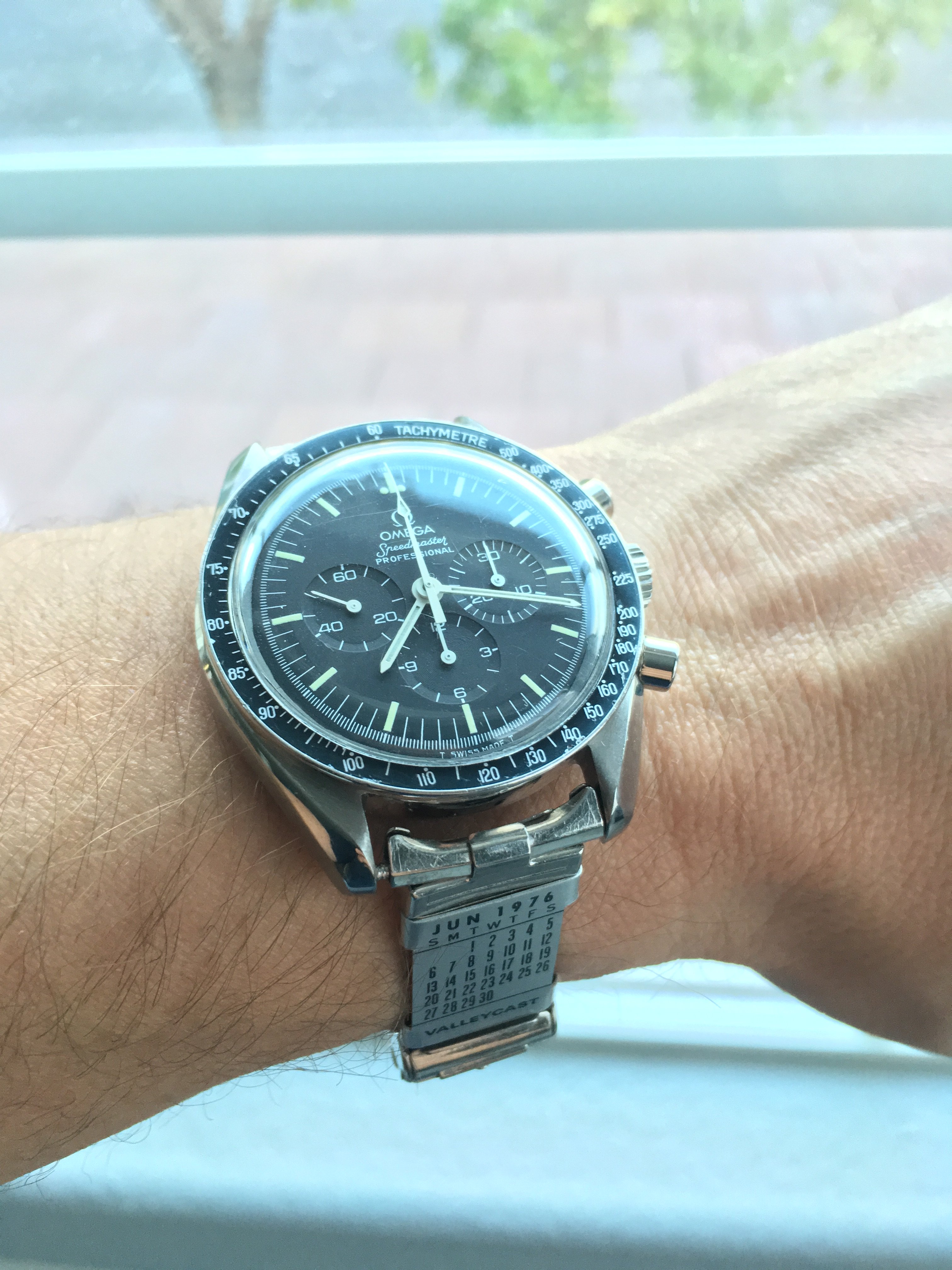 Posts 1,187 Likes 1,859 sky21 路May 16, 2017 For Speedy Tuesday wearing my 145.022-76 on JB Champion with a June 1976 wrist calendar. Still looking for a 1977 calendar if anyone has one they would part with.