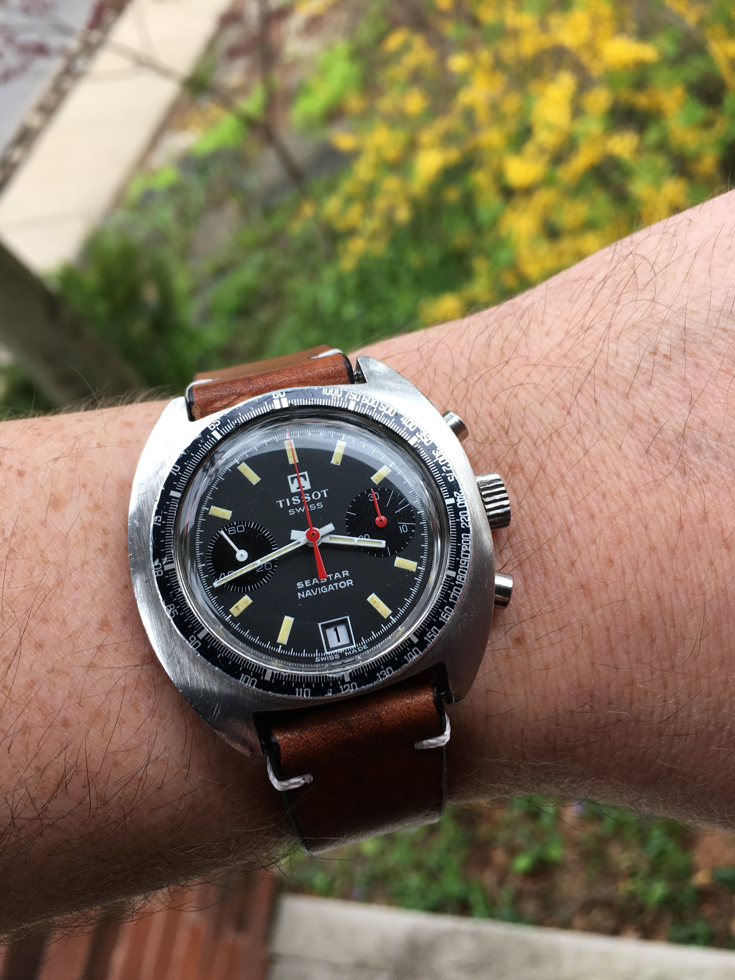 Posts 1,288 Likes 3,352 R3D9 ·May 16, 2017 Fantastic way to brighten up a gloomy day! My just-arrived vintage Tissot Seastar Navigator on an also newly-arrived leather strap by Two Stich Straps (instantly the nicest leather strap I own): Edited: May 16, 2017