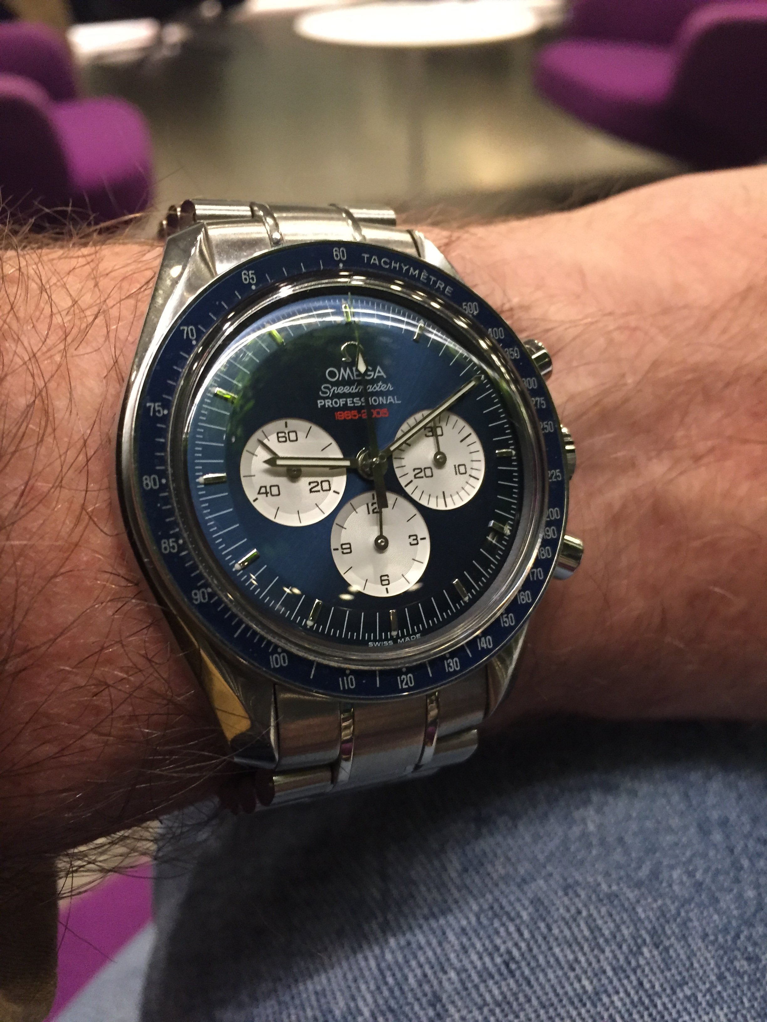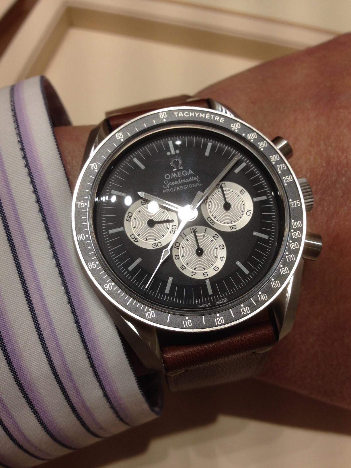 My grail watch is getting some wrist time today. I've been on a Speedmaster kick for a couple weeks now. I guess I have TWO grail watches. Can you say that? Are two grails possible? Sounds a little blasphemous to me. The GMT2 Pepsi is a favorite of the folks at my local Starbucks. Even the female baristas want one. They all tried it on and made the appropriate "oohs and ahhs" over it on their wrists.