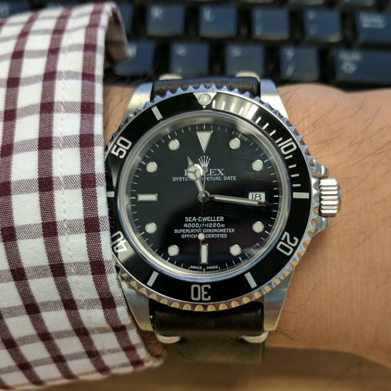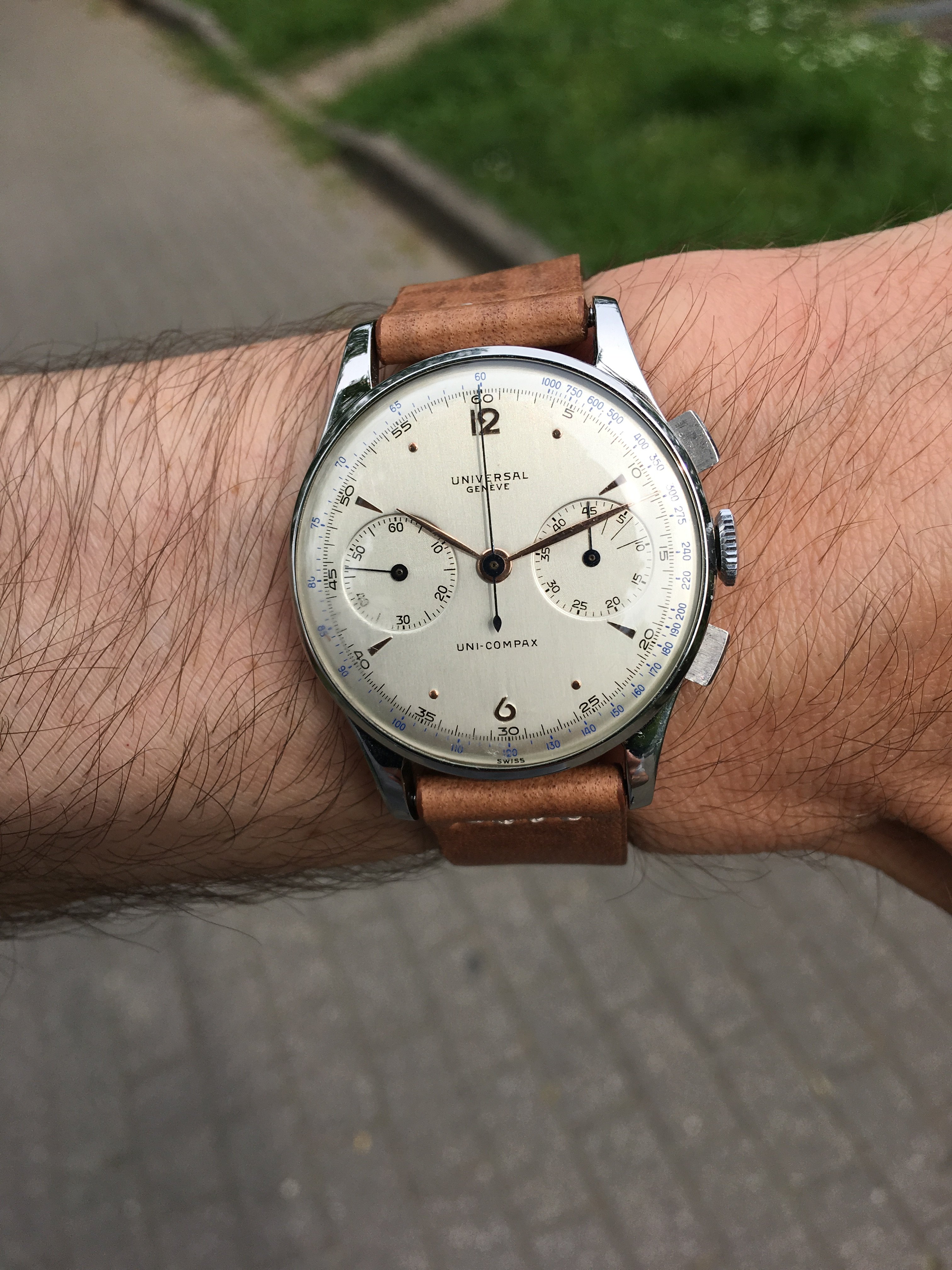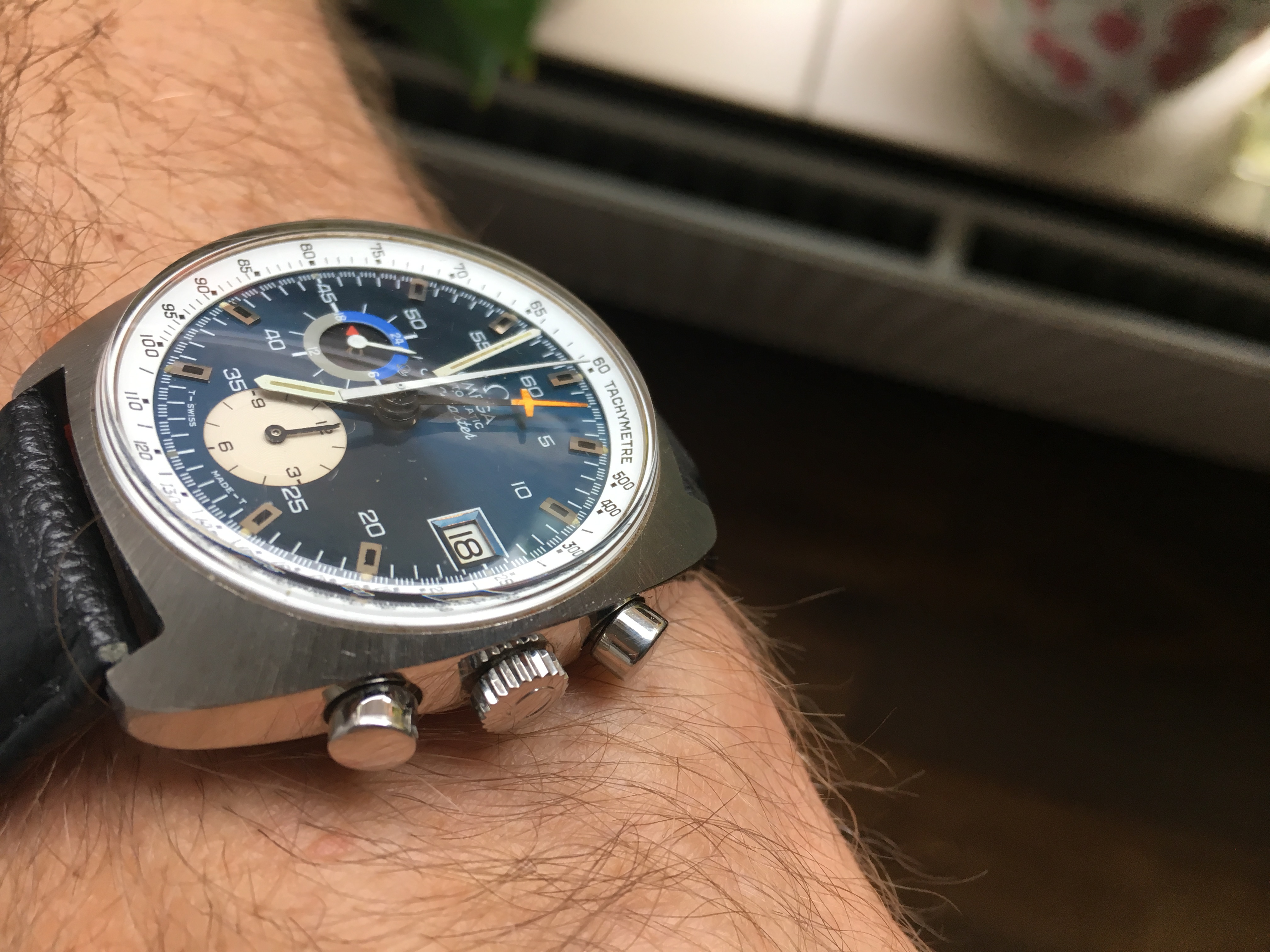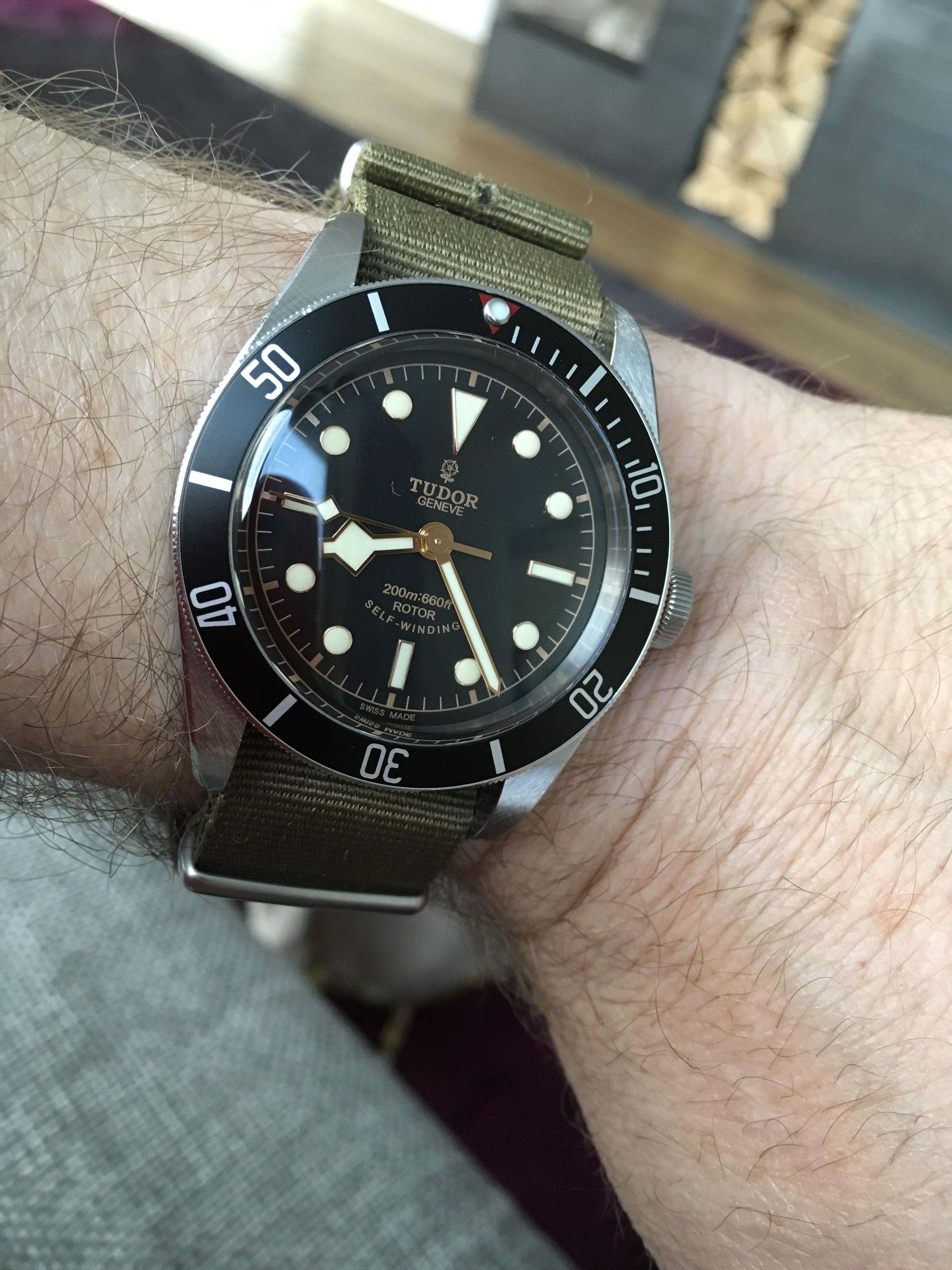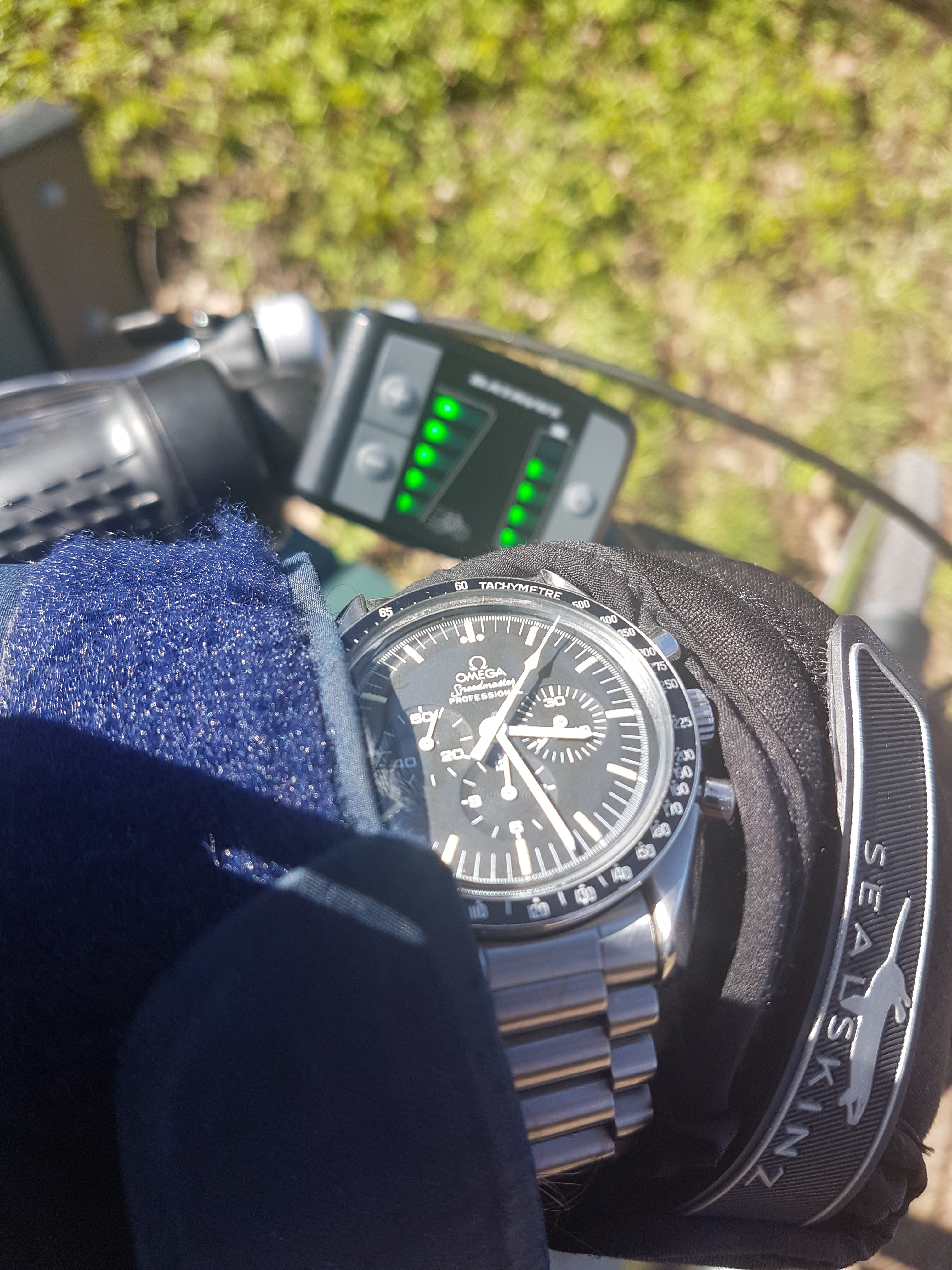 It had been sitting idle for more than a week so of course it needed winding and for the time to be set. Incredibly easy on the GMT2 with it's crown position for moving the hour hand only. Use the minute hand adjustment to move both the hour and GMT hands until the GMT hand is right. Then set the minutes, and finally the hour hand with the hour-only position. Anyway, I have ordered a Versa watch winder for either one that I'm not wearing. Swapping back and forth will be a real snap once this arrives.