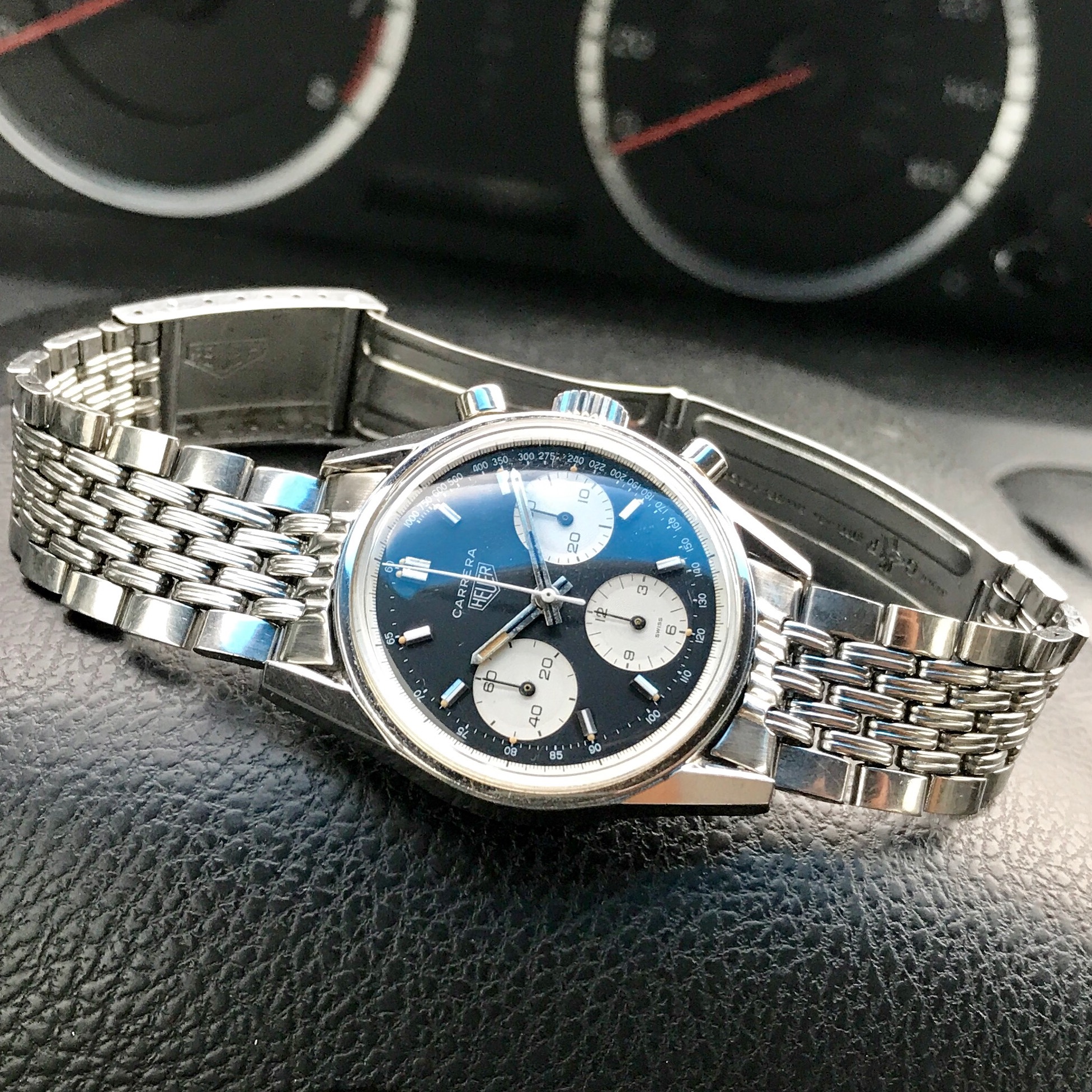 Posts 338 Likes 3,921 phodinkee ·May 19, 2017 Still with Carrera on GF Double Grain BoR, precise dial design & just right case shape TGIF !! ______________________________________ 1968 Heuer Carrera 2447NST, 36mm & Heuer GF Double Grain BoR ______________________________________ Edited: May 19, 2017