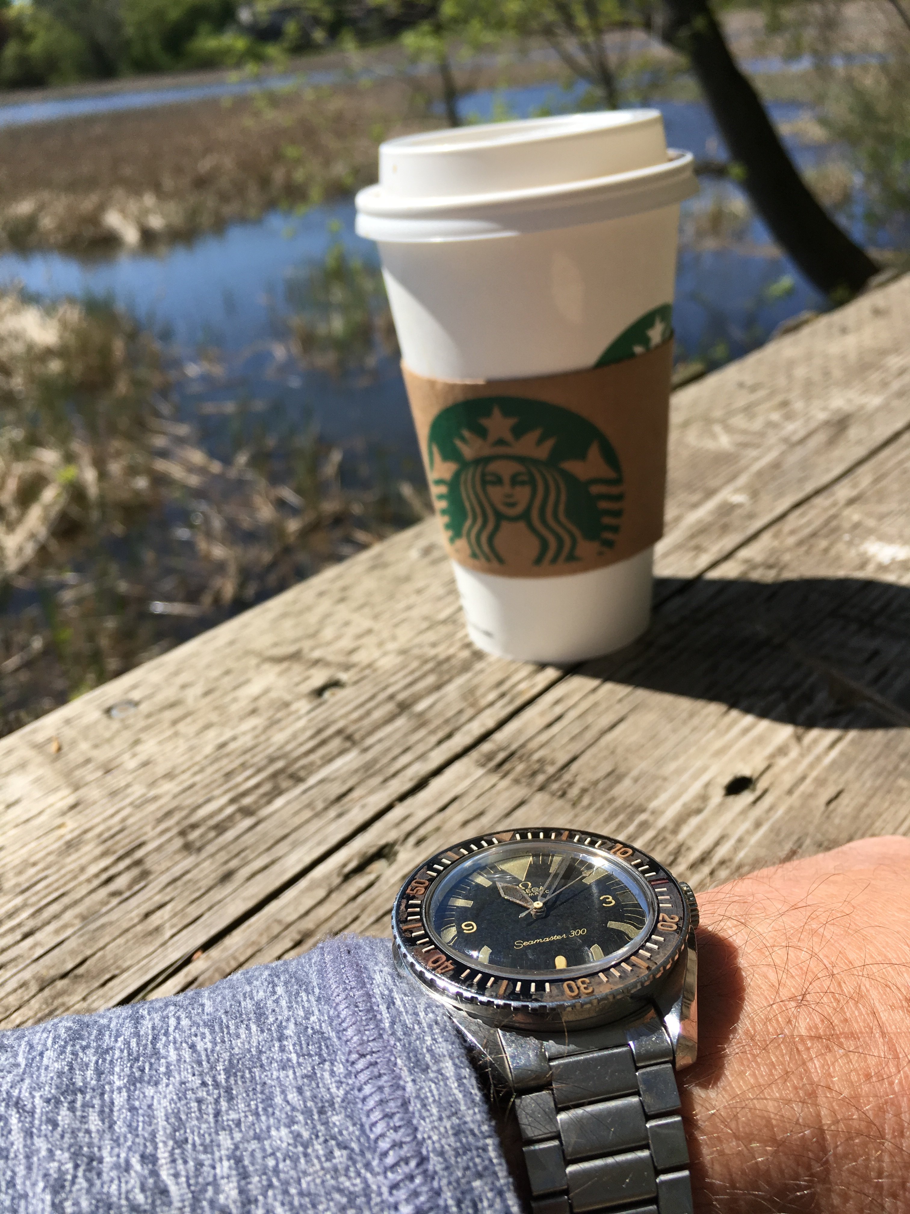 Pepsi time today. The grail gets an outing on a dreary Saturday in NJ. Trip to the gym (watch stays at the front desk) and now to Starbucks for an iced coffee.