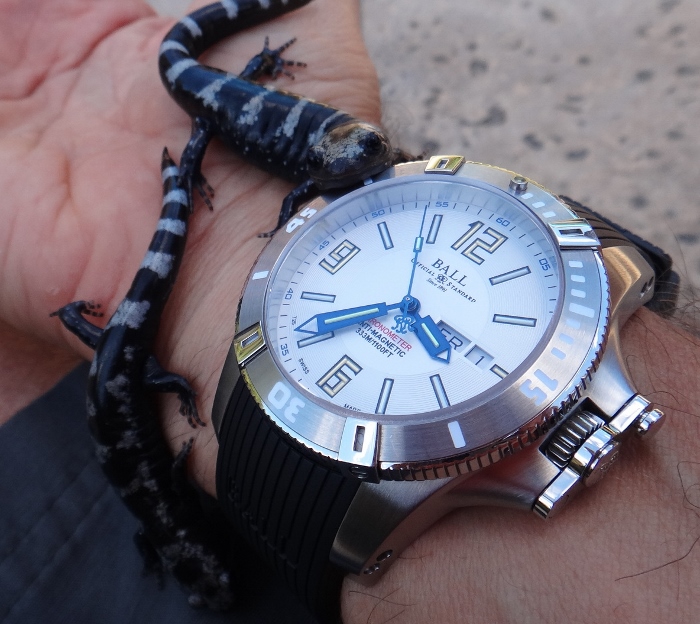 Aw now, dougiedude ... you mean you didn't have the copperhead pose cozily coiled around your arm with his chin resting on your neato blue dive watch?