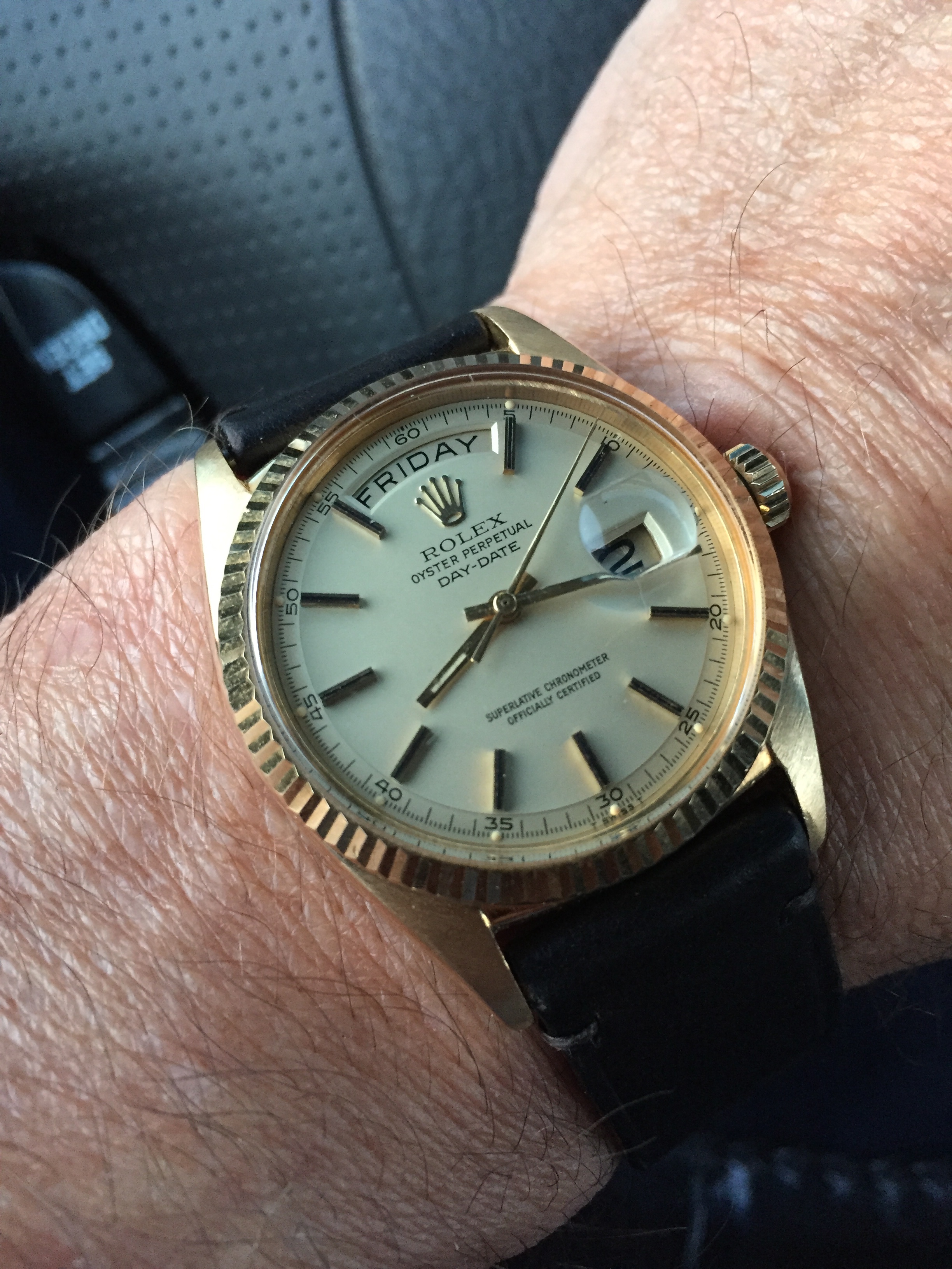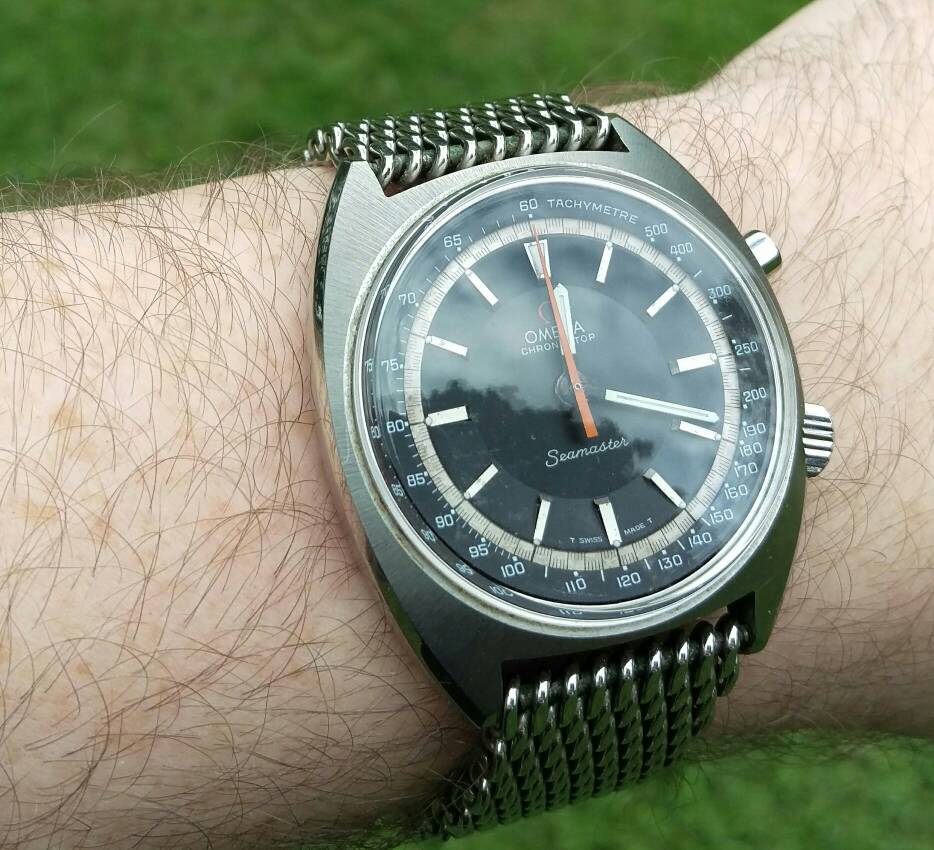 He said it had been in his car ashtray for years from the original owner of the car he purchased it from, until he started working here he never bothered with it until he found out I was a "watch guy".He asked me if I wanted to buy it for $25.00. @ the time I had no idea what it was (as the crystal was in very poor state couldn't read the dial) just liked the color scheme.Took some Poly Watch to it & viola this is the result.
