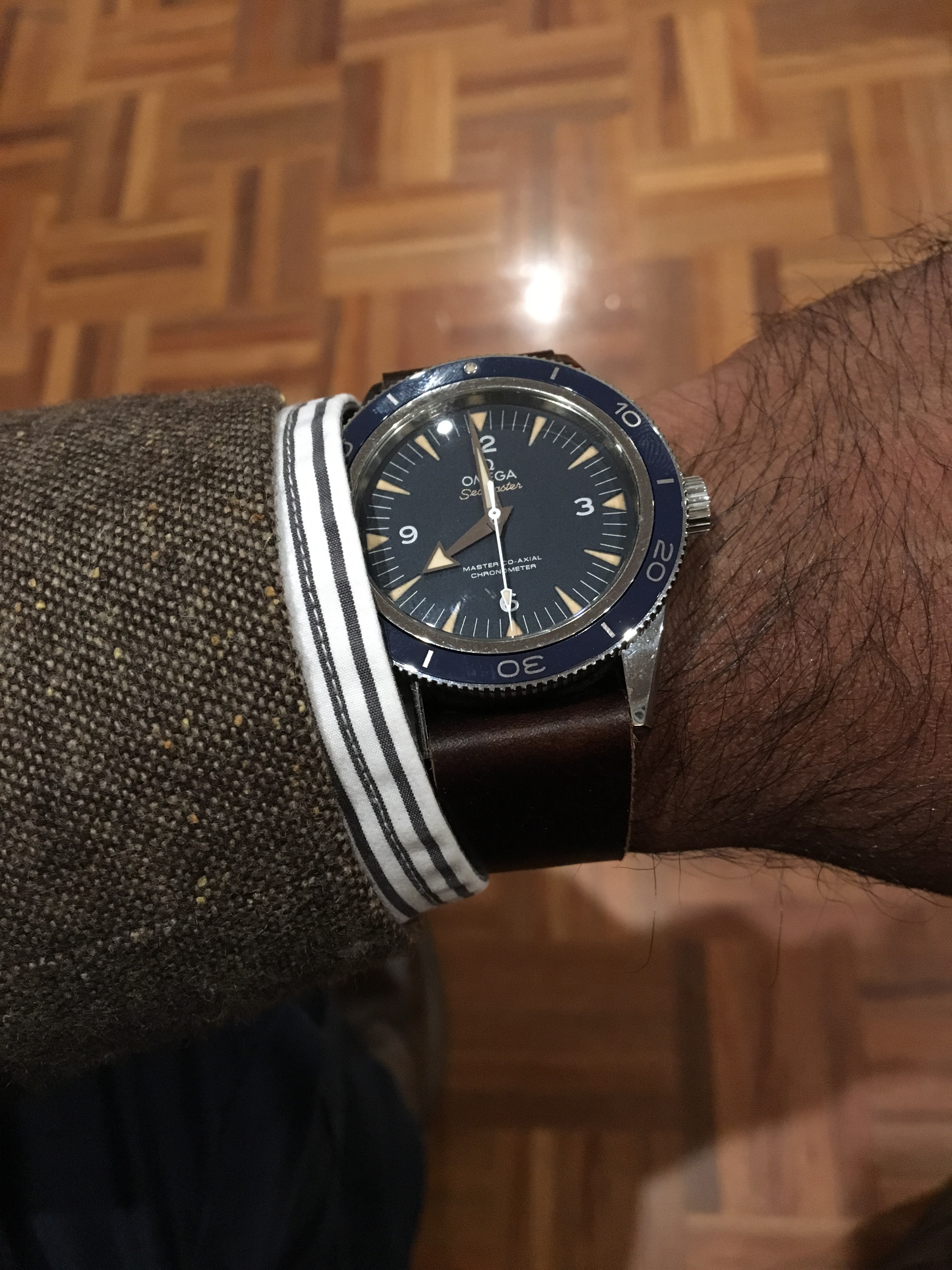 New strap today.. very happy!! It's a de griff leather nato. I think this is the ultimate solution for comfort. The soft leather single pass through design feels perfect on the wrist.