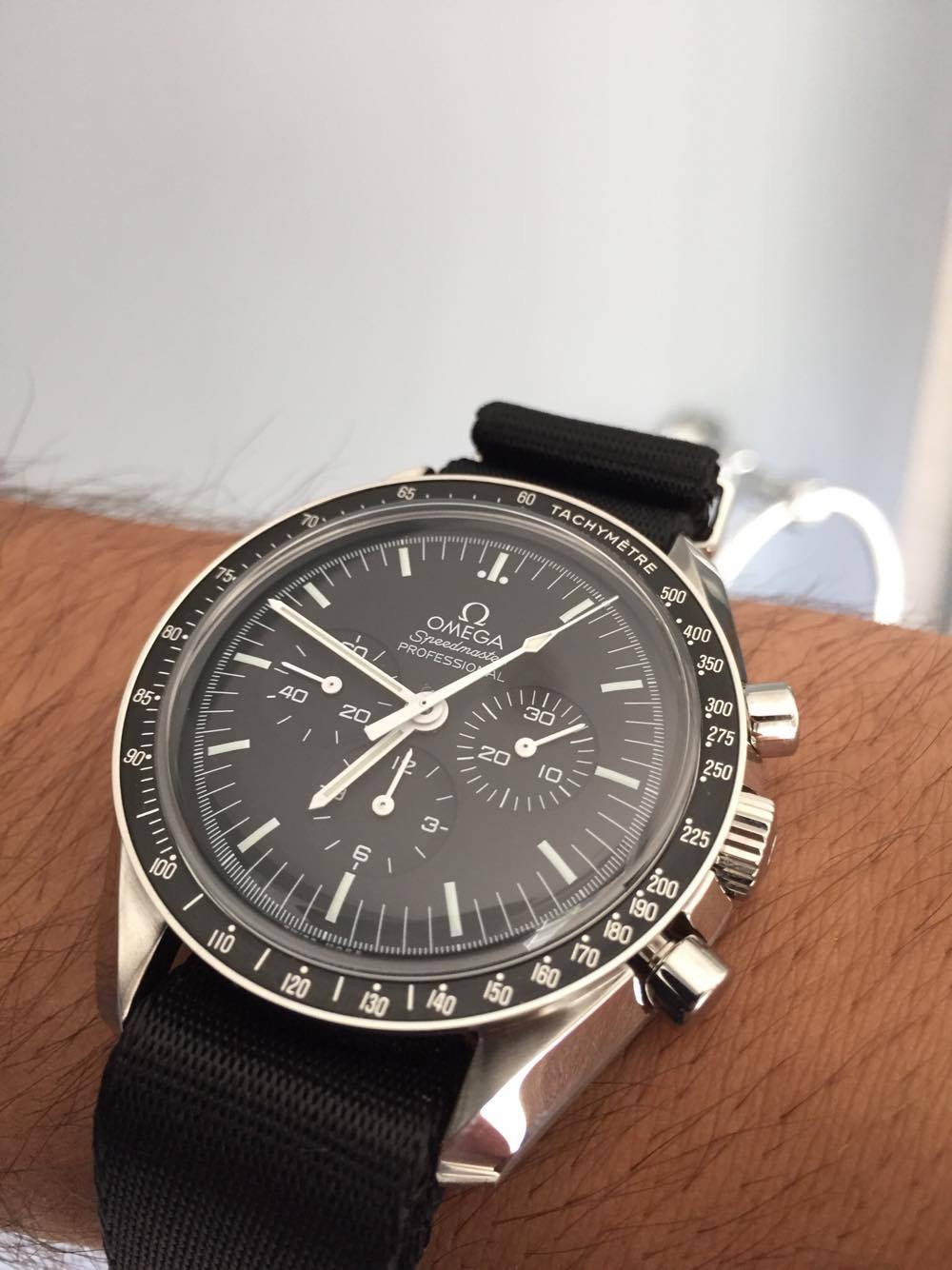 Finally came in, my speedy! I took it off the bracelet as it needs to be sized and I dont have the proper tools at the moment, so I'm sporting it on the omega nato it came with.